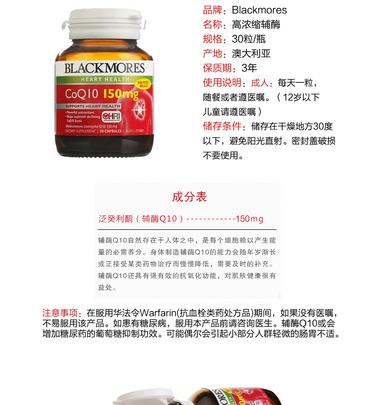 澳洲Blackmores澳佳宝高浓缩辅酶Q10 30粒