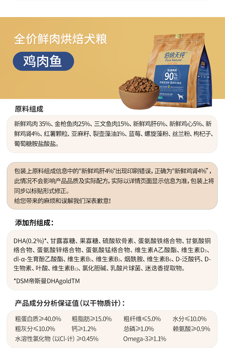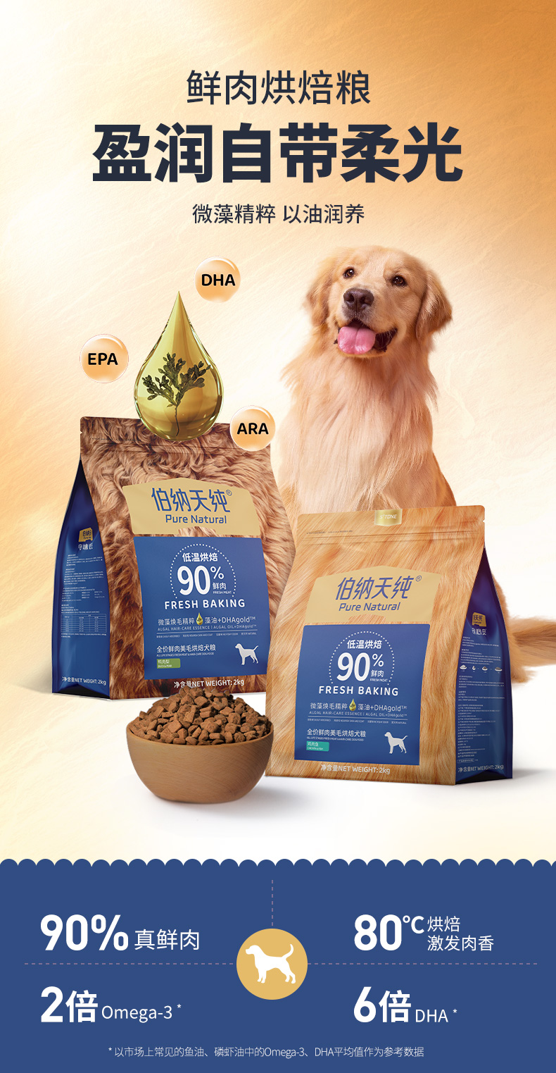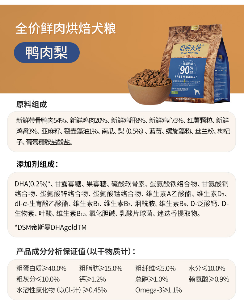 【新品】伯纳天纯全价鲜肉美毛低温烘焙犬粮全犬期通用2kg