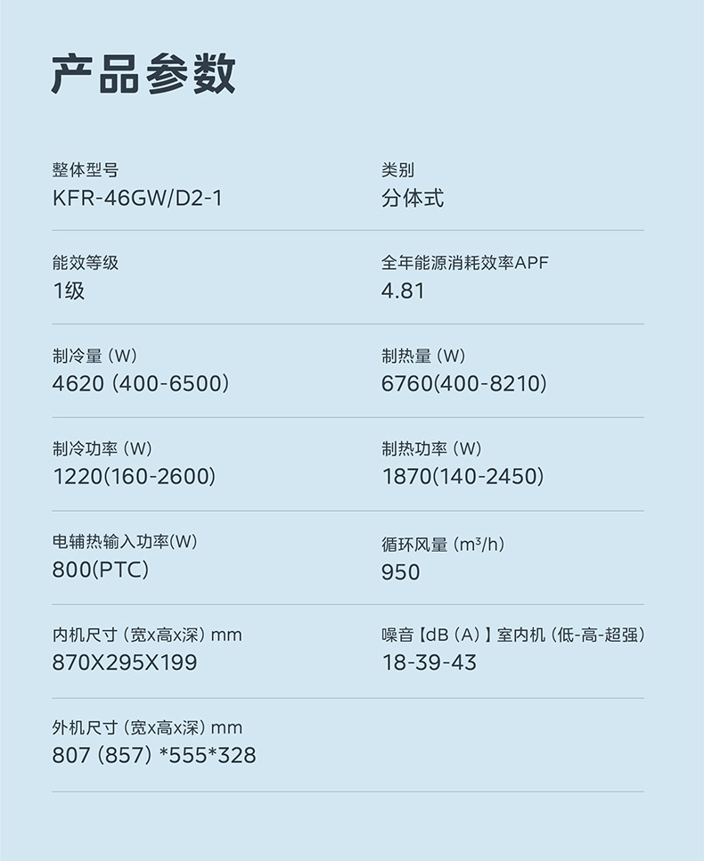 KFR-46GW/D2-1 变频 分体套机 浅云脂 美的