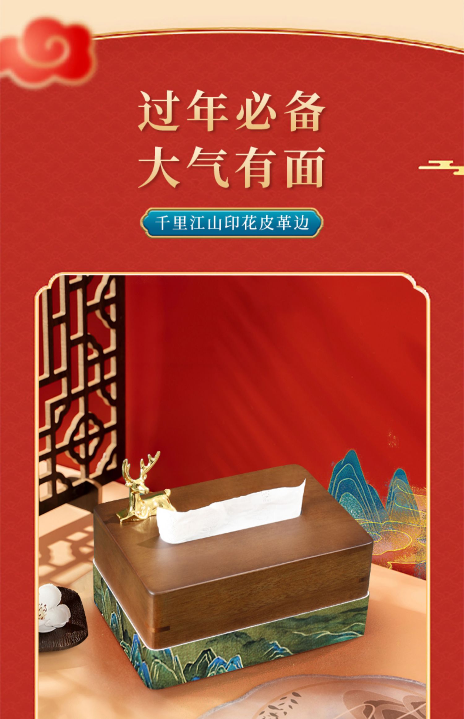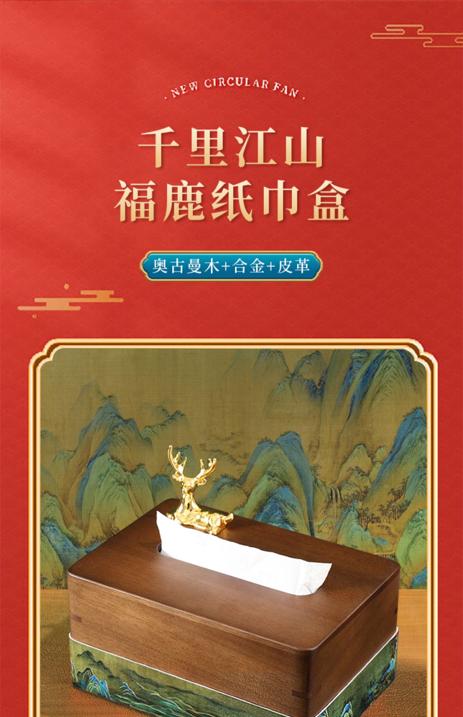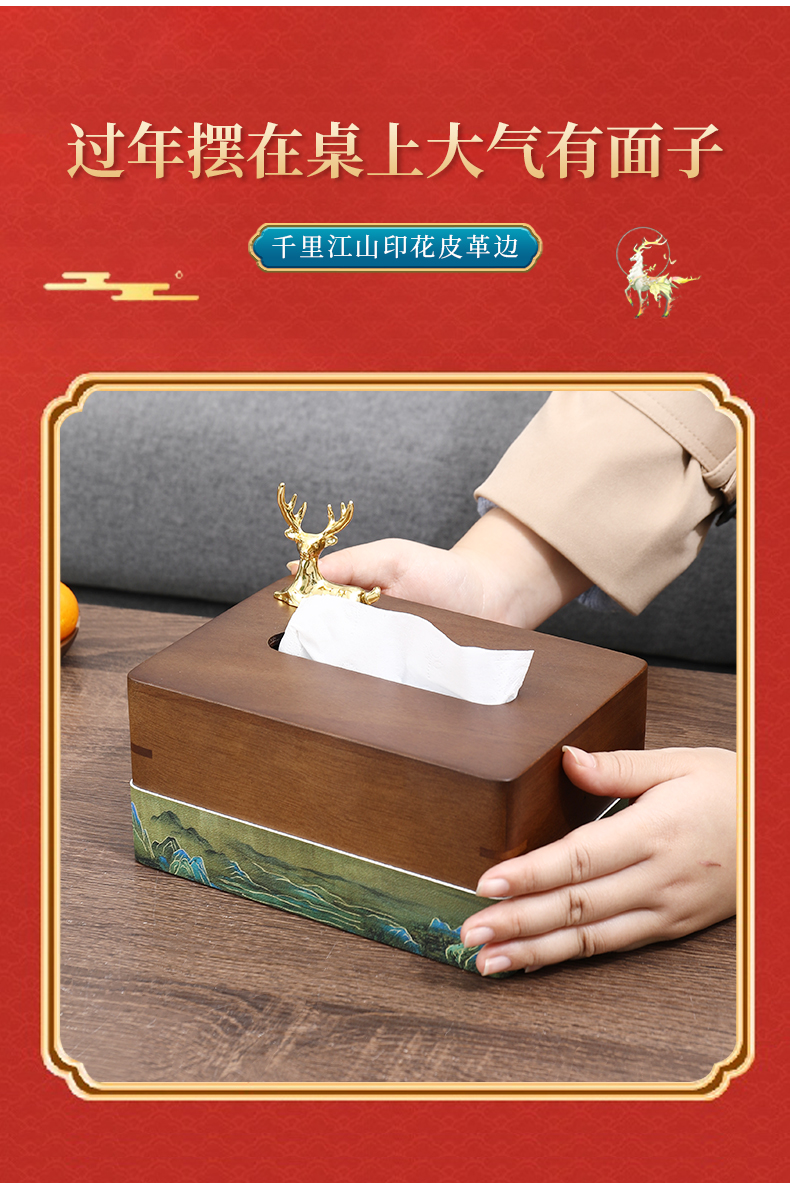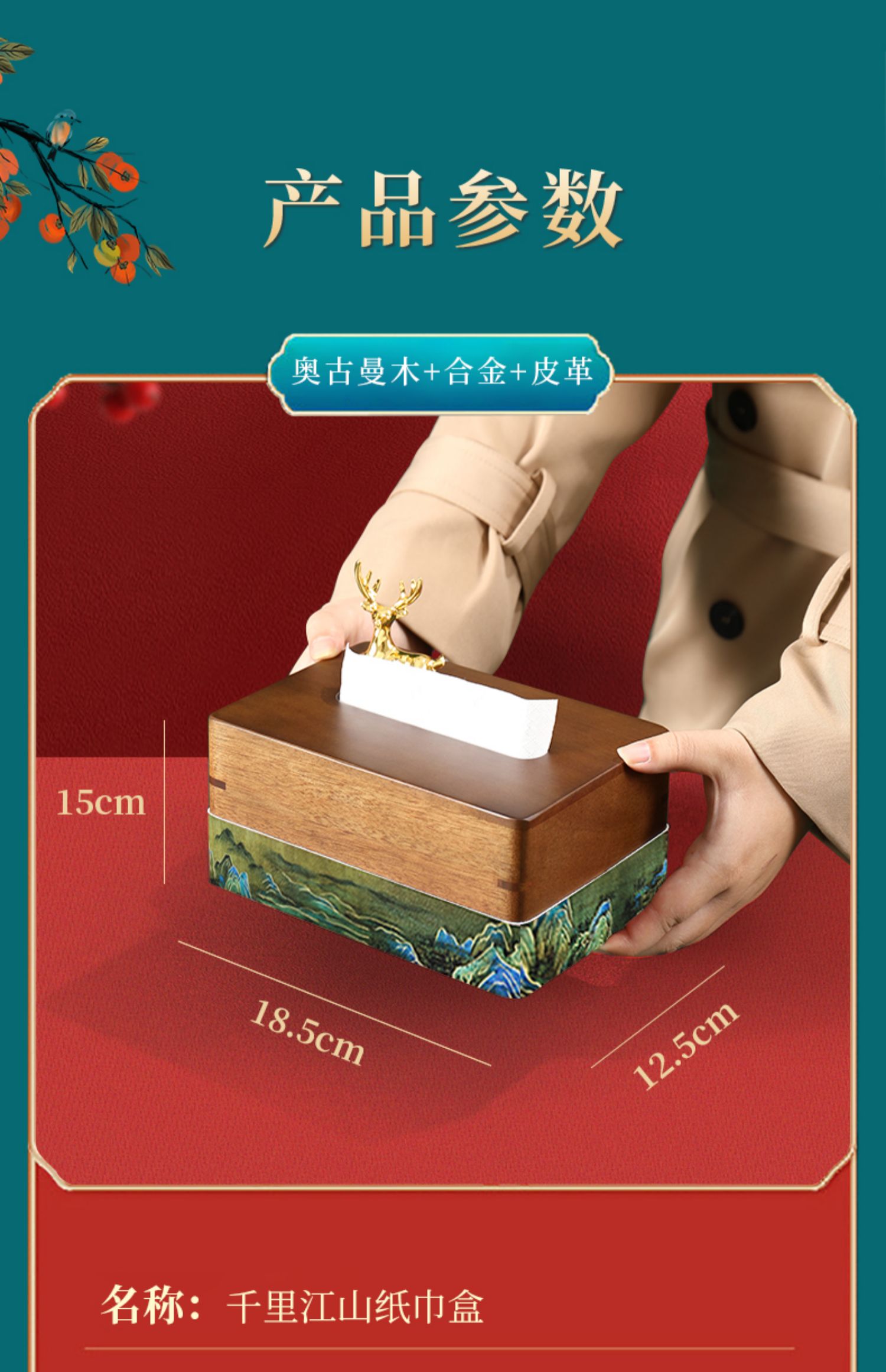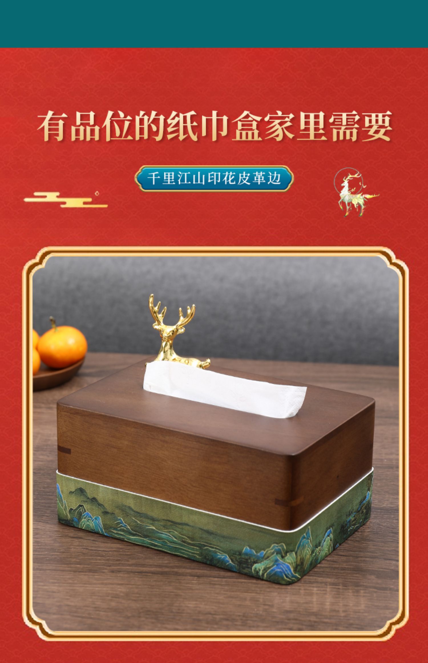 E-GSR-SN3012LV 千里江山卧鹿胡桃木纸巾盒