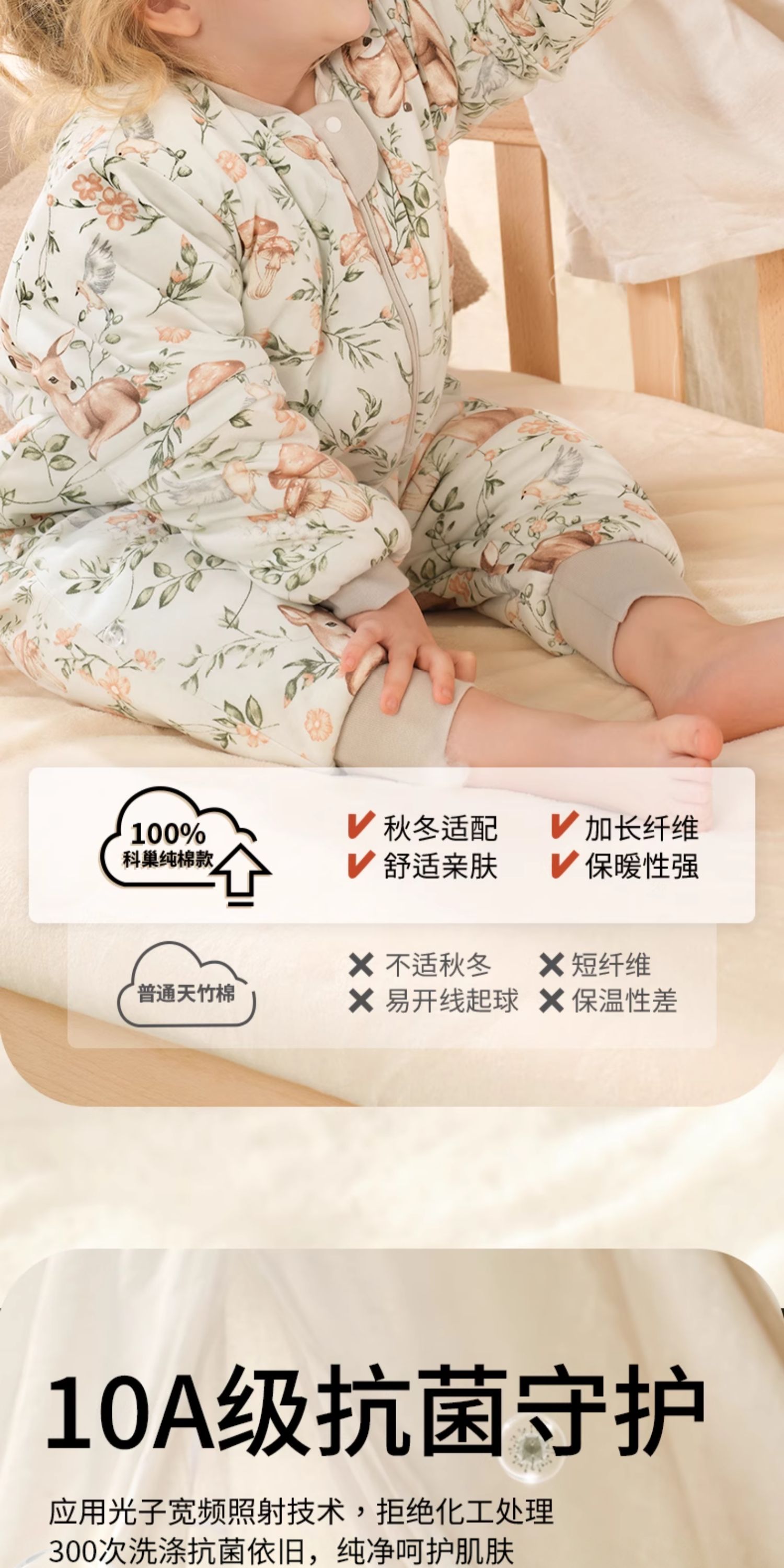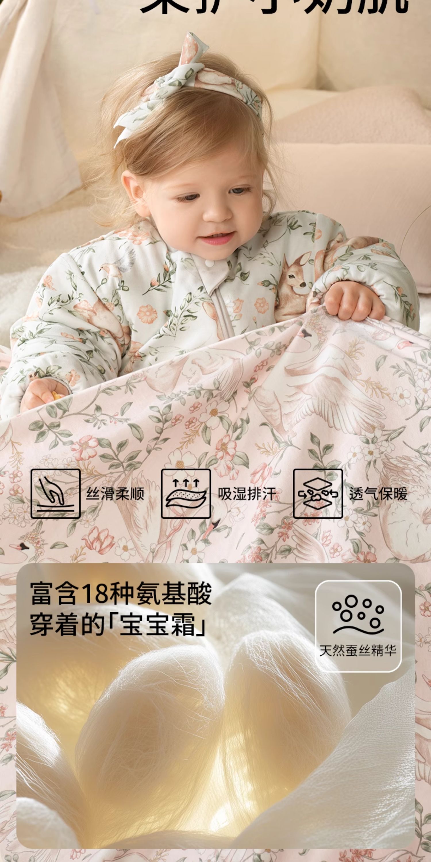 科巢婴儿睡袋春秋冬款恒温分腿睡袋桑蚕丝宝宝儿童防踢被四季通用