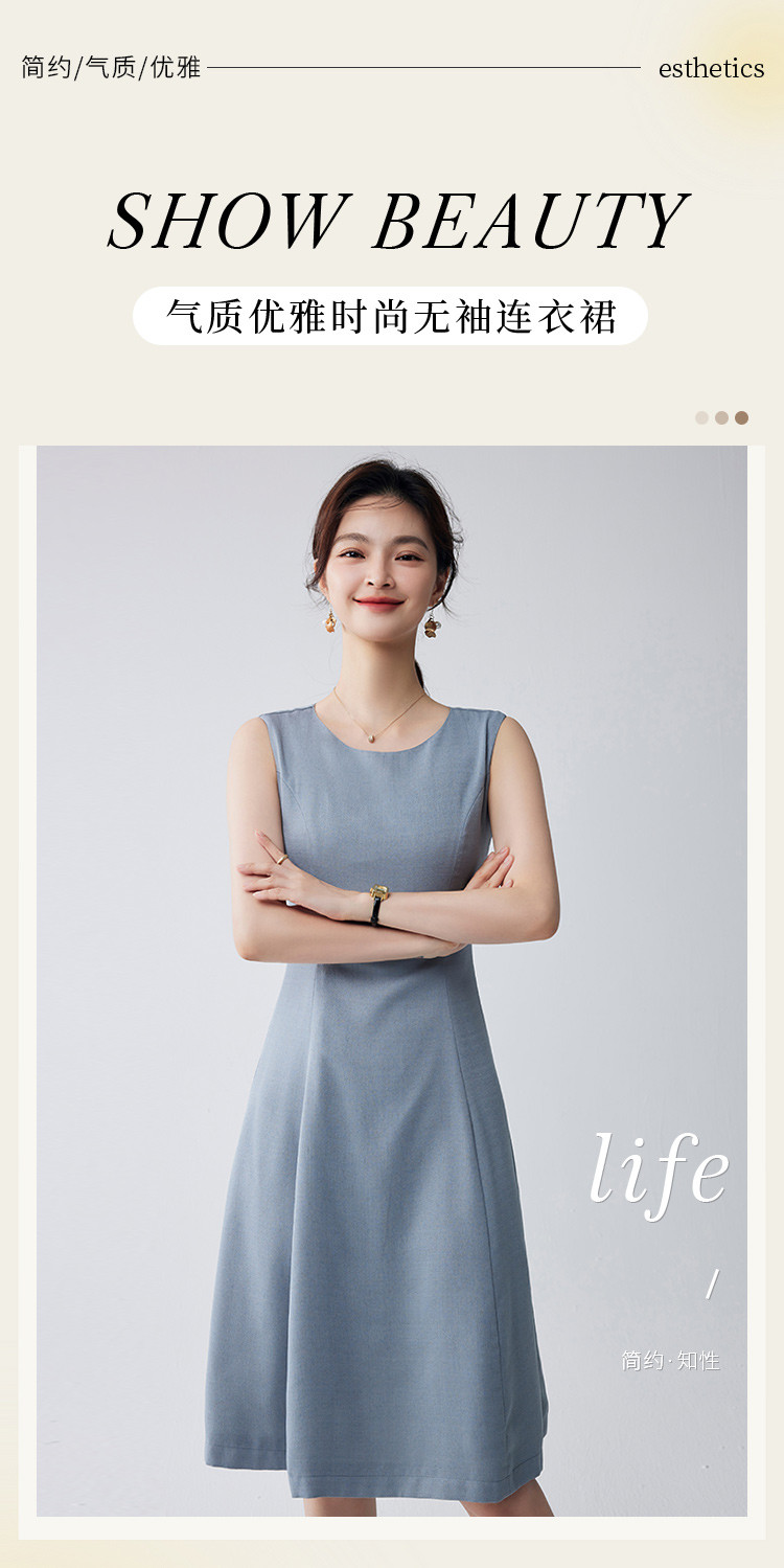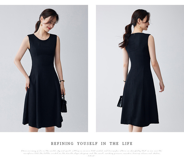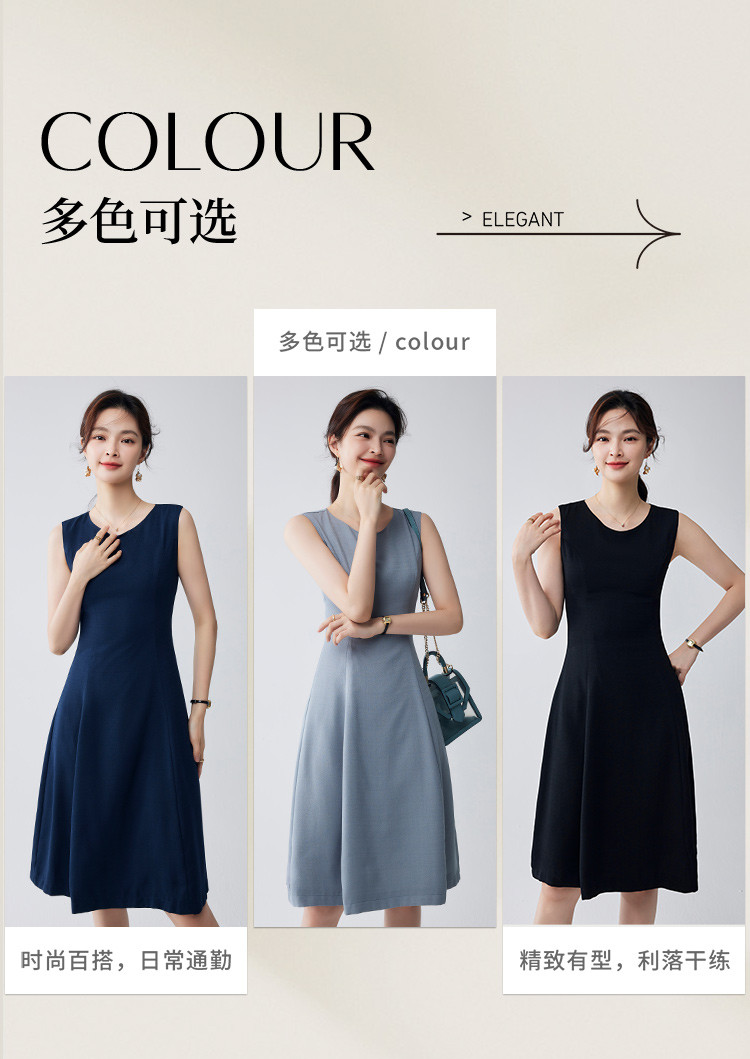 【简约优雅】罗蒙女士连衣裙百搭日常聚会职场无袖中长款连衣裙女