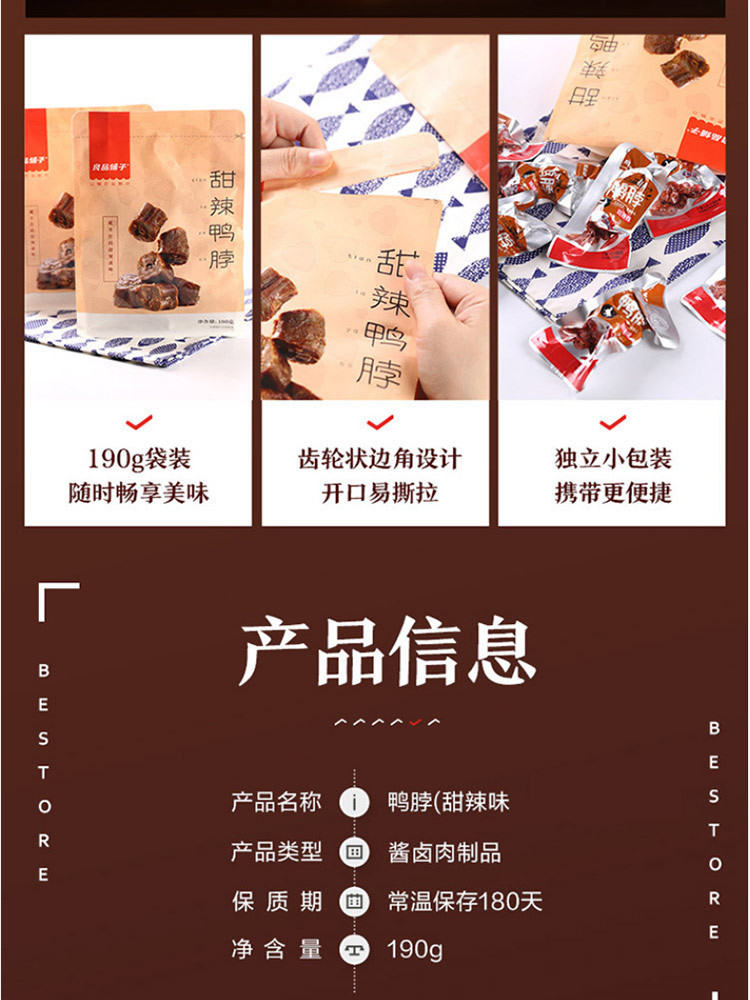 良品铺子甜辣鸭脖190g卤味熟食小吃休闲食品锁鲜小包装追剧茶几零食