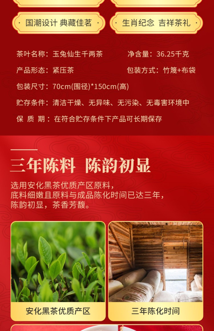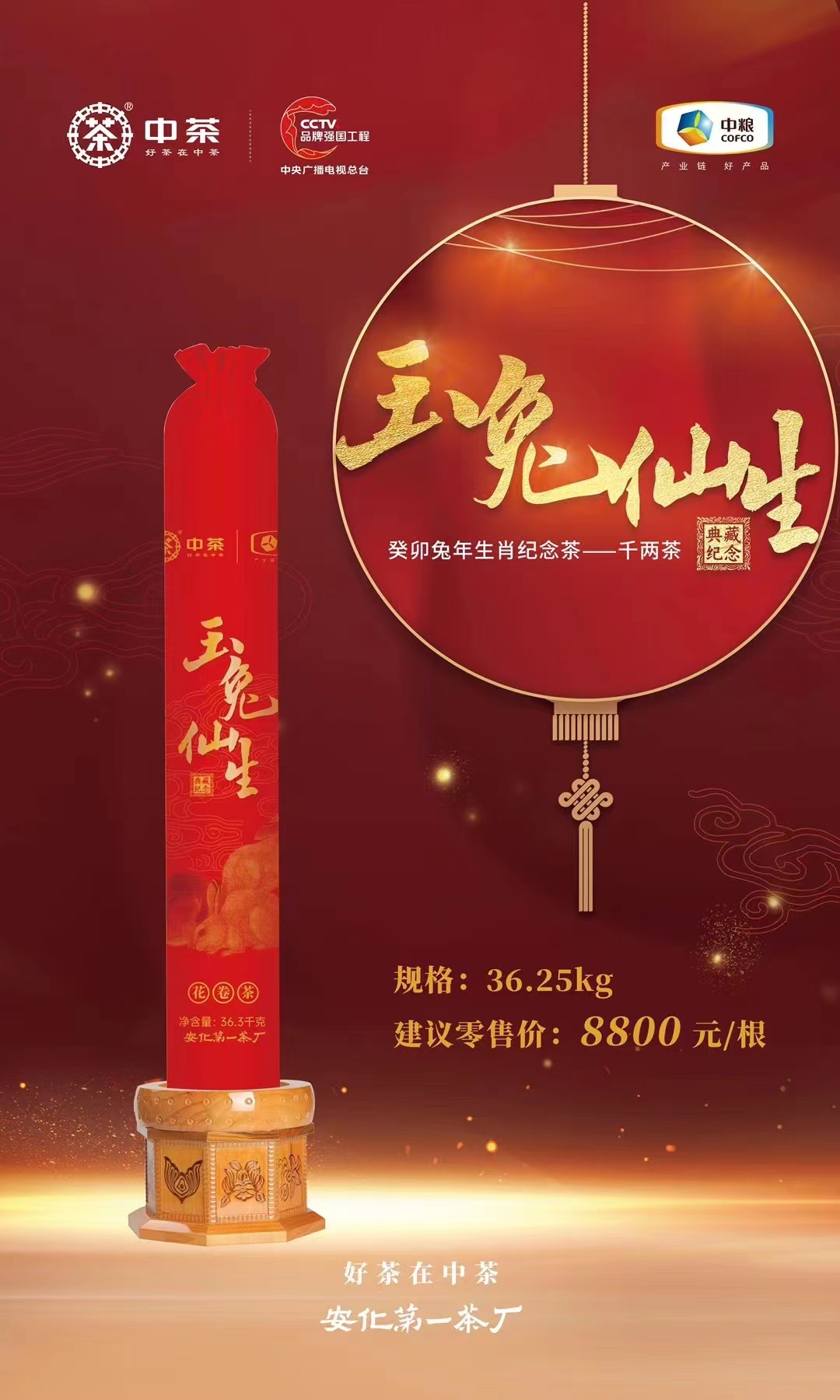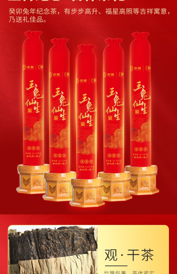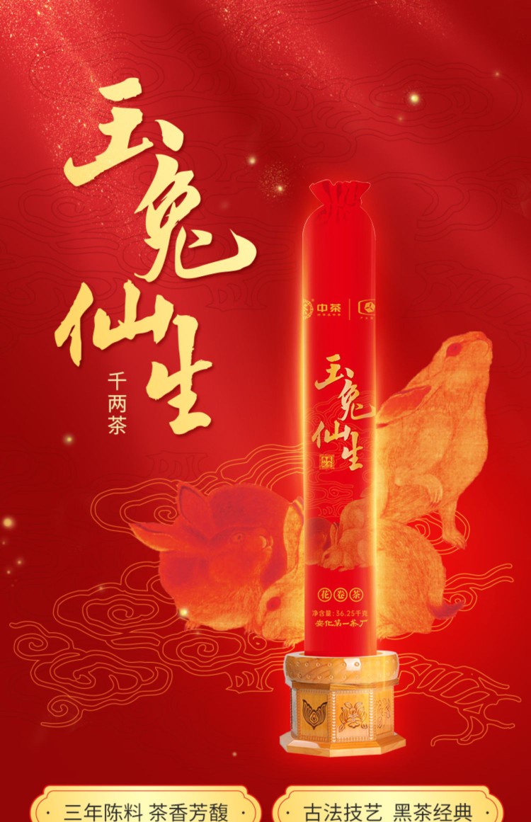 茶安化黑茶中茶千两茶玉兔先生生肖茶千两茶