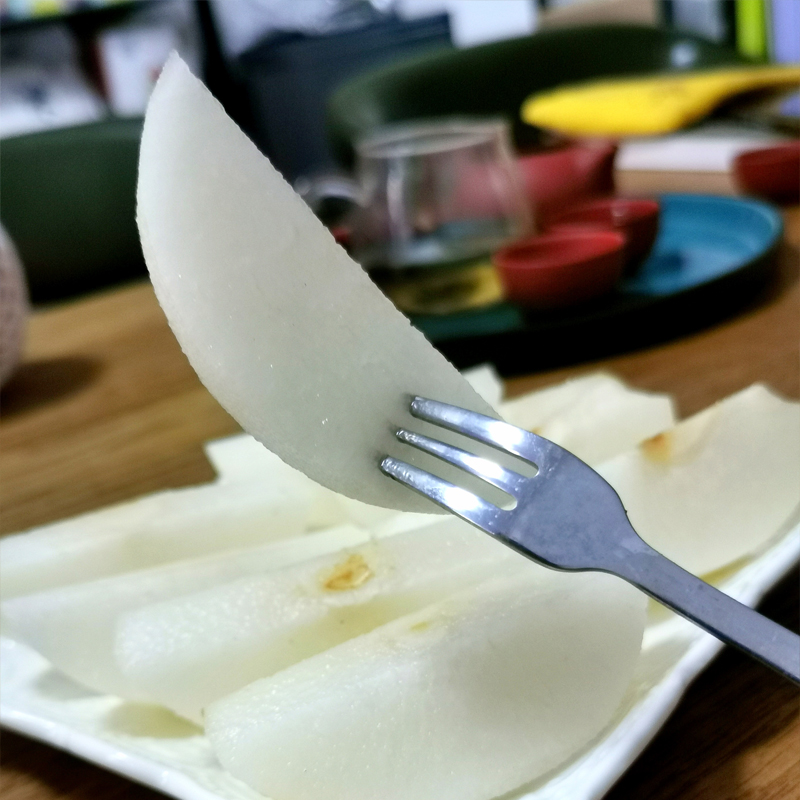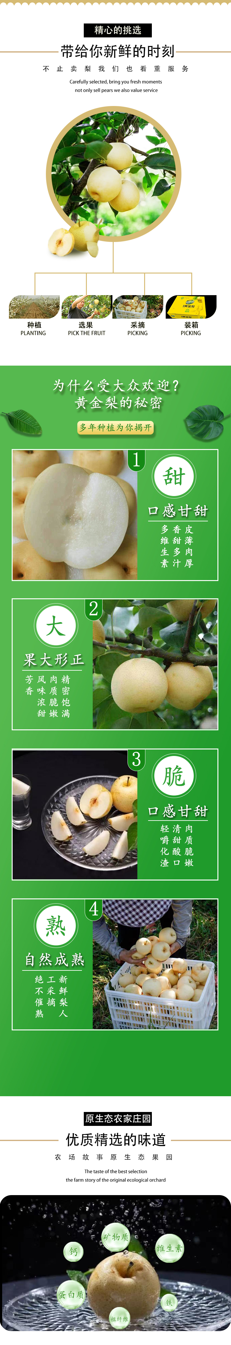 果肉细腻无渣,晶莹剔透如羊脂,香甜酥脆,咬一口满嘴爆汁,梨香四溢;细嚼无渣无沙粒感,轻咽沁心入肺,清爽降燥。酵素黄金梨皮薄肉厚核小可食率高,平均糖度13%左右,清甜脆爽。