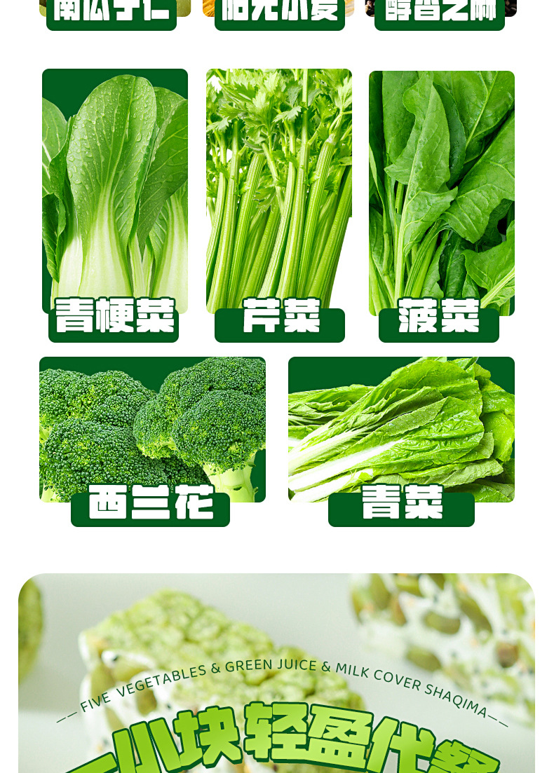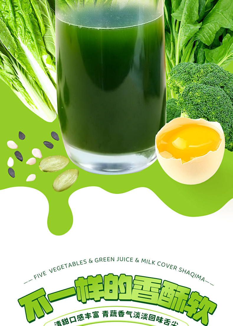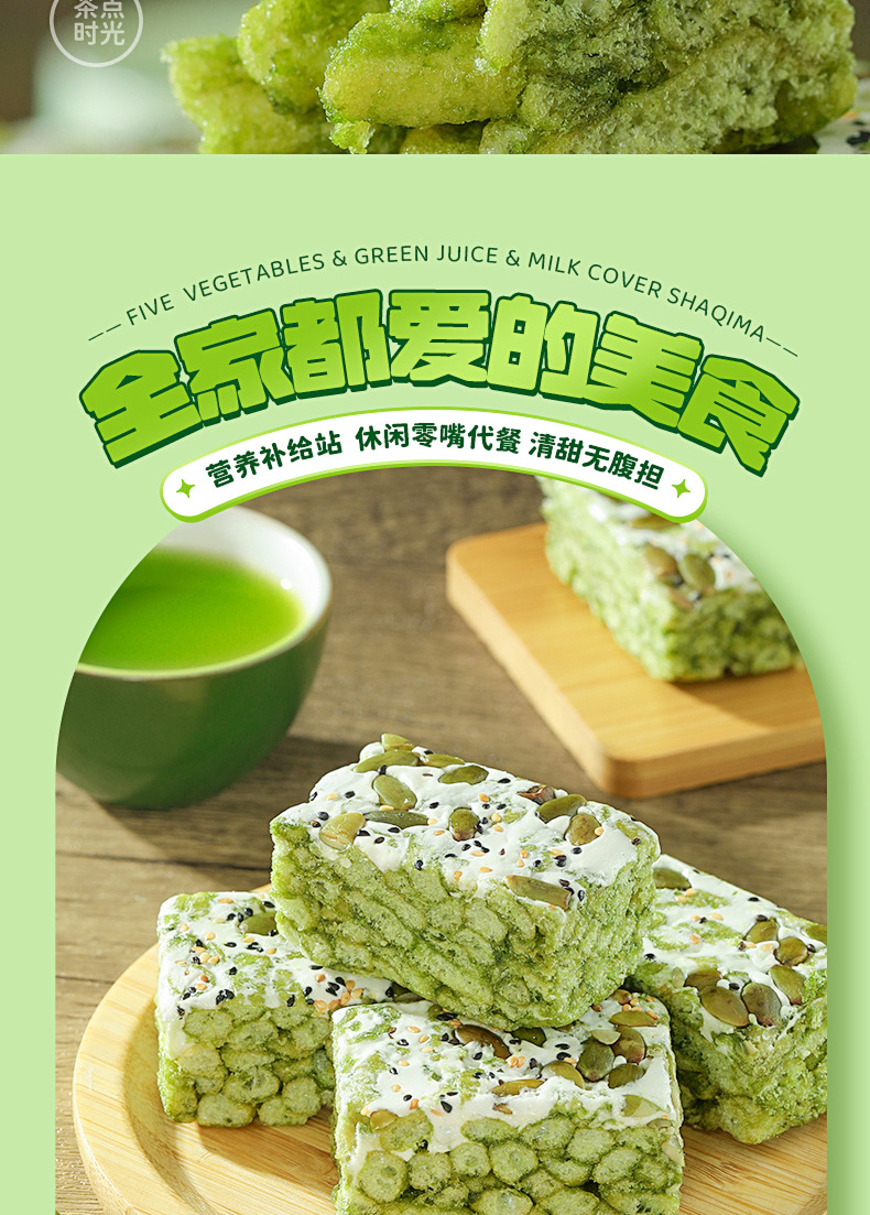 「5种果蔬!青汁奶盖沙琪玛」雪丽芙五蔬青汁奶盖沙琪玛 网红轻食代餐零食
