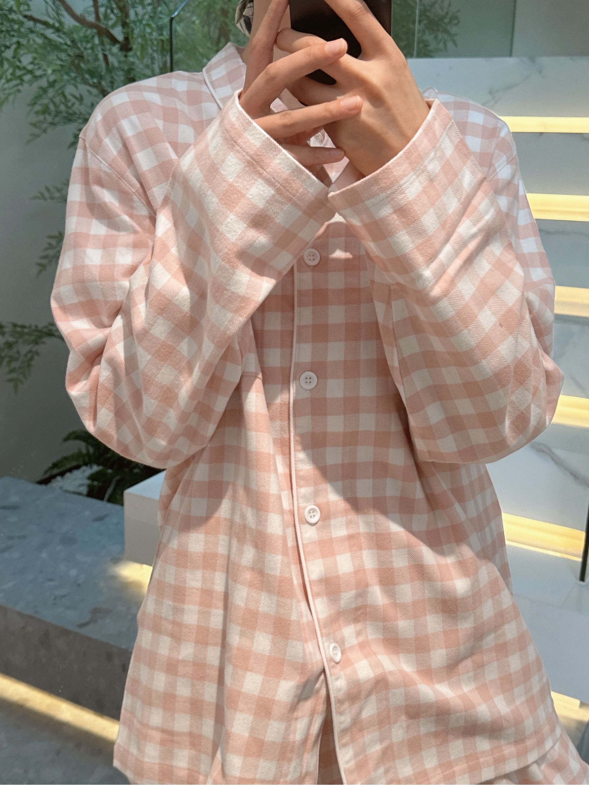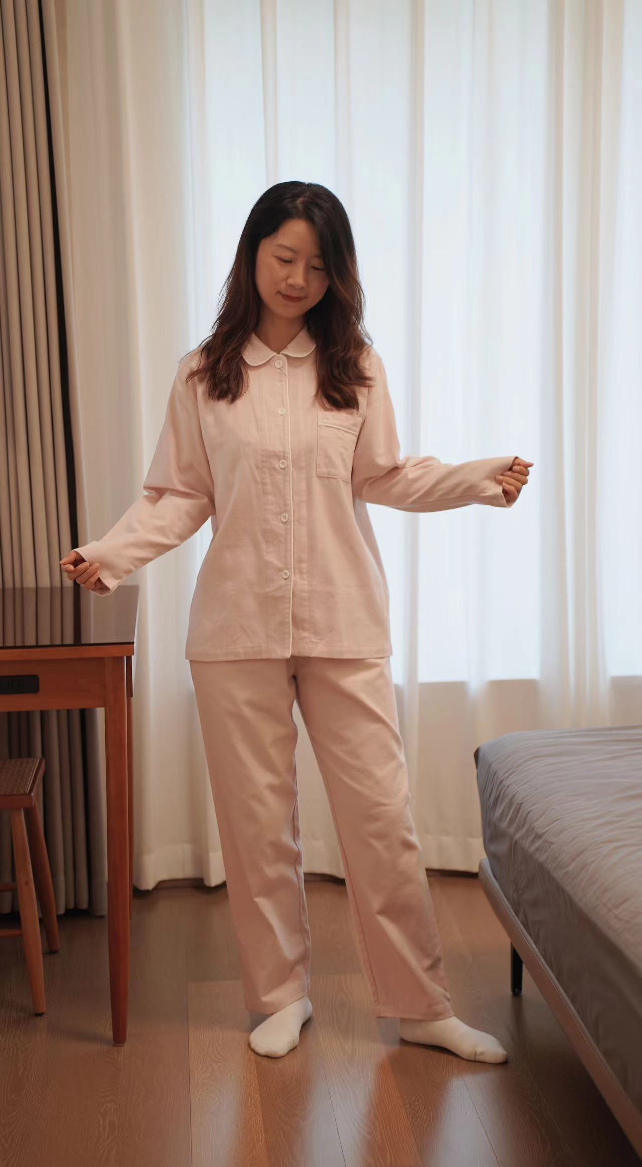 纯原正日本muj*色纺100%棉法兰绒秋款家居服