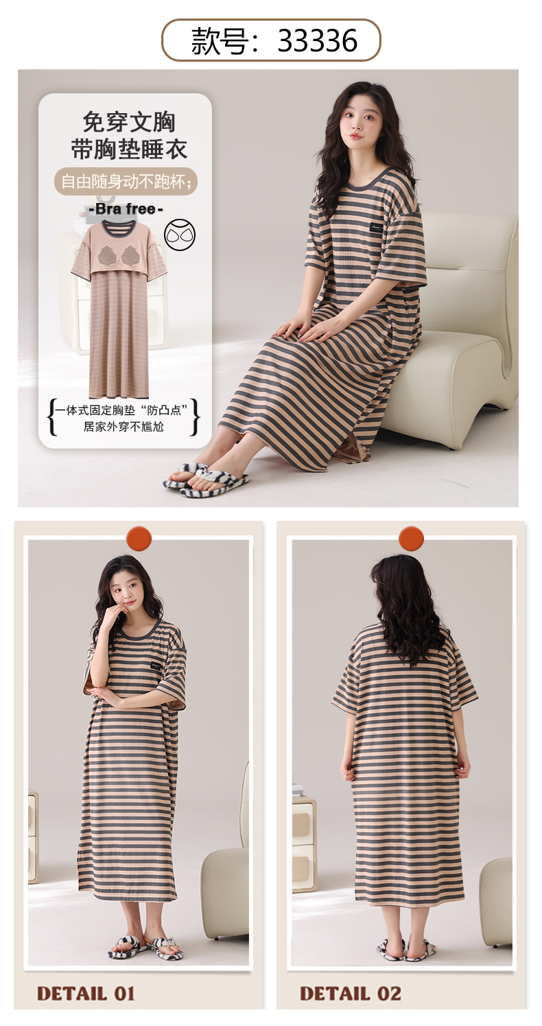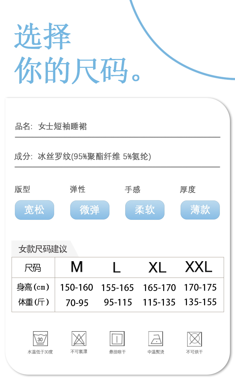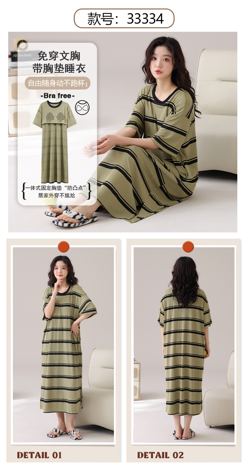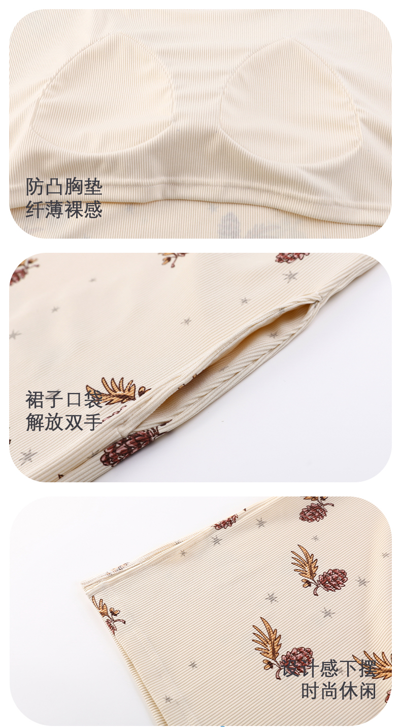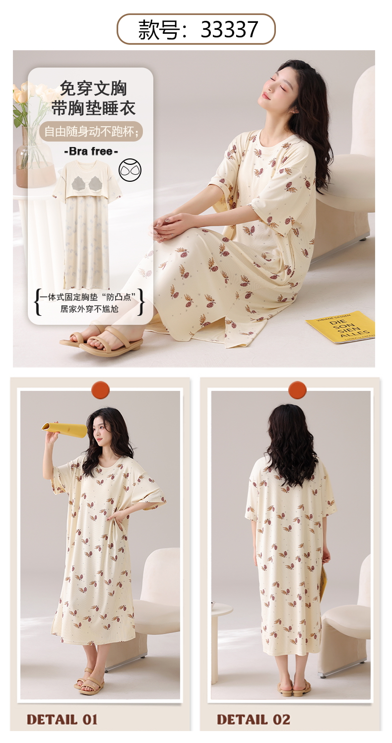 自然醒月半夏季(带胸垫)韩版中长款冰丝睡裙女款短袖连衣裙家居服可外穿QH