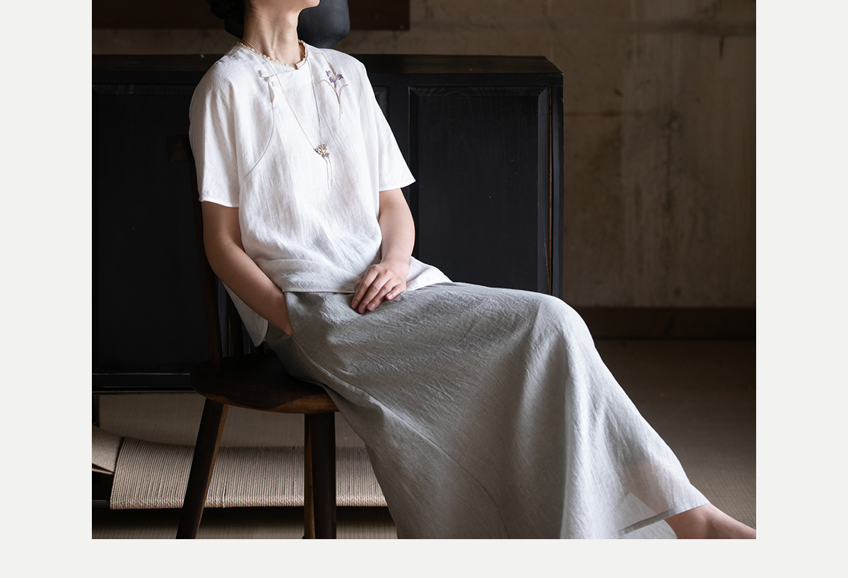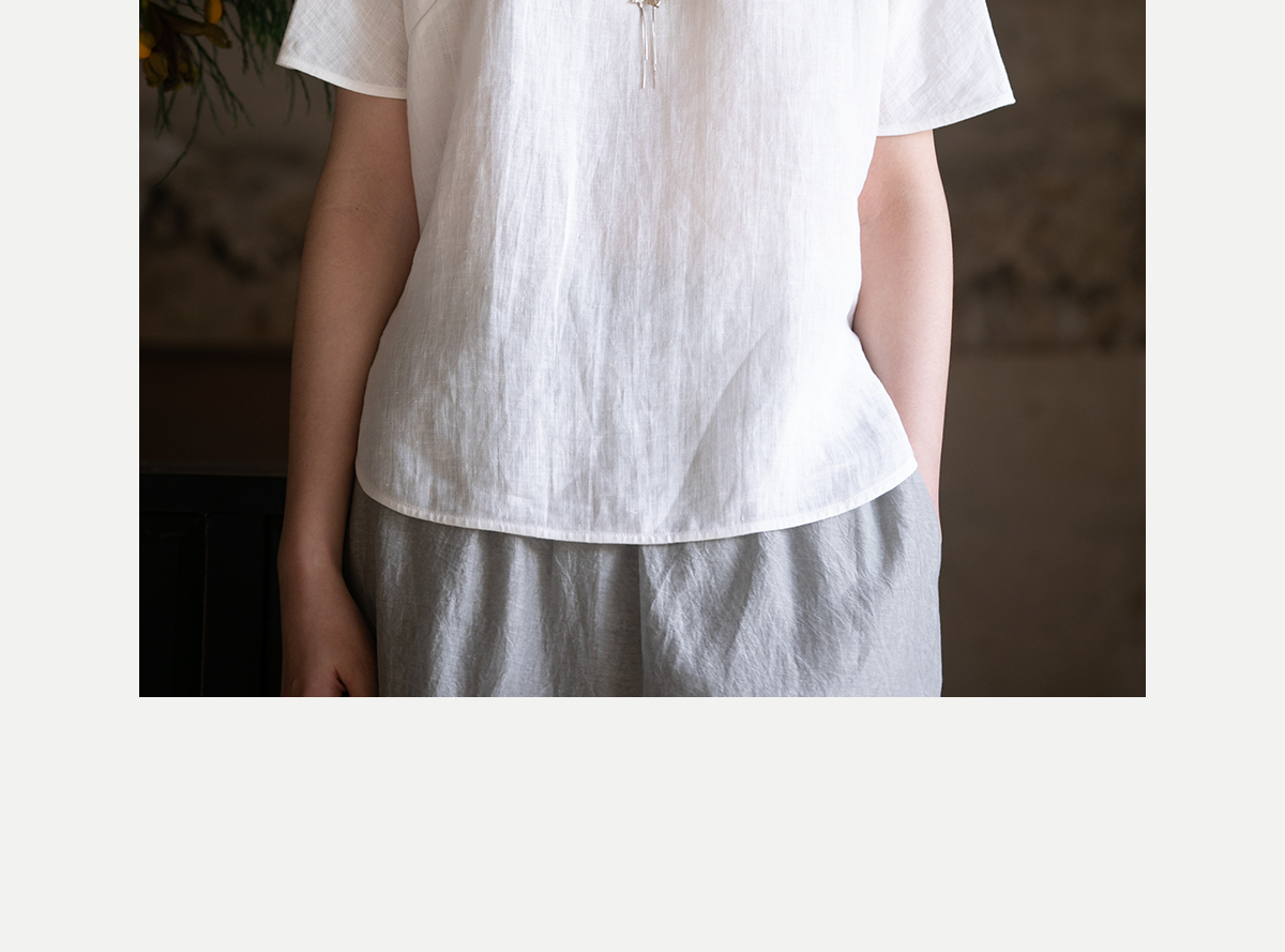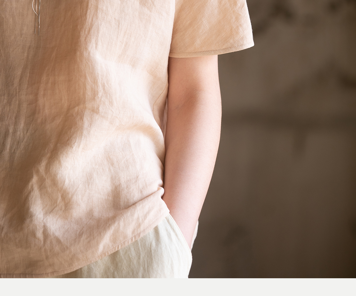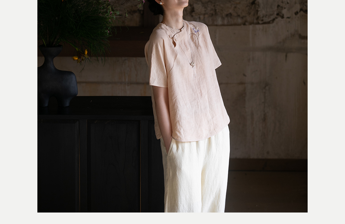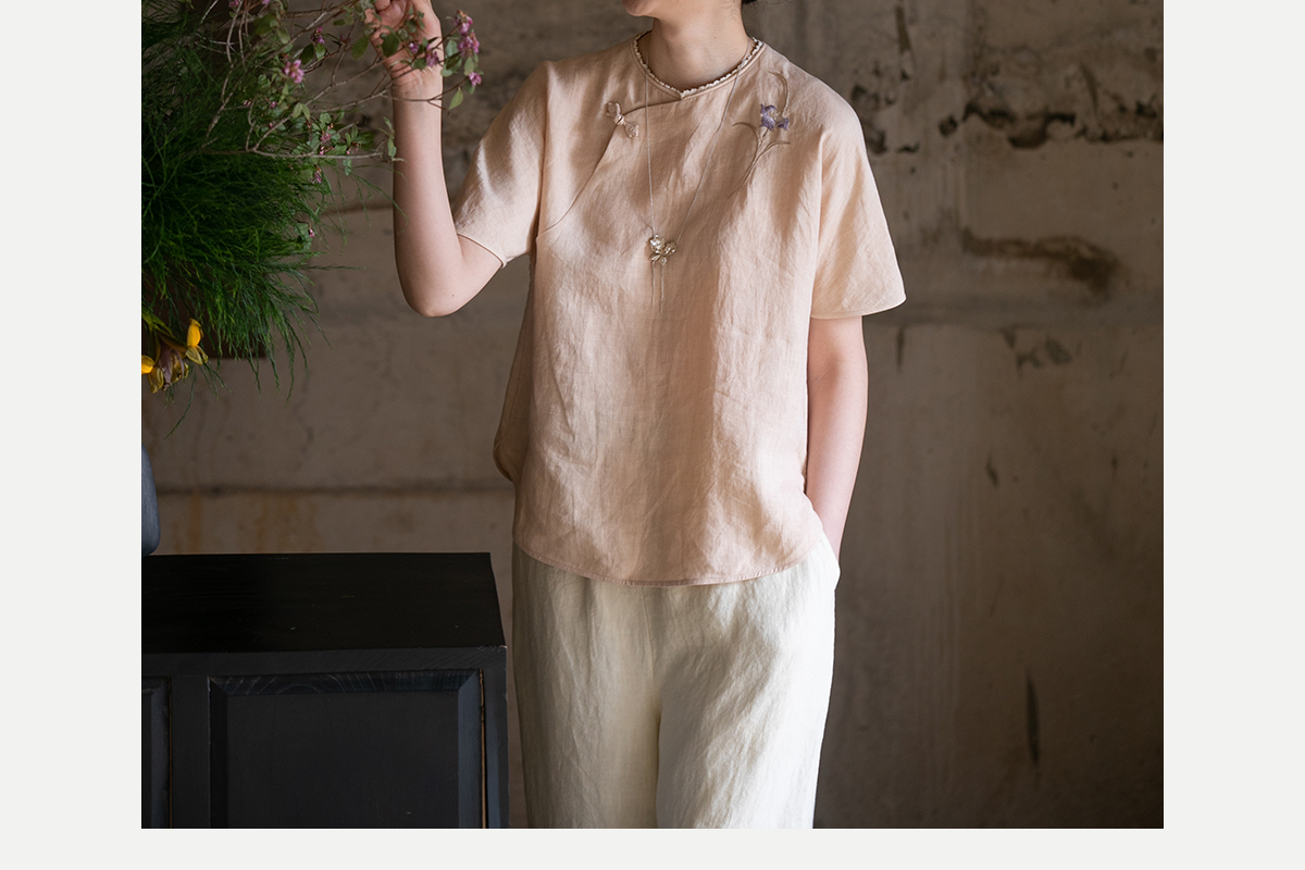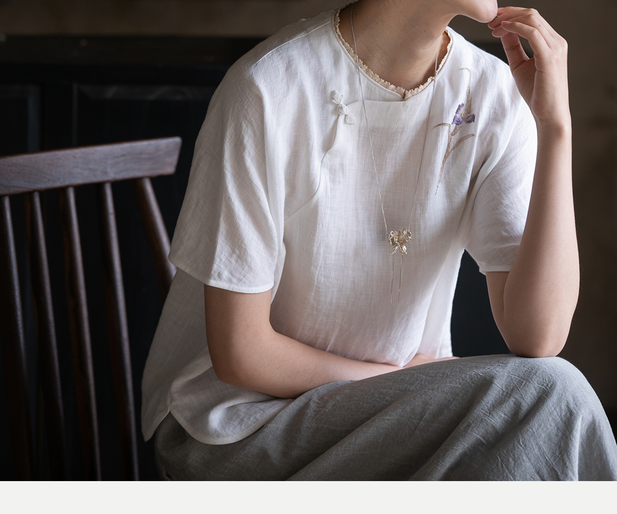牧衣游原创 手工刺绣汉麻套头衫柔软舒适禅意短袖上衣 雾入森海