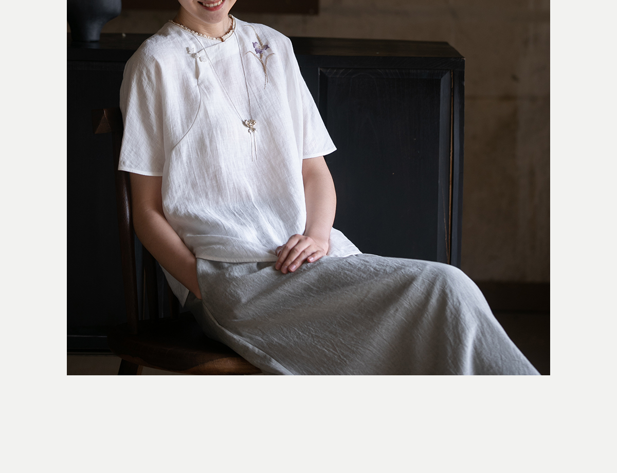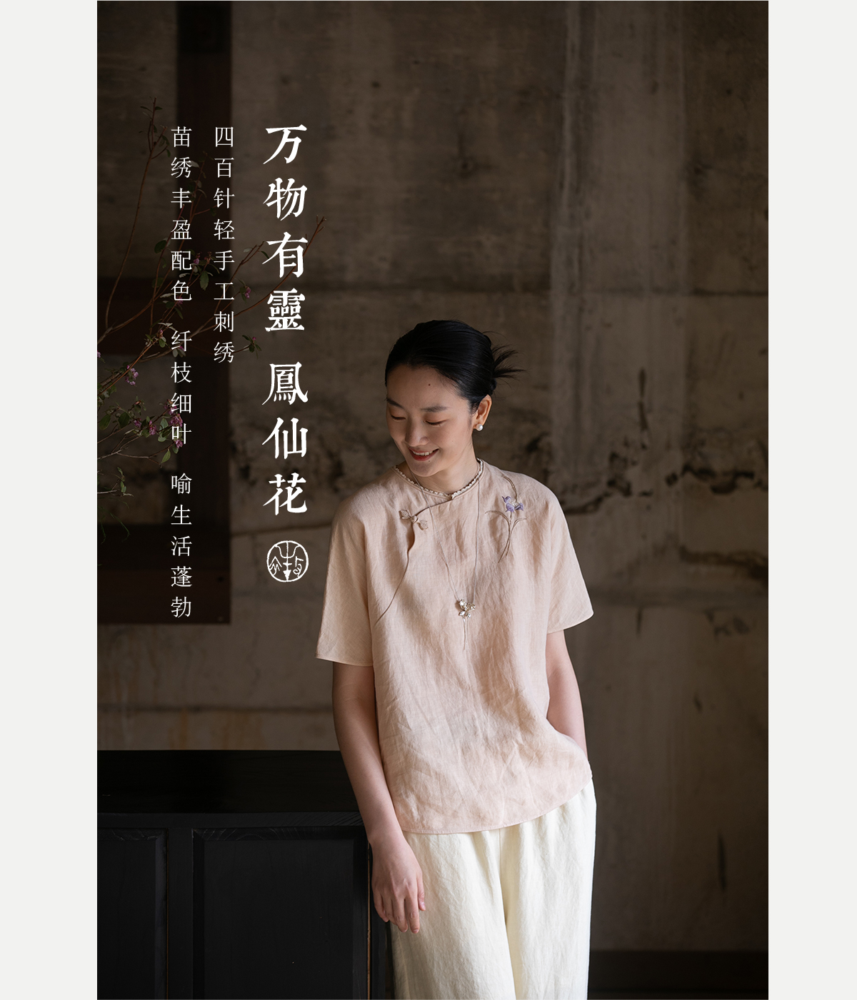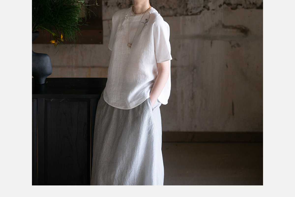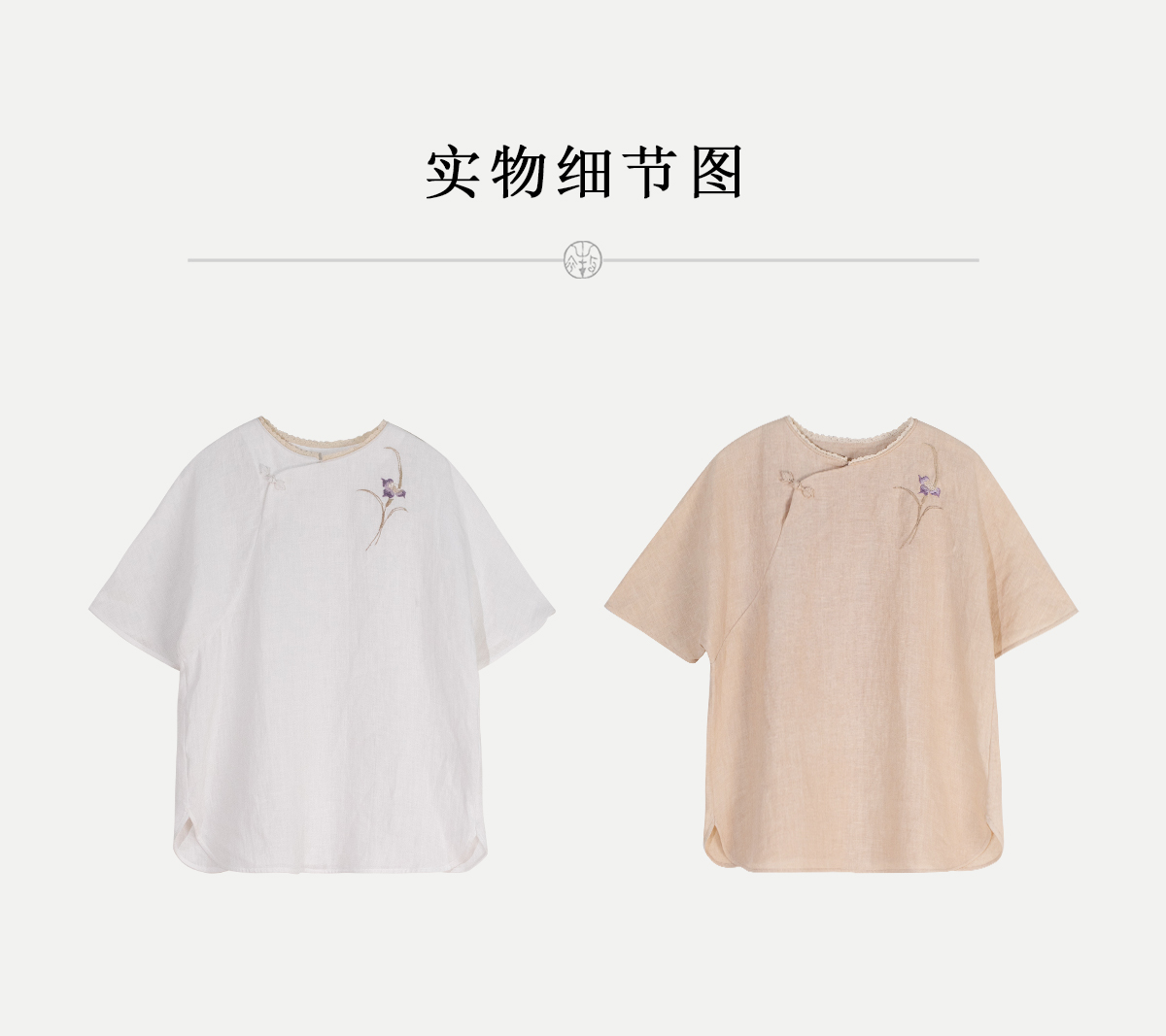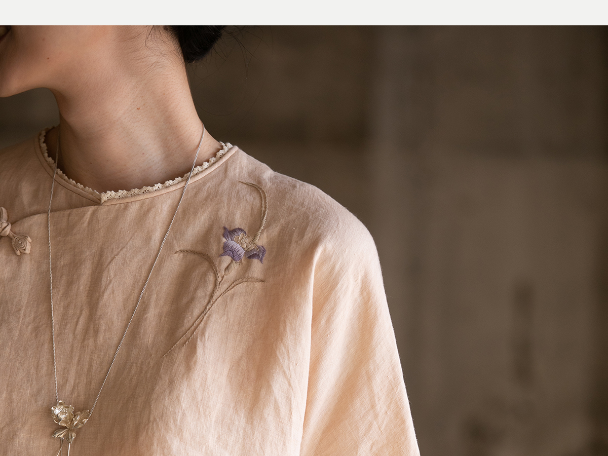 牧衣游原创 手工刺绣汉麻套头衫柔软舒适禅意短袖上衣 雾入森海