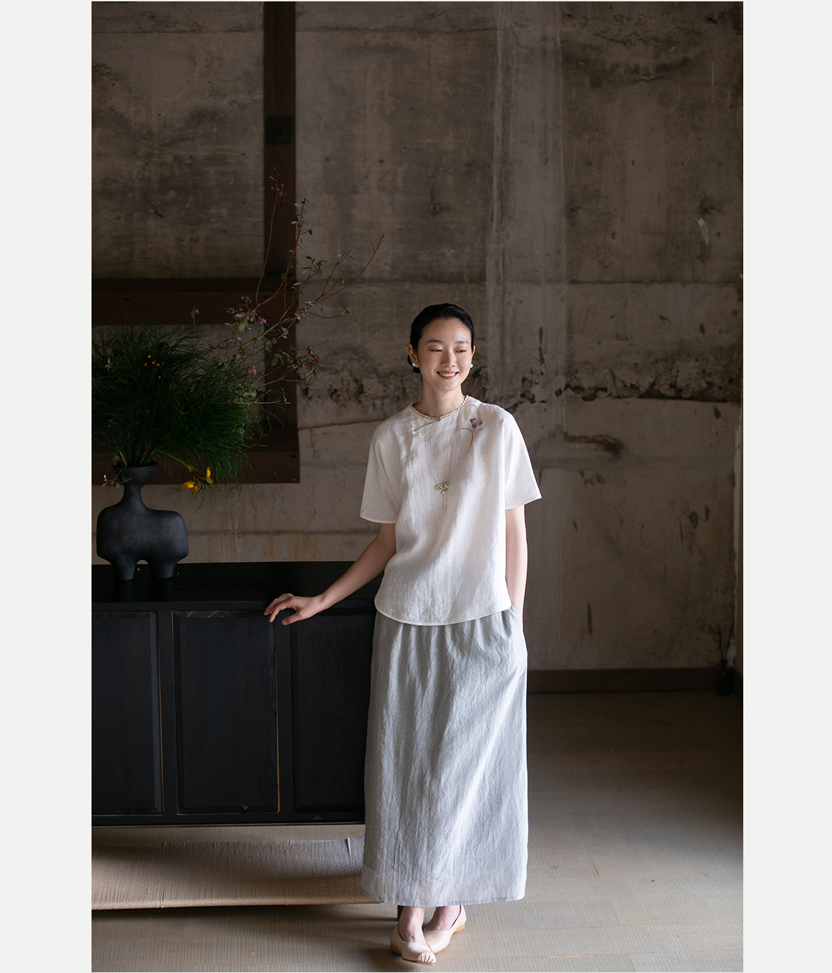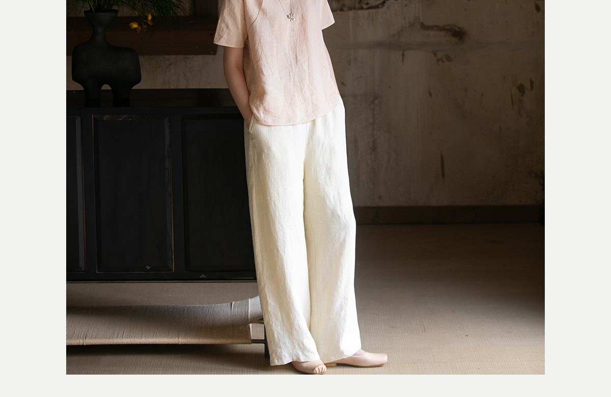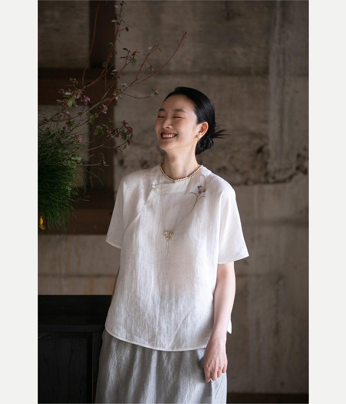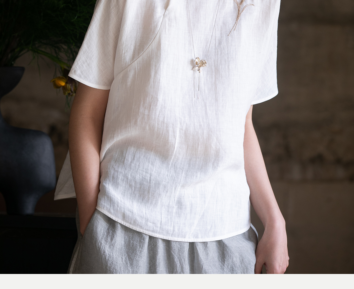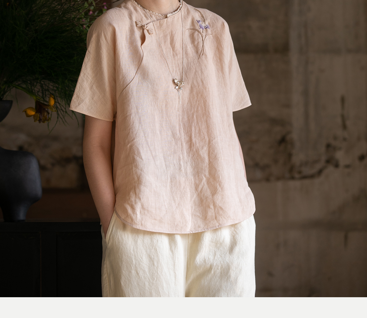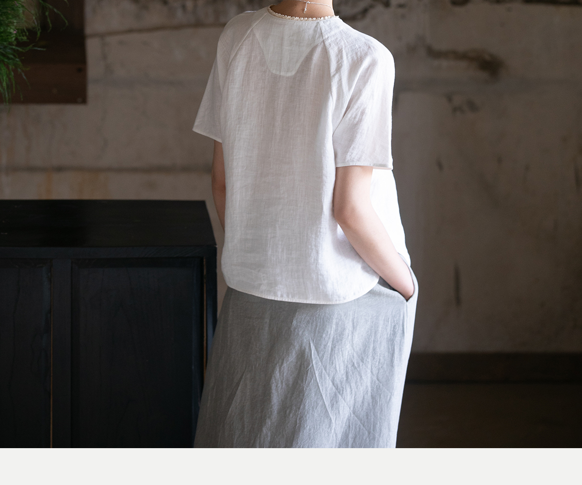 牧衣游原创 手工刺绣汉麻套头衫柔软舒适禅意短袖上衣 雾入森海