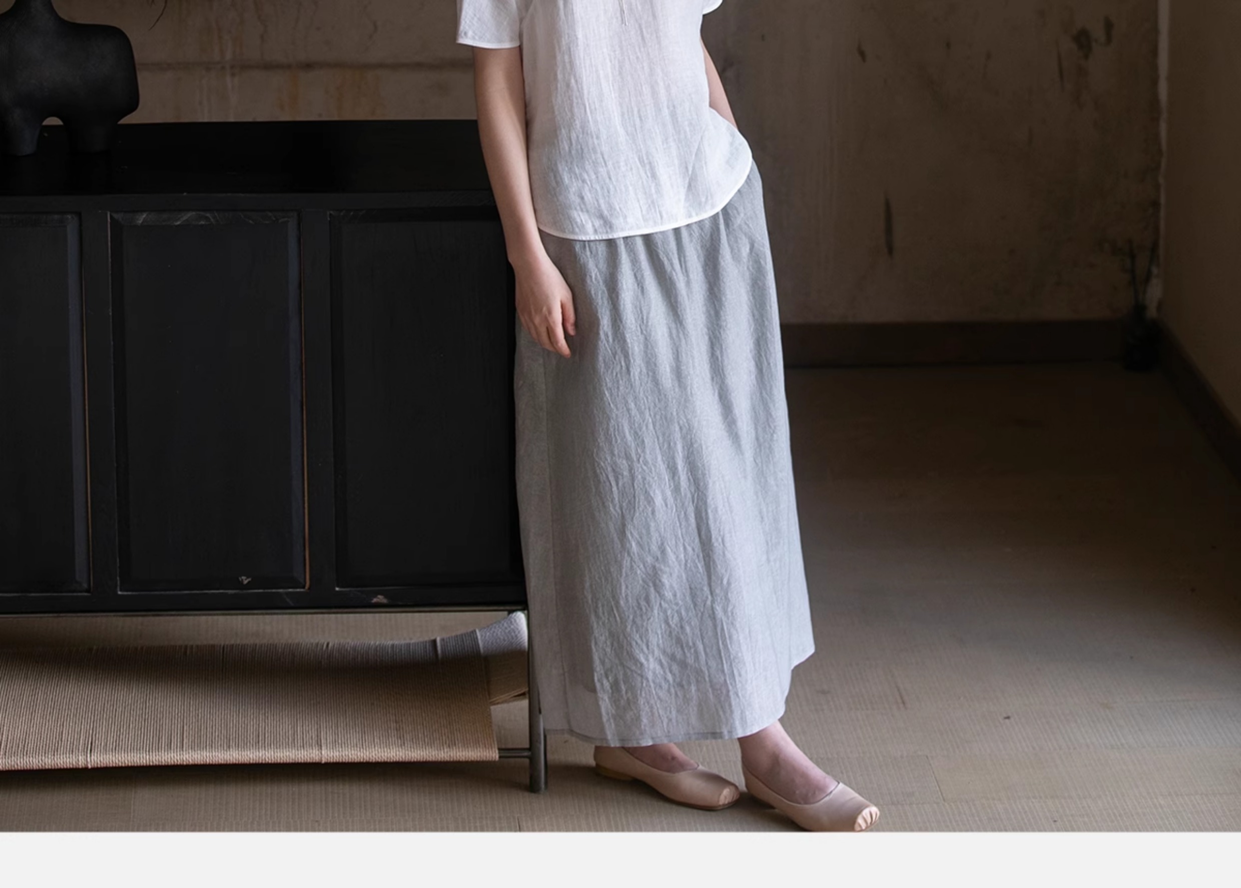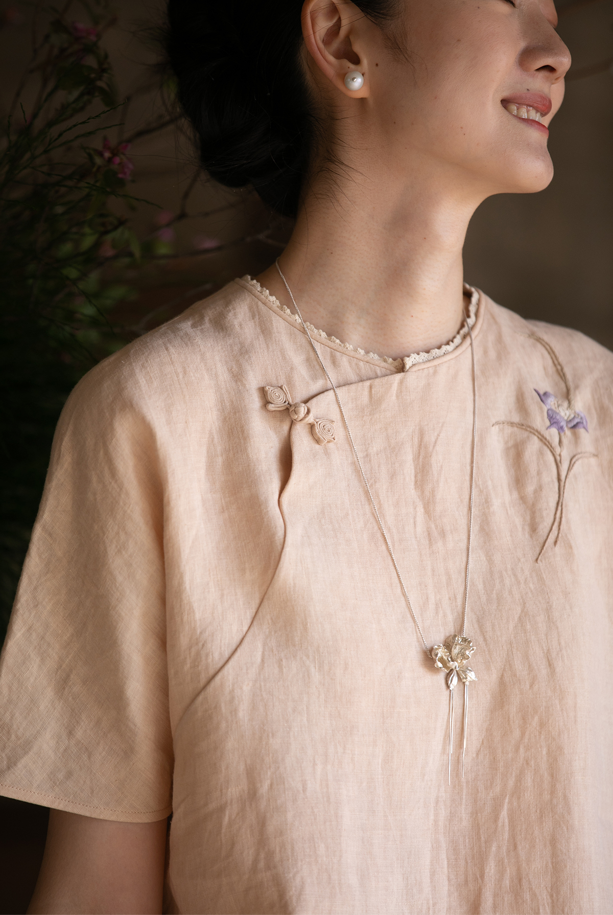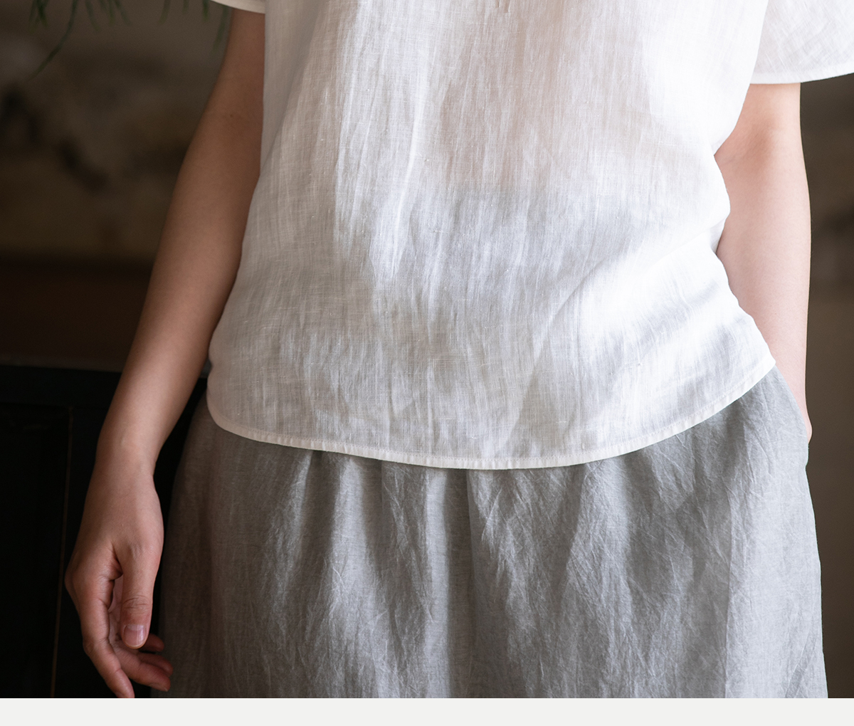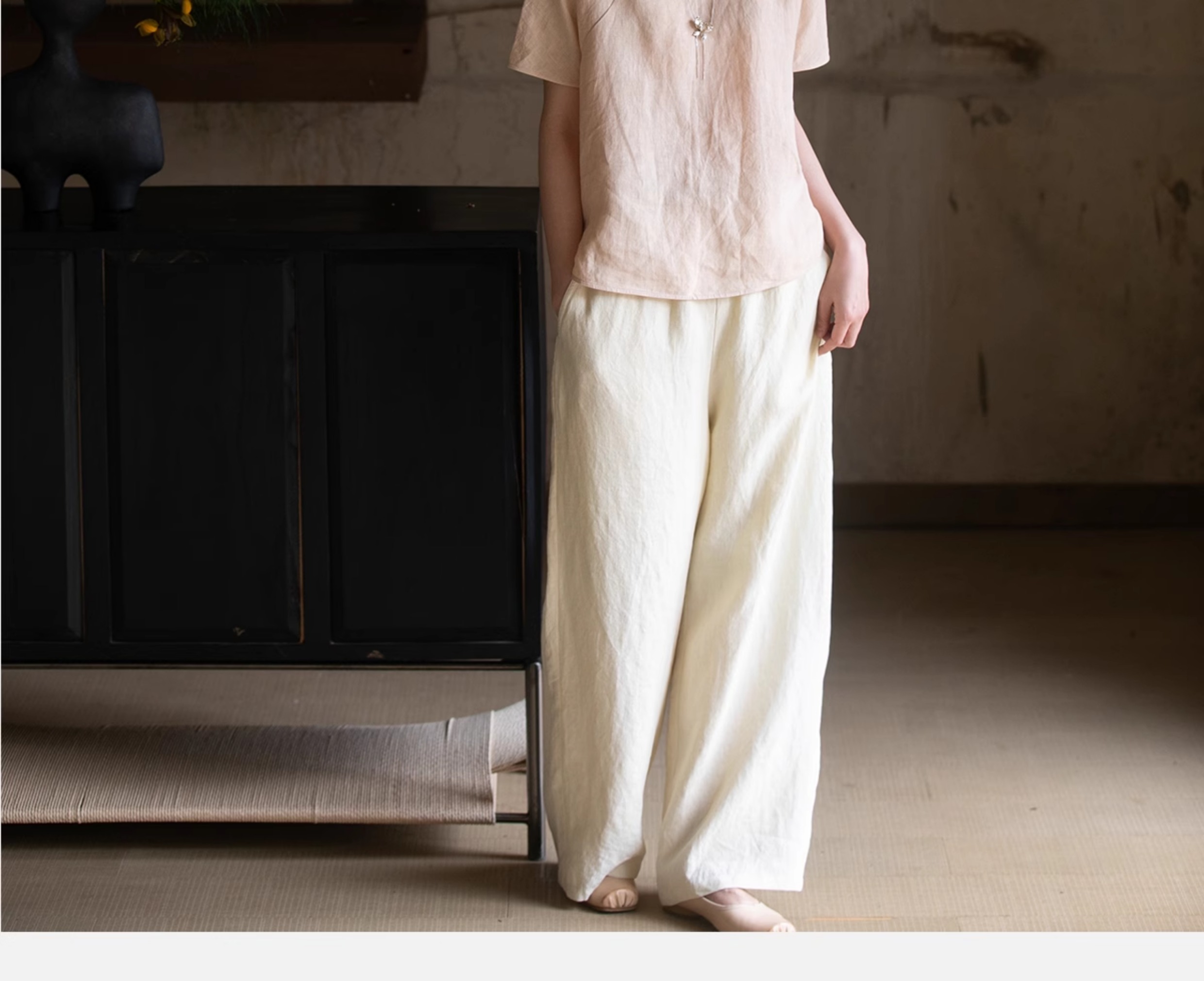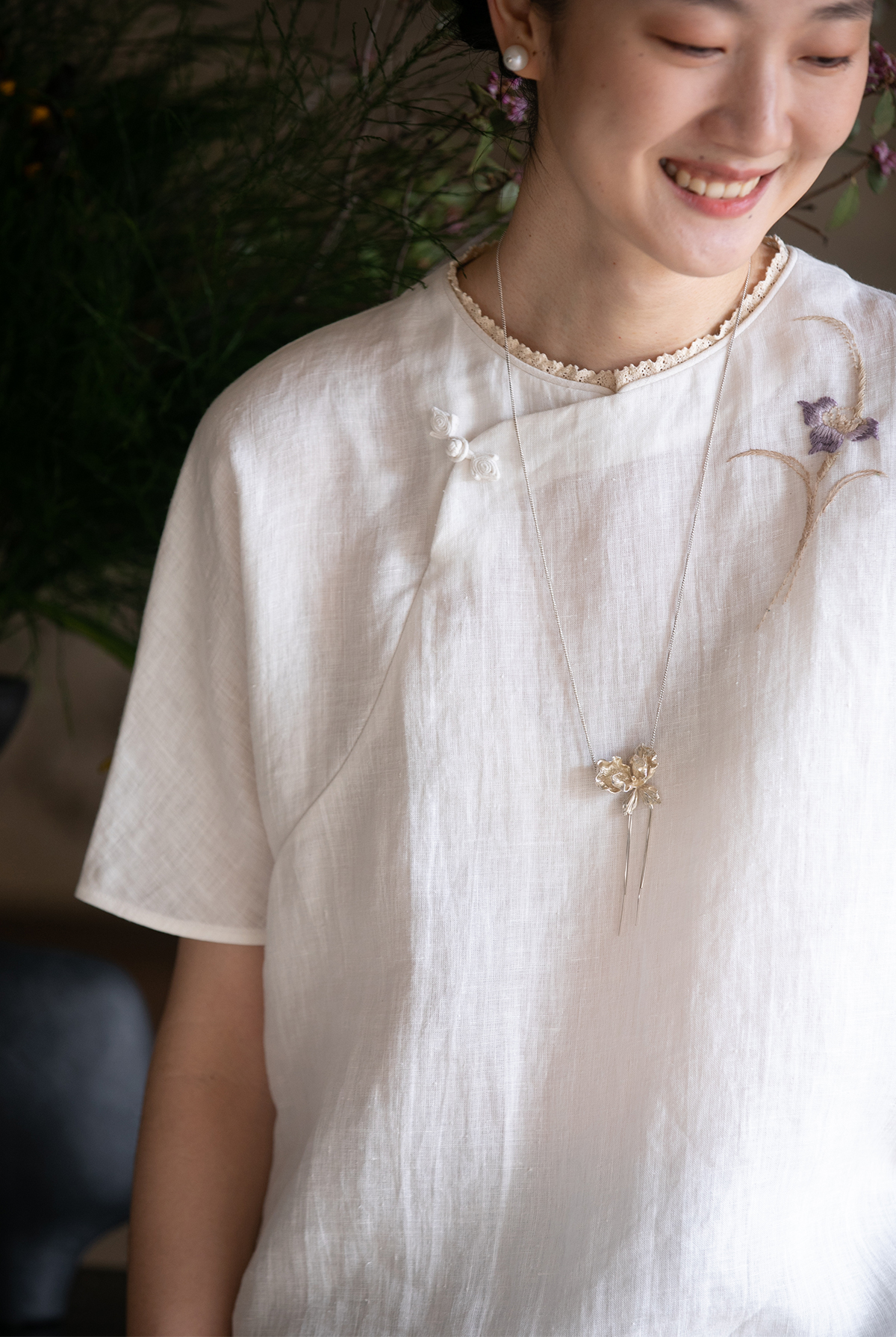 牧衣游原创 手工刺绣汉麻套头衫柔软舒适禅意短袖上衣 雾入森海