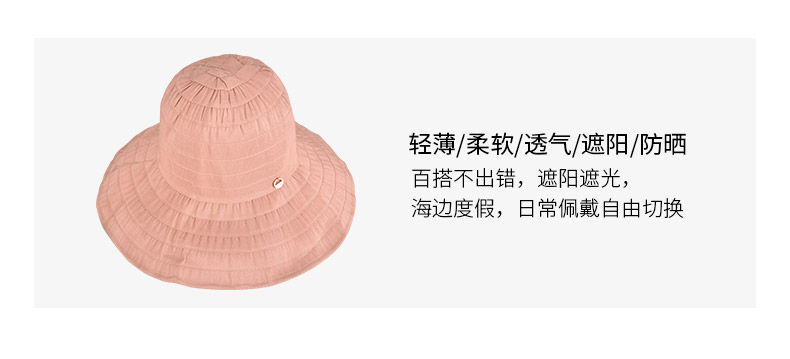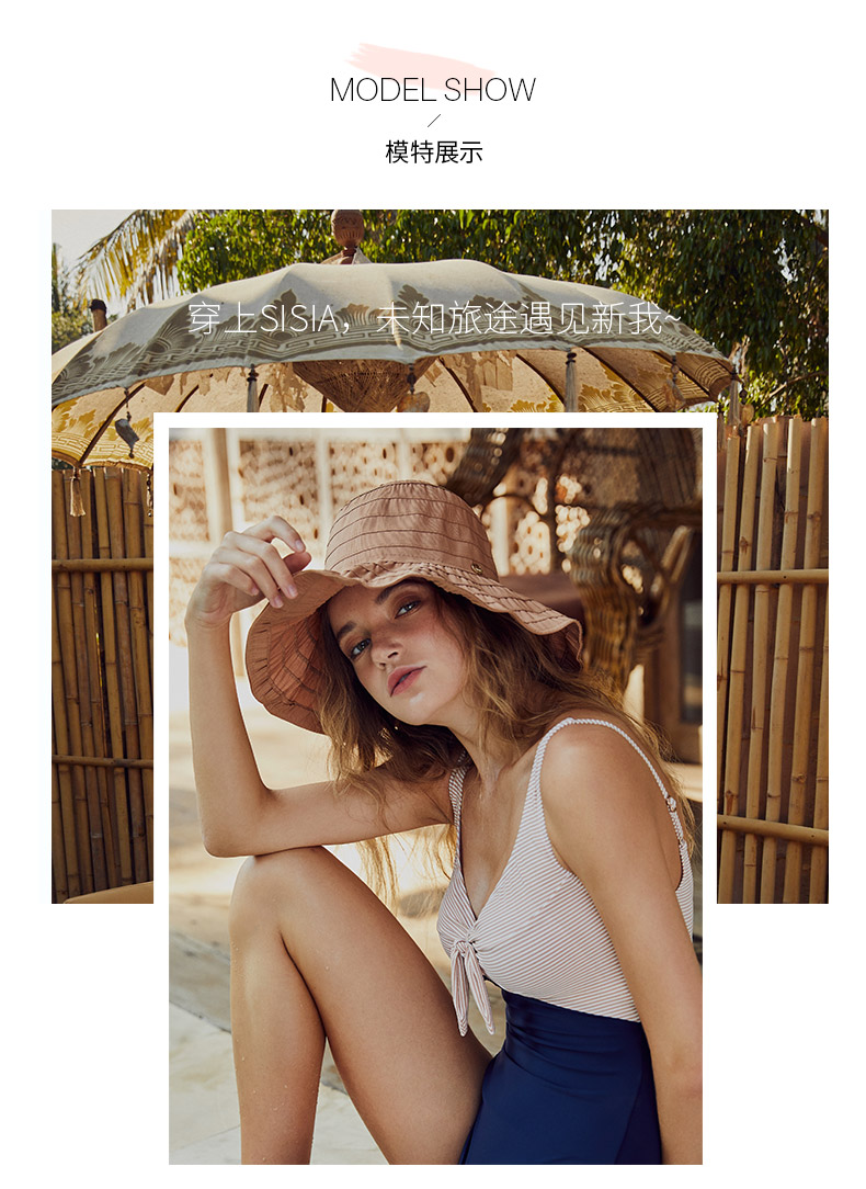sisia新款渔夫帽折叠防晒帽女户外大沿遮阳帽防紫外线轻便渔夫帽SS191W00HAT2