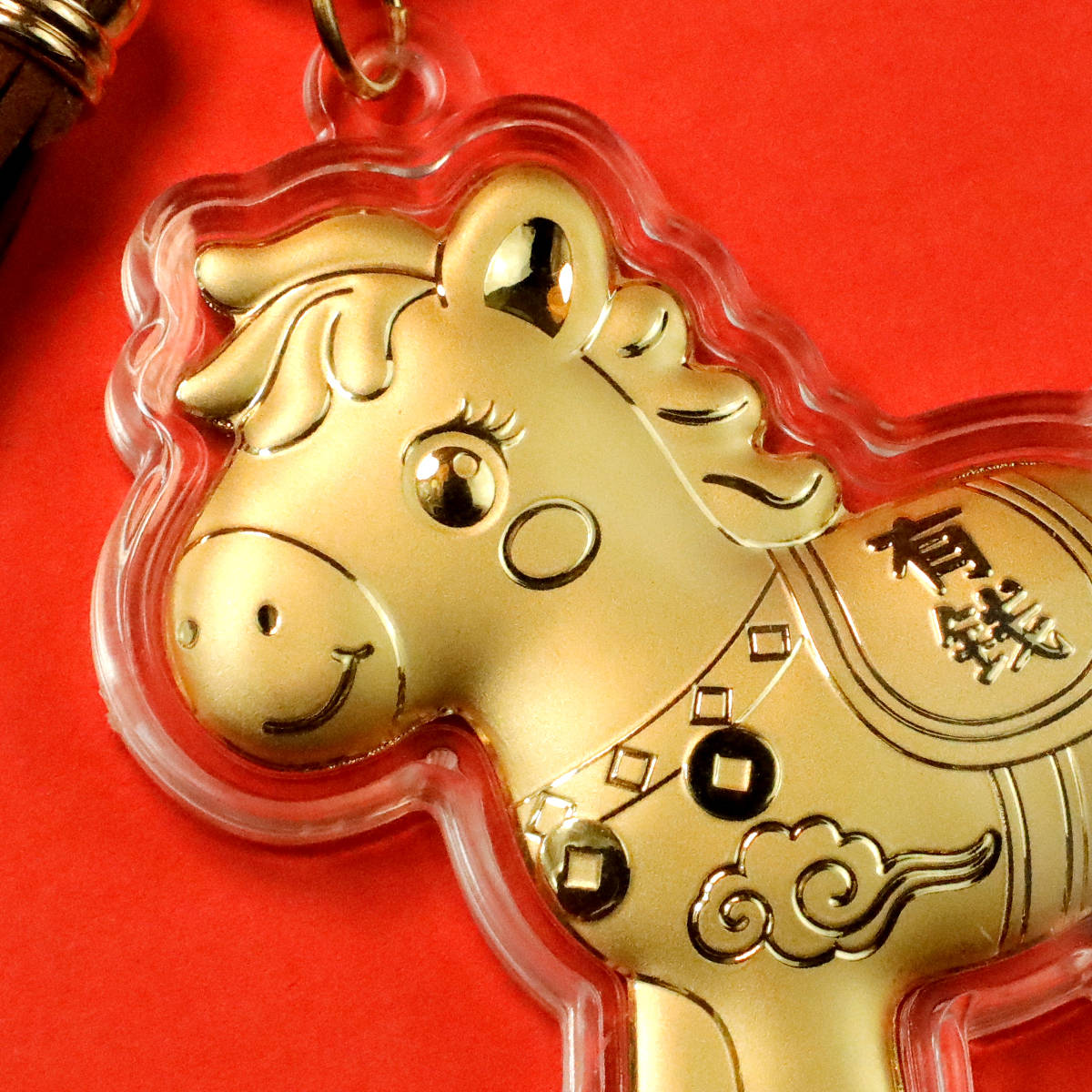 这款挂件内含0.02克999足金,马背上刻上了“有钱”两字,寓意着“马上有钱”,拿下这枚挂件,寓意着我们就能马上有钱!