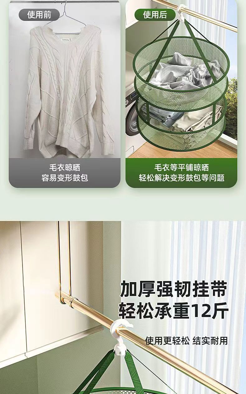 可折叠晾衣篮防变形晾晒网家用晒衣网双层晾衣服的网兜毛衣晒衣篮