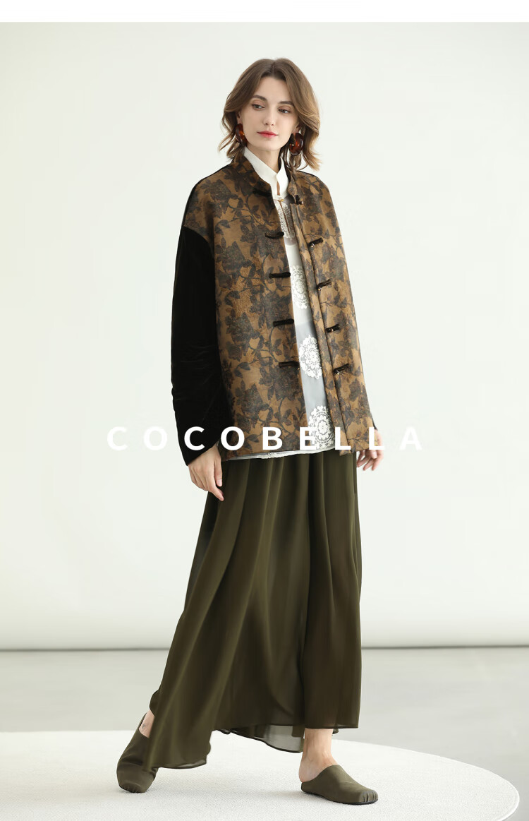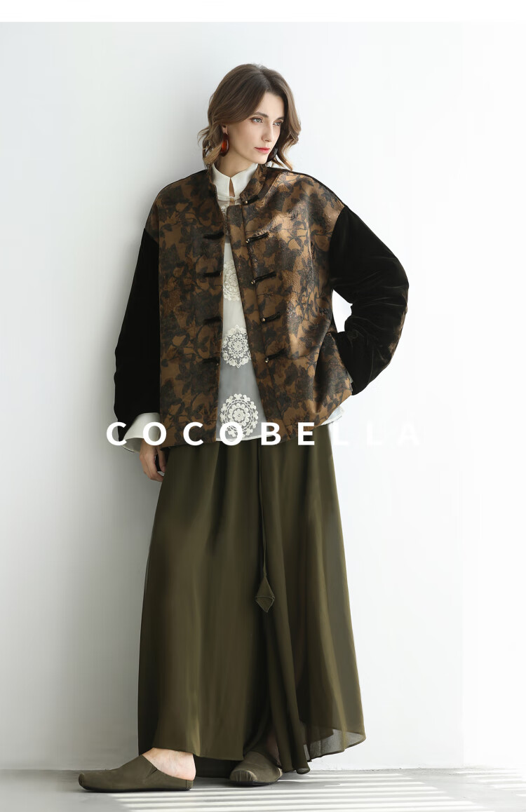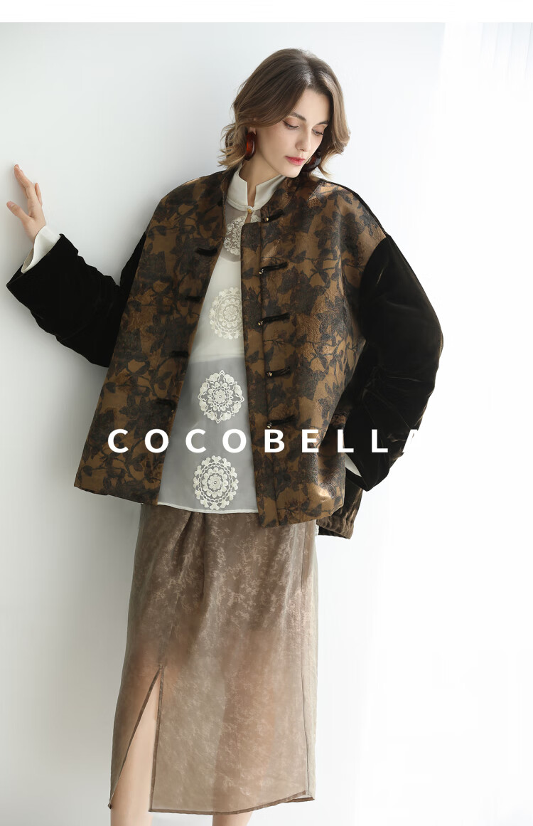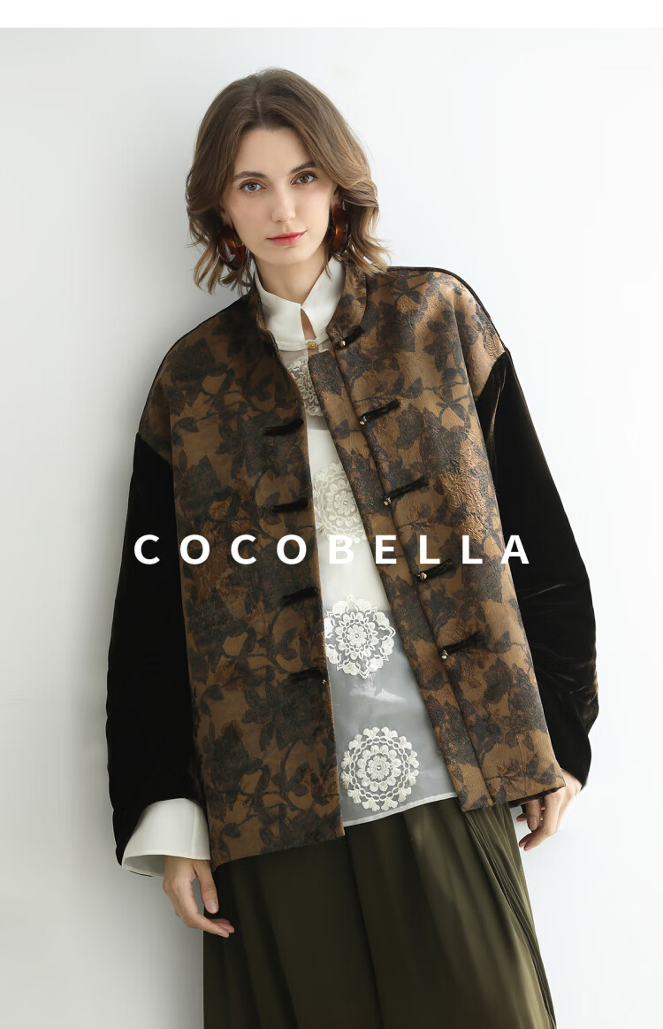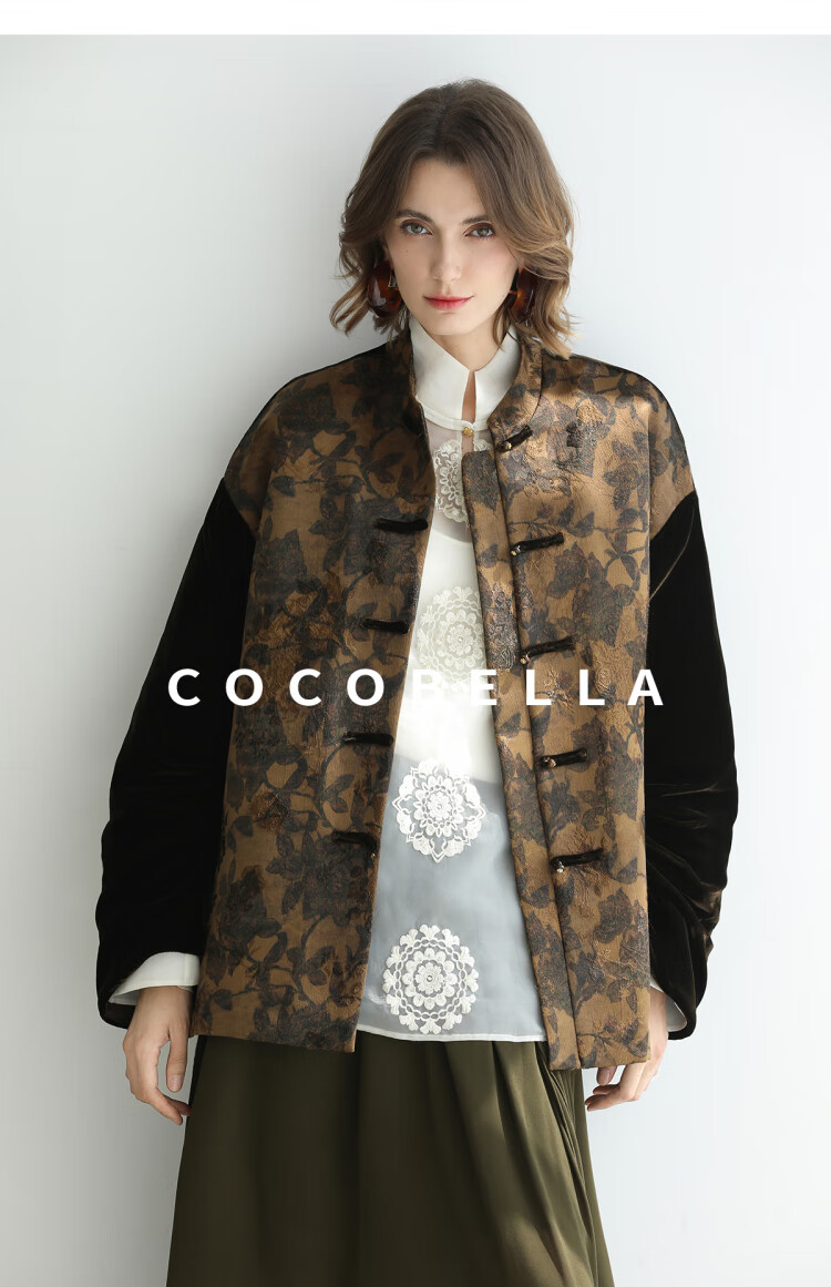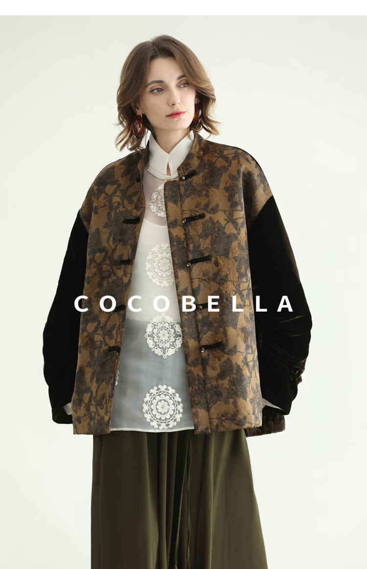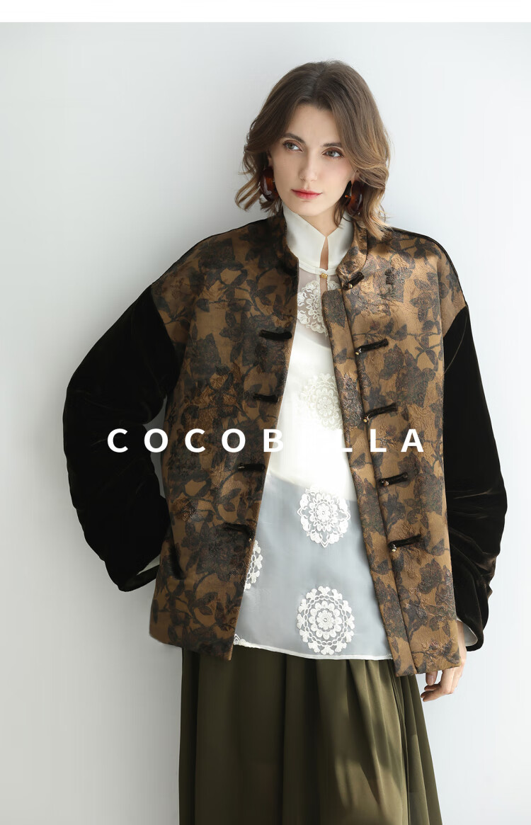 COCOBELLA新中式丹青丝绒棉服女国风保暖提花缎面外套MF3239