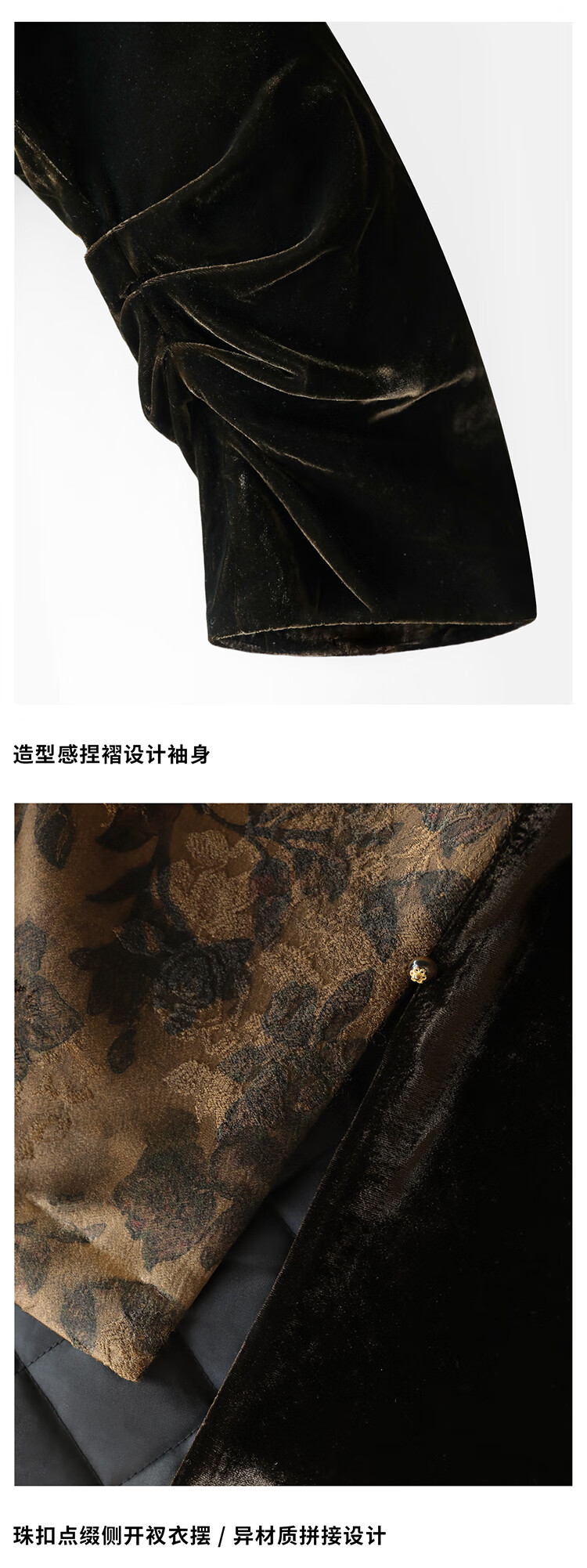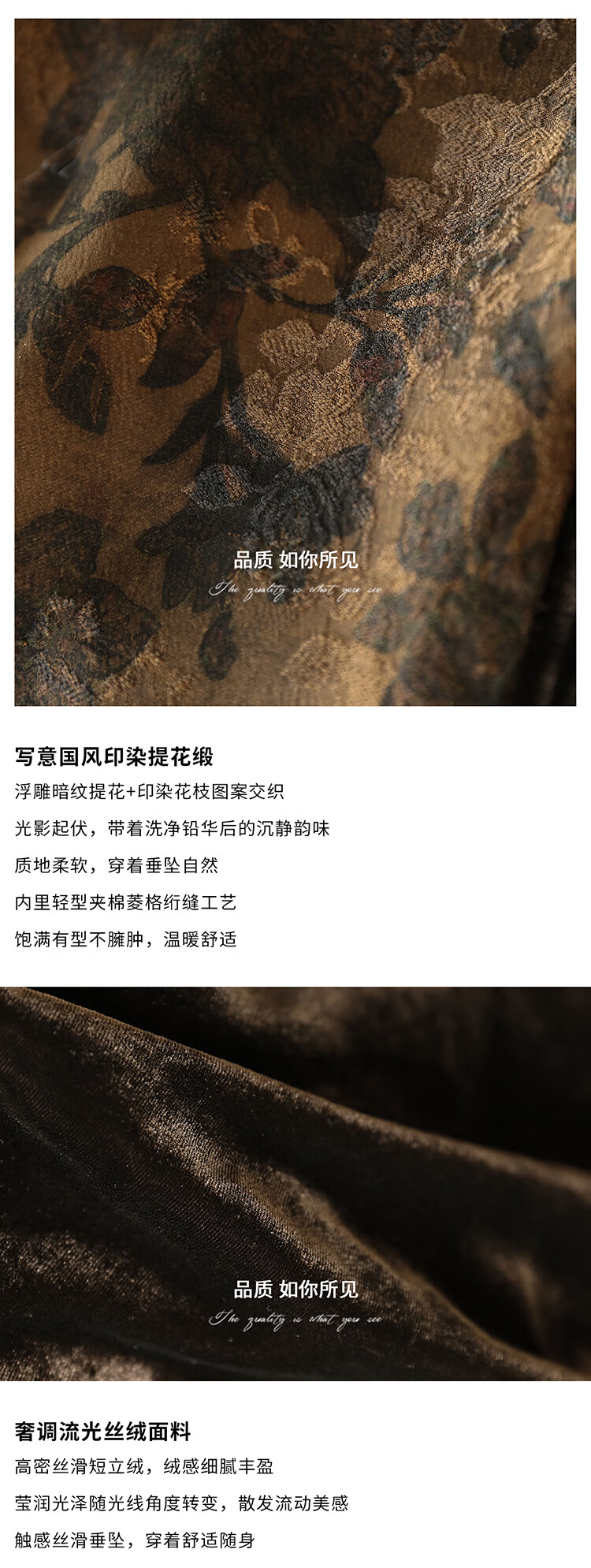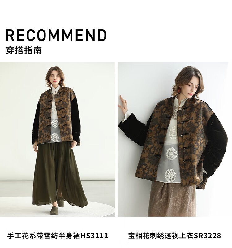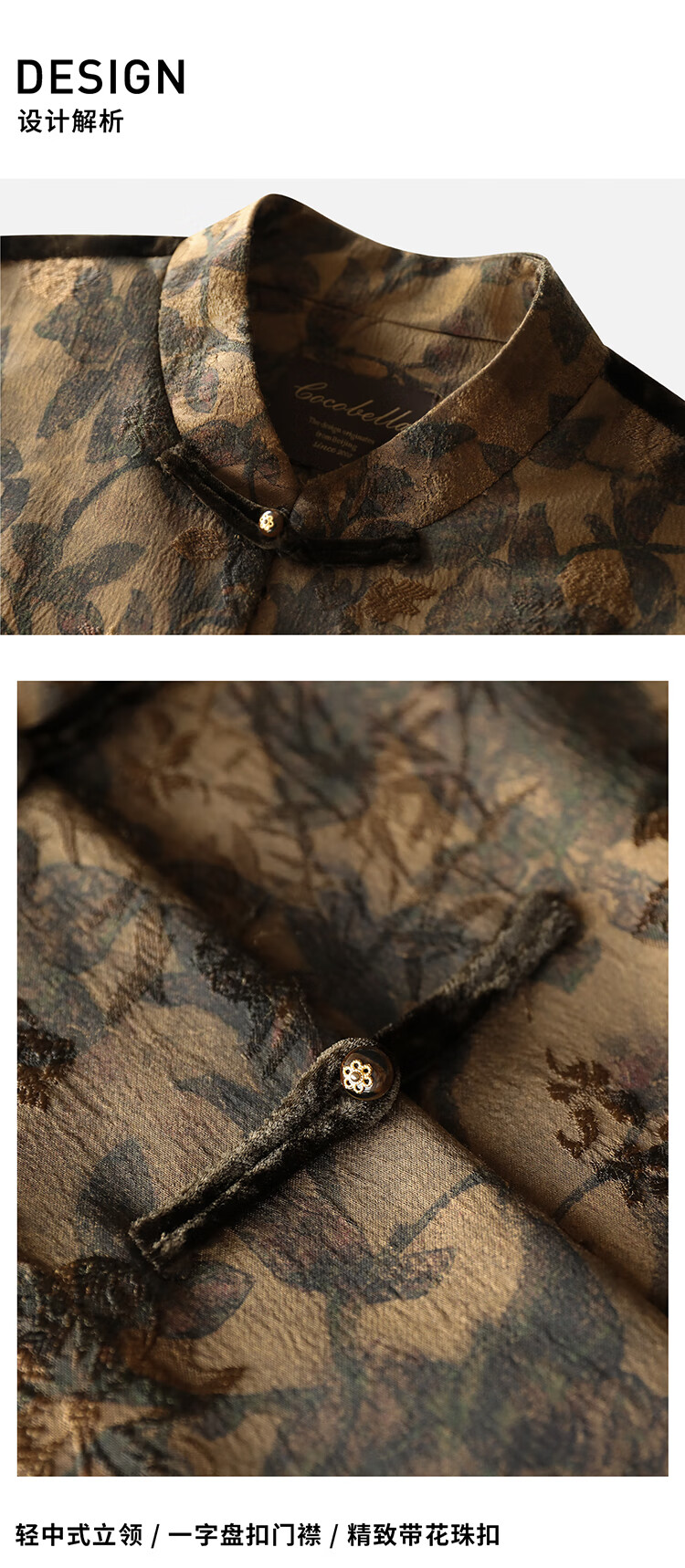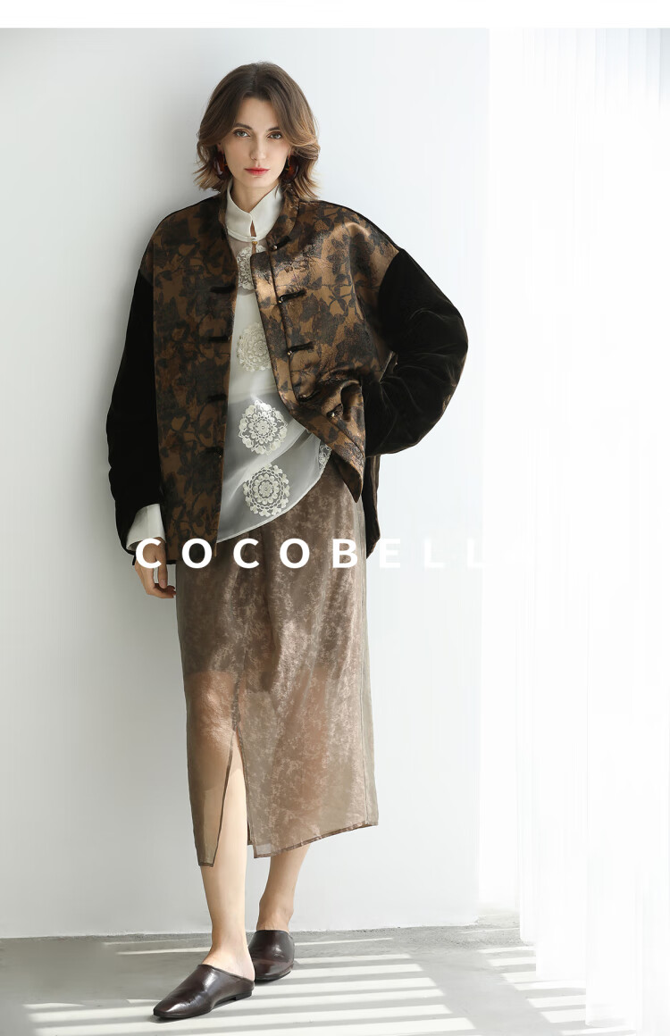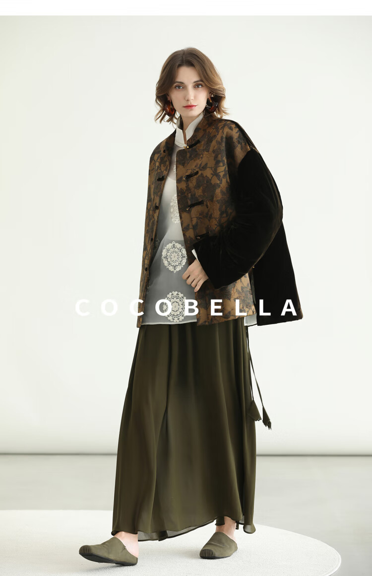 COCOBELLA新中式丹青丝绒棉服女国风保暖提花缎面外套MF3239