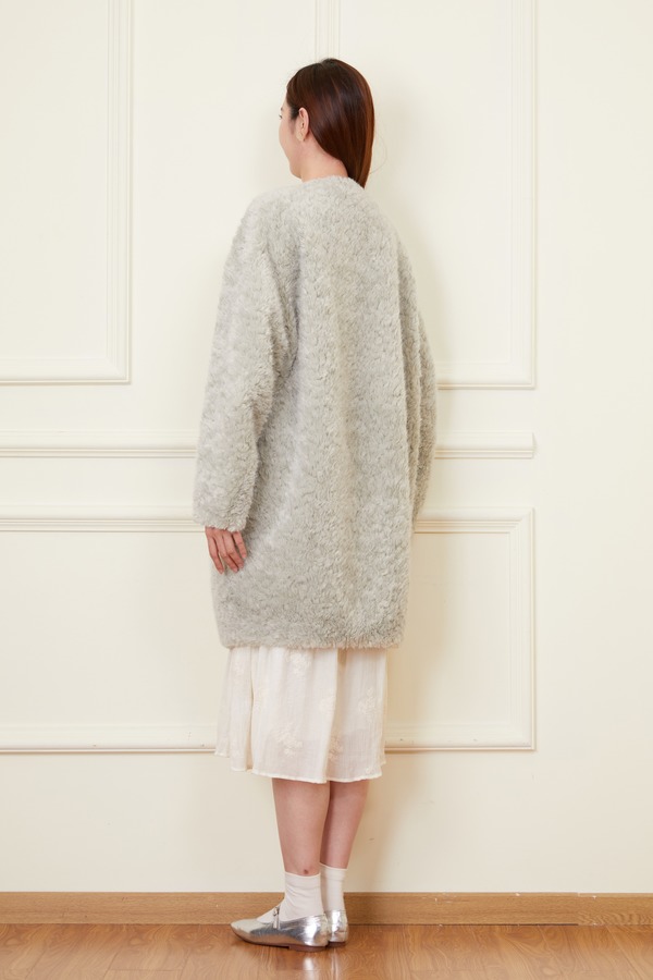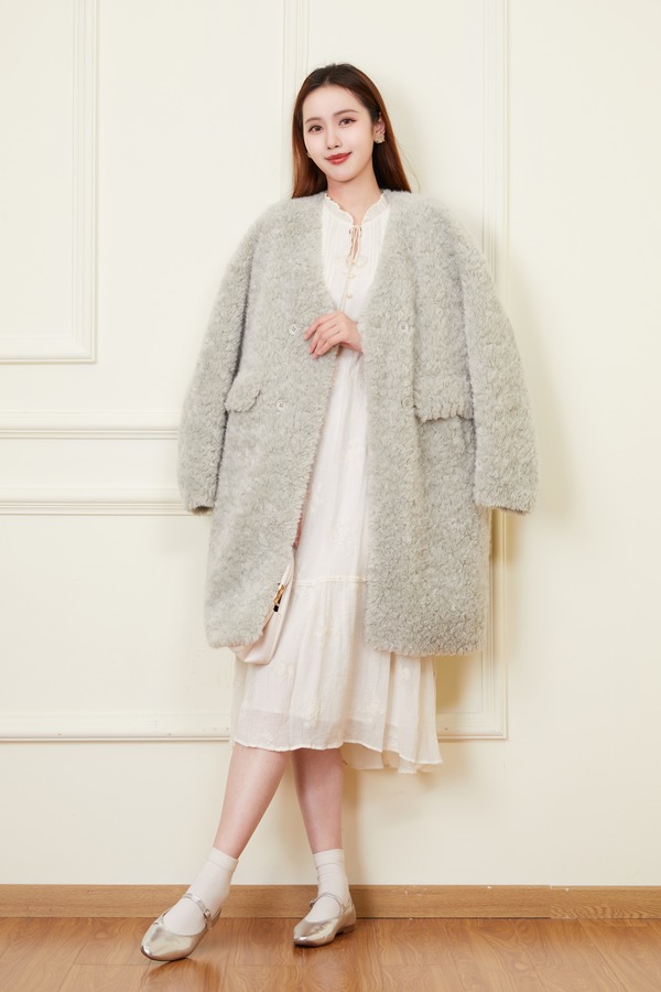 ESTELLICA 知性优雅V领廓形宽松羊羔毛大衣 21125