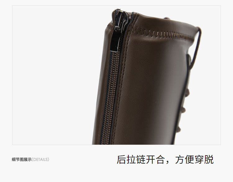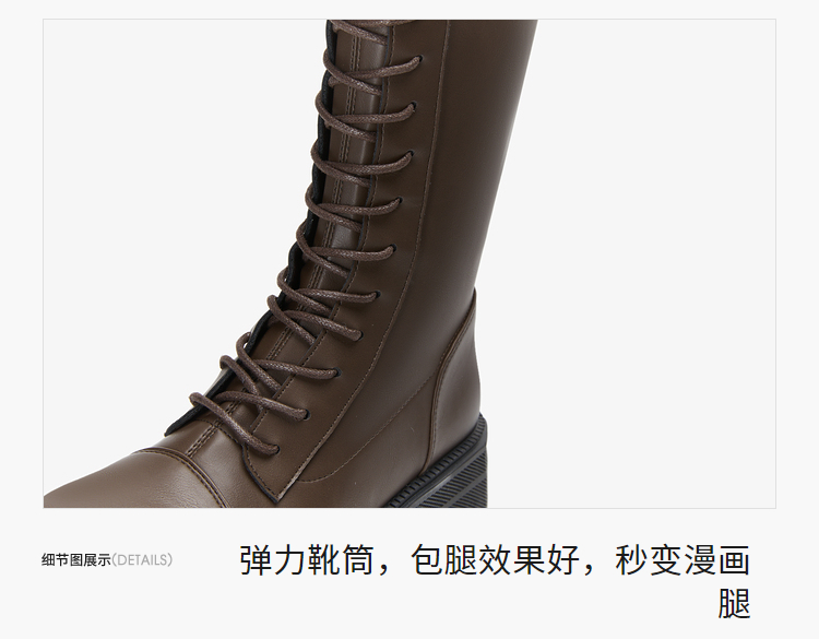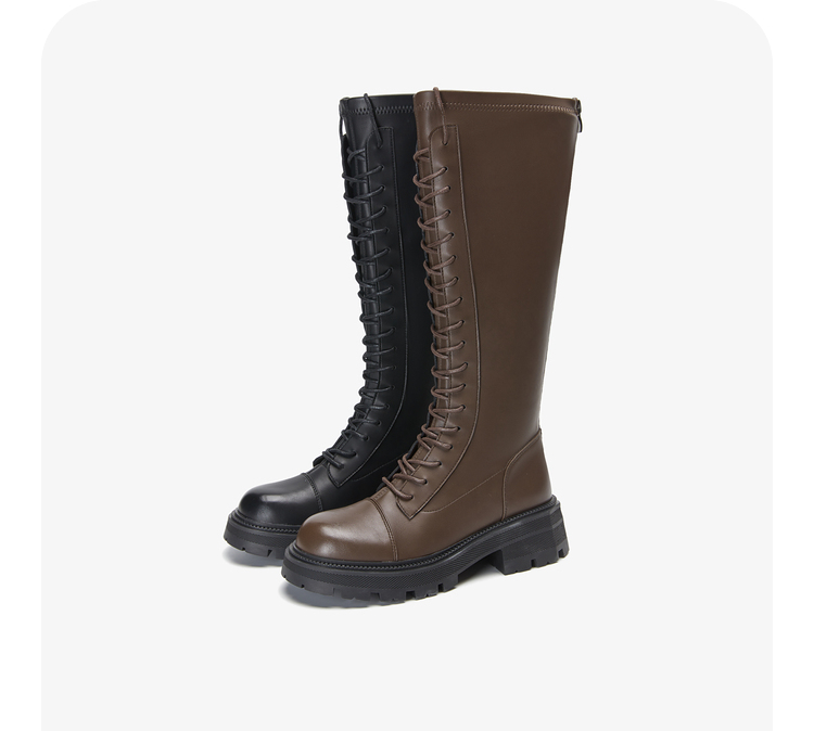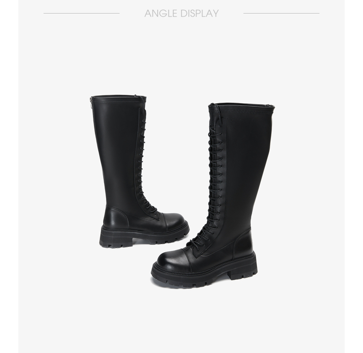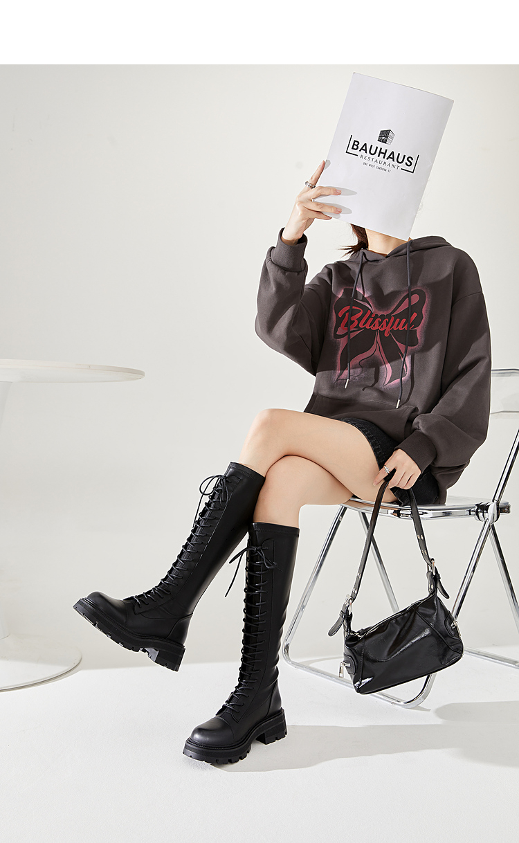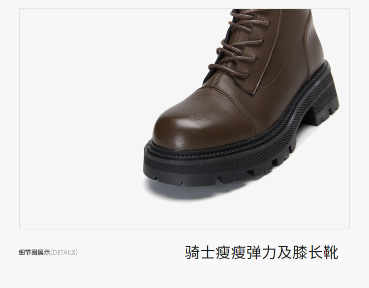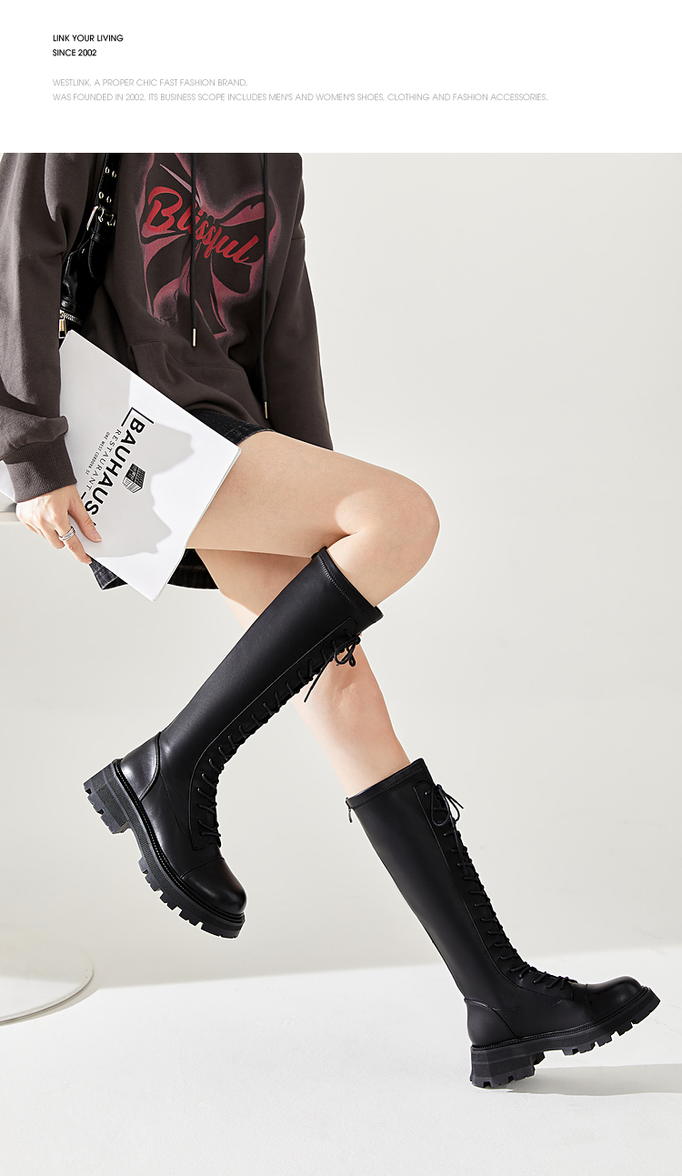 西遇长筒马丁靴女新款秋季骑士弹力瘦瘦靴黑色厚底不过膝长靴21933844