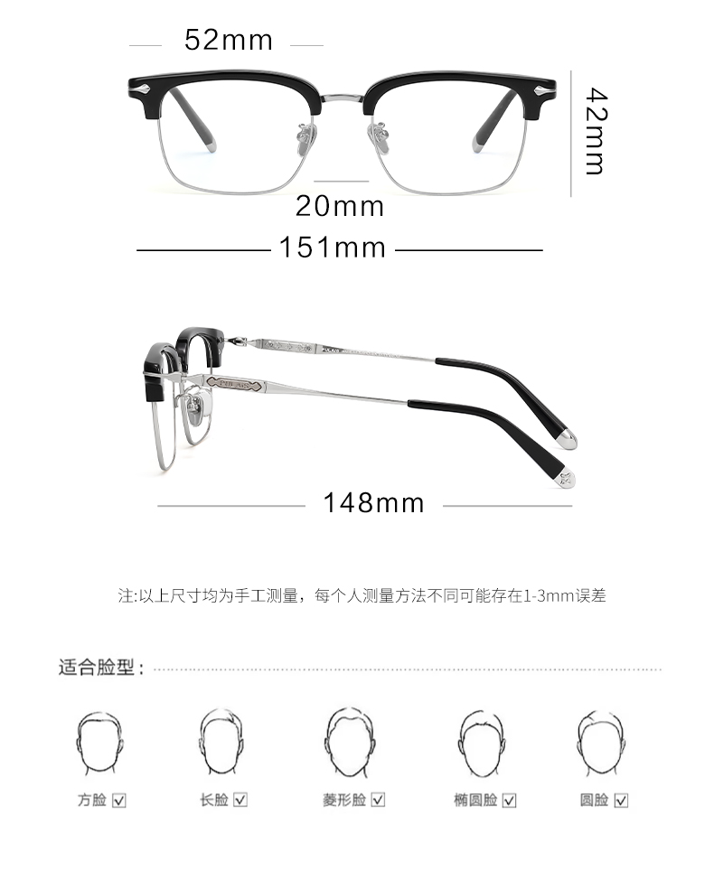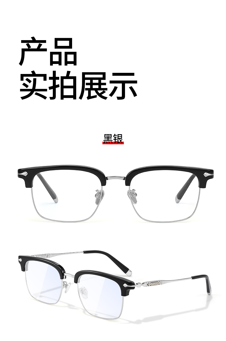 普莱斯光学镜框B8561 经典全框 半钛材质 舒适鼻托 稳固桩头 复古休闲 三色可选