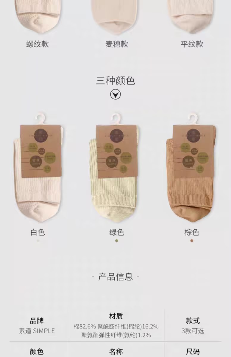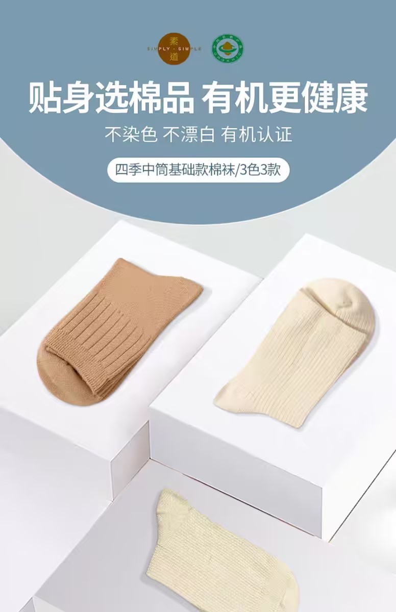 素道基础袜(罗纹)(麦穗)(平纹)天然有机彩棉【京东快递送货上门】