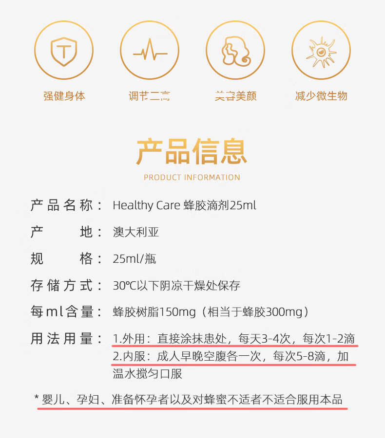 【海豚美购】Healthy Care 蜂胶滴剂(无酒精) 25ml