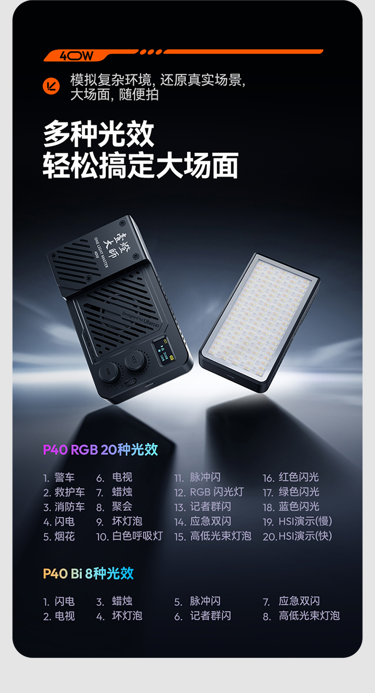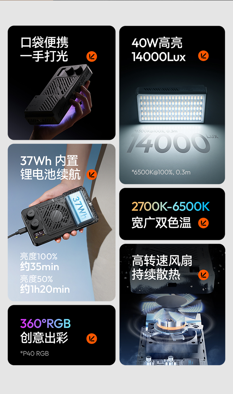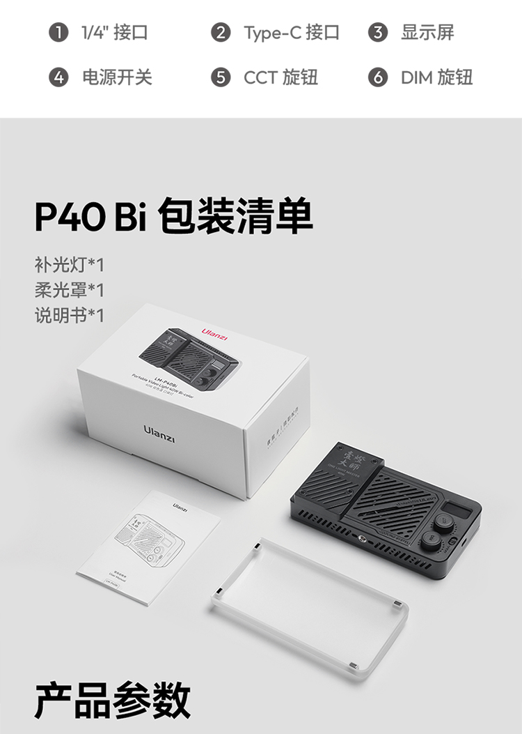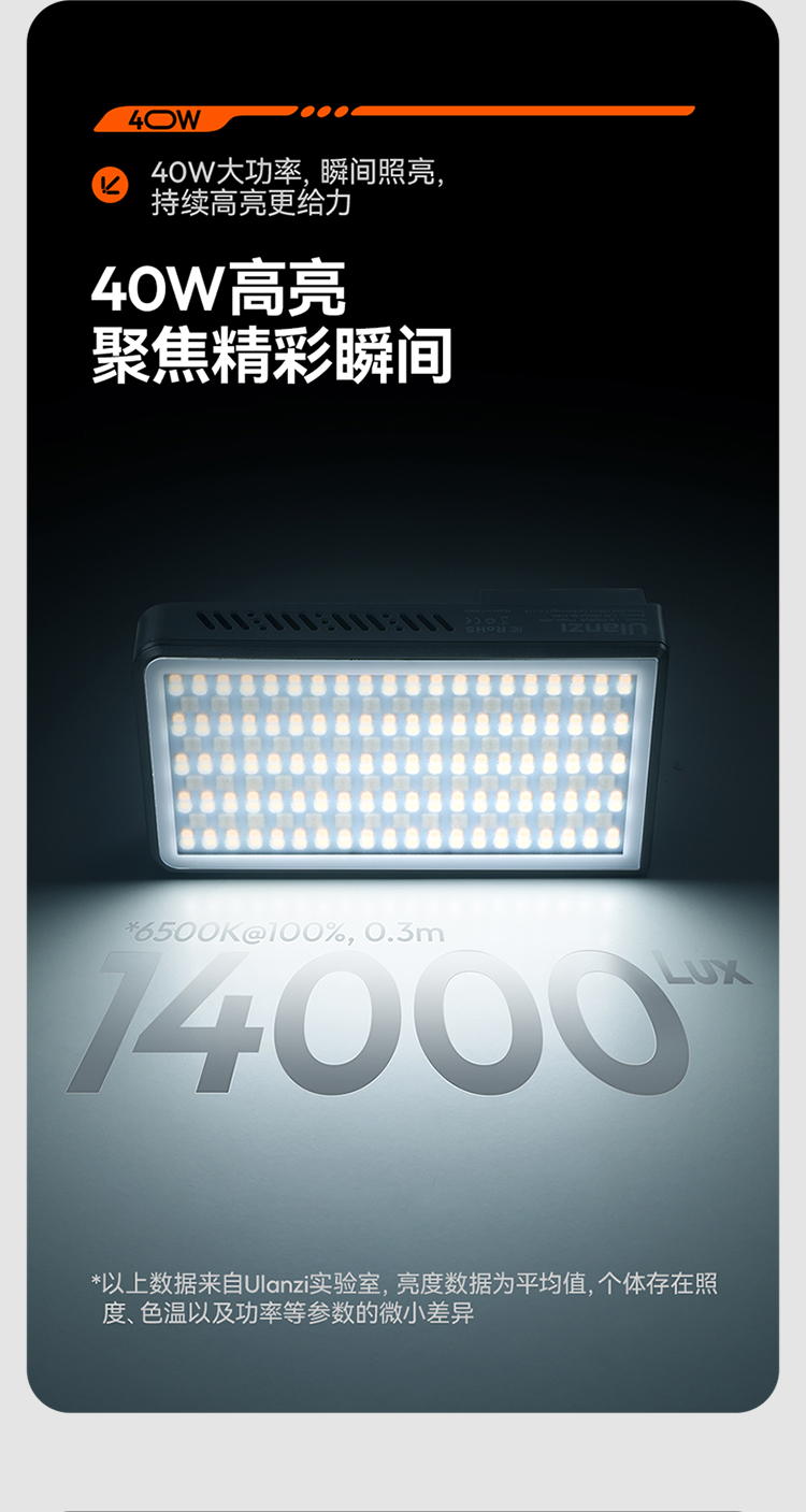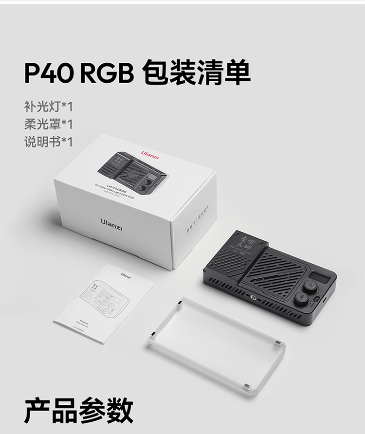 Ulanzi优篮子P40 Bi40w双色温40wRGB全彩内置电口袋灯携式口袋补光灯拍照补光灯直播间打光