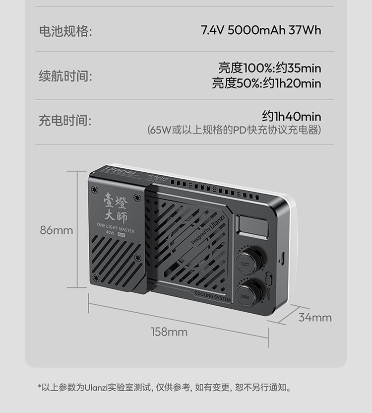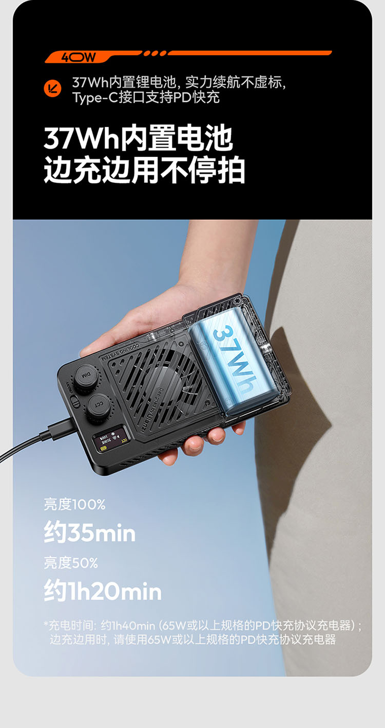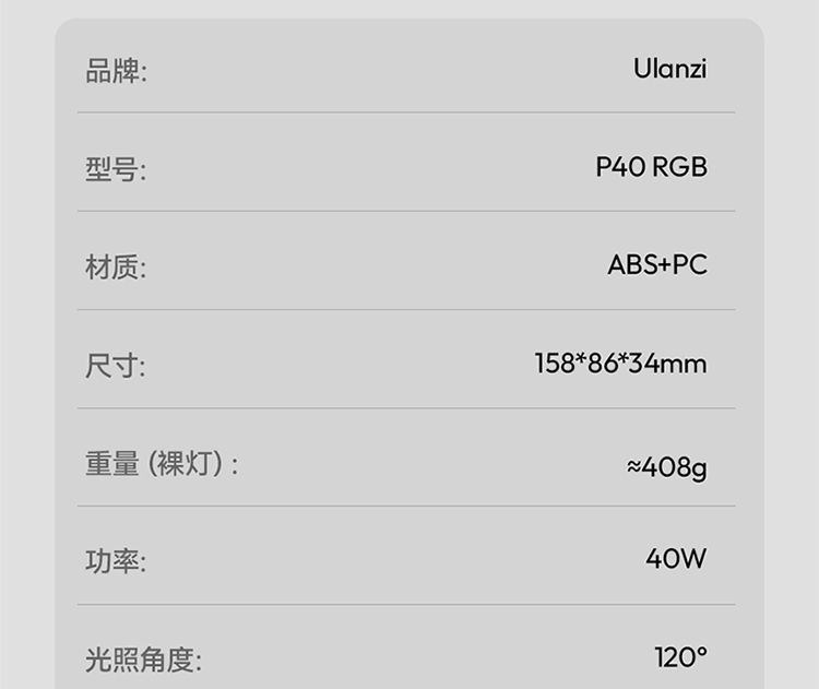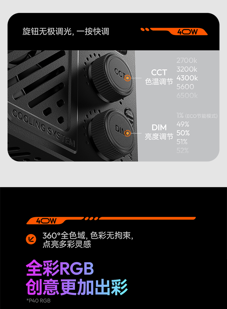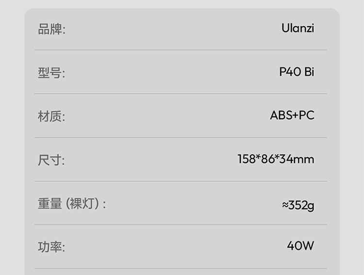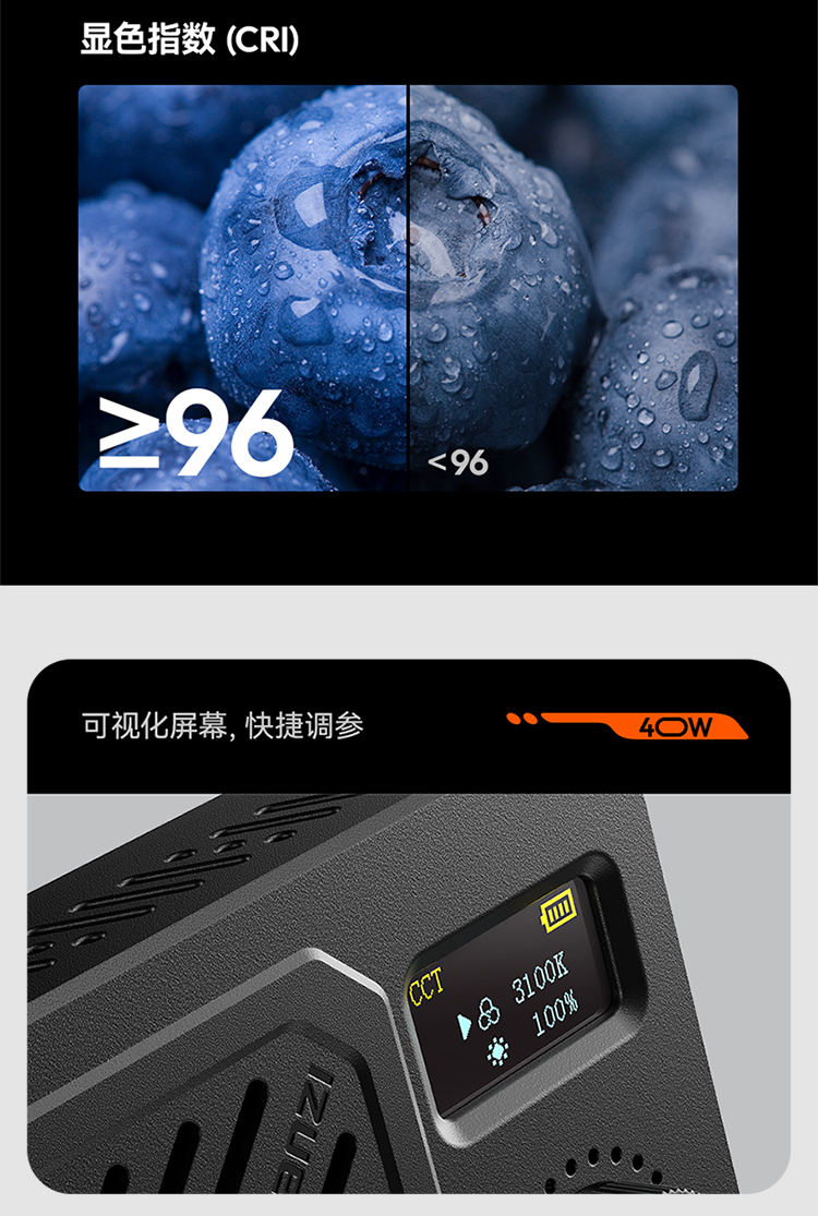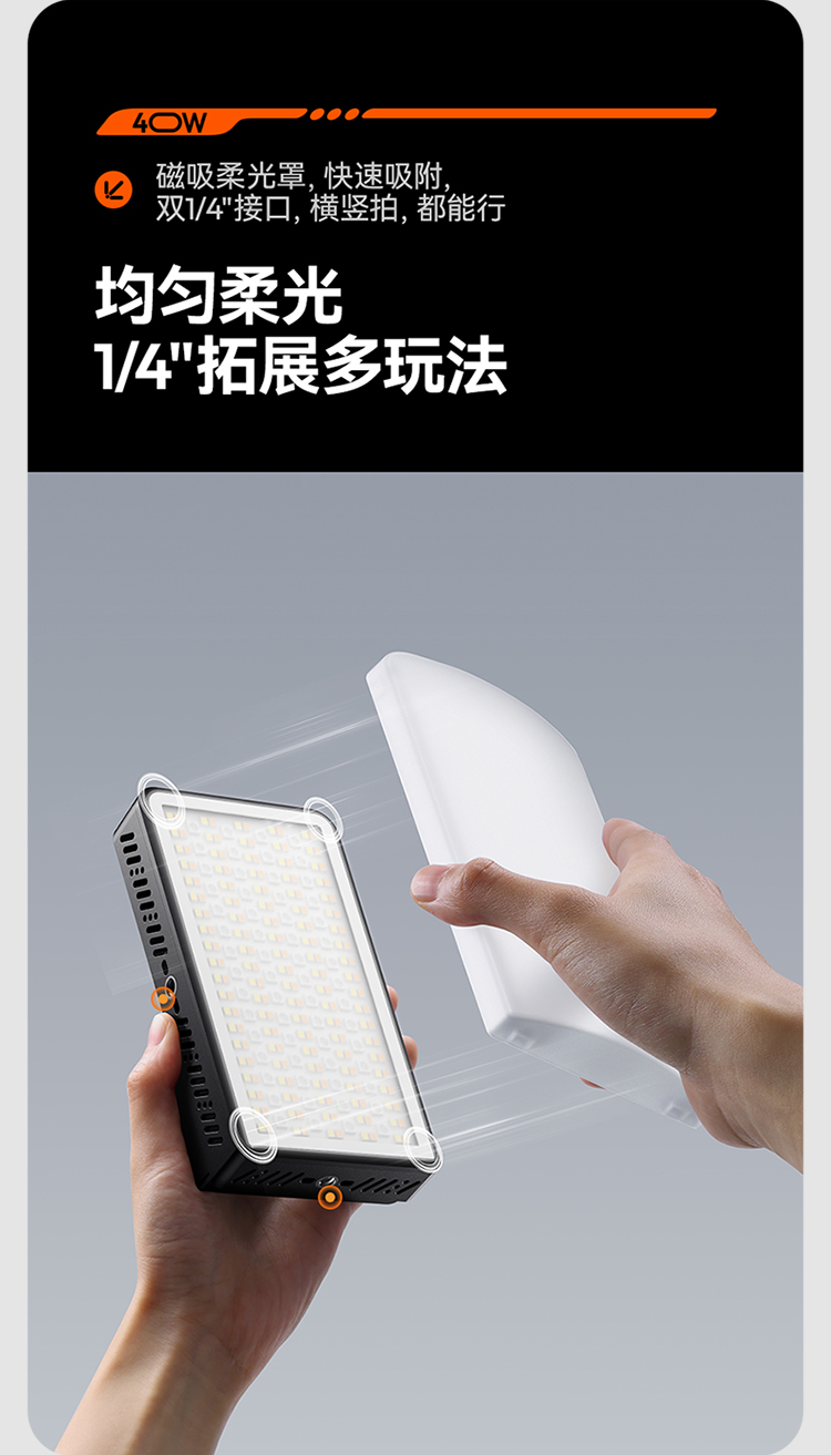 Ulanzi优篮子P40 Bi40w双色温40wRGB全彩内置电口袋灯携式口袋补光灯拍照补光灯直播间打光