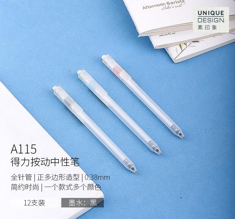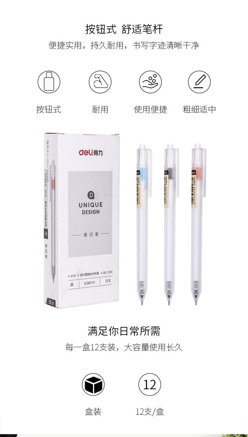 超值10支【笔夹设计!携带方便】得力按动中性笔0.38学生文具用品水笔按动笔刷题笔高颜值黑笔。rb