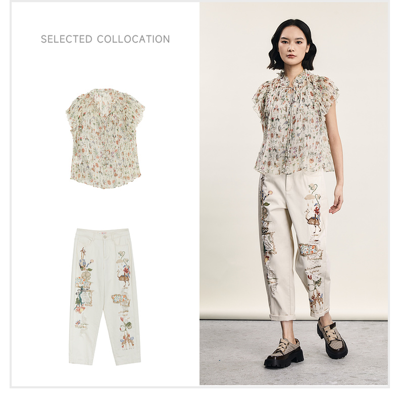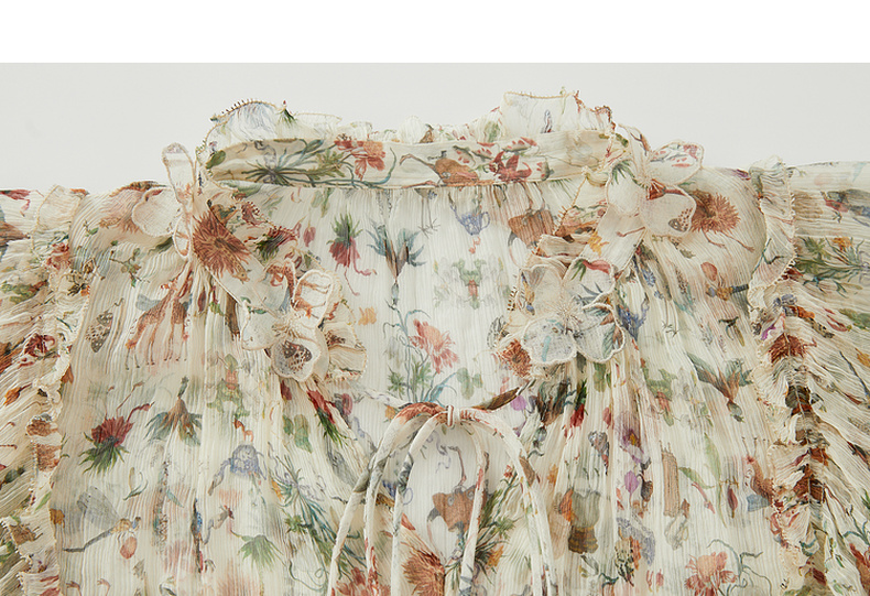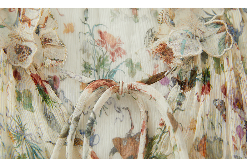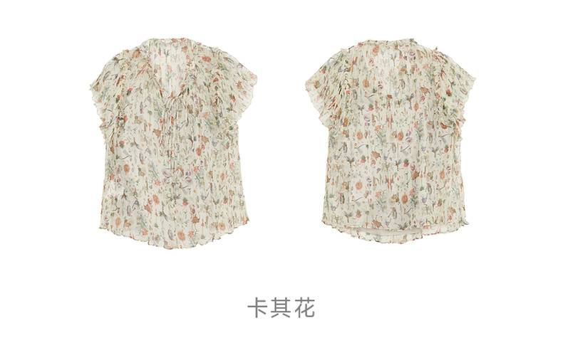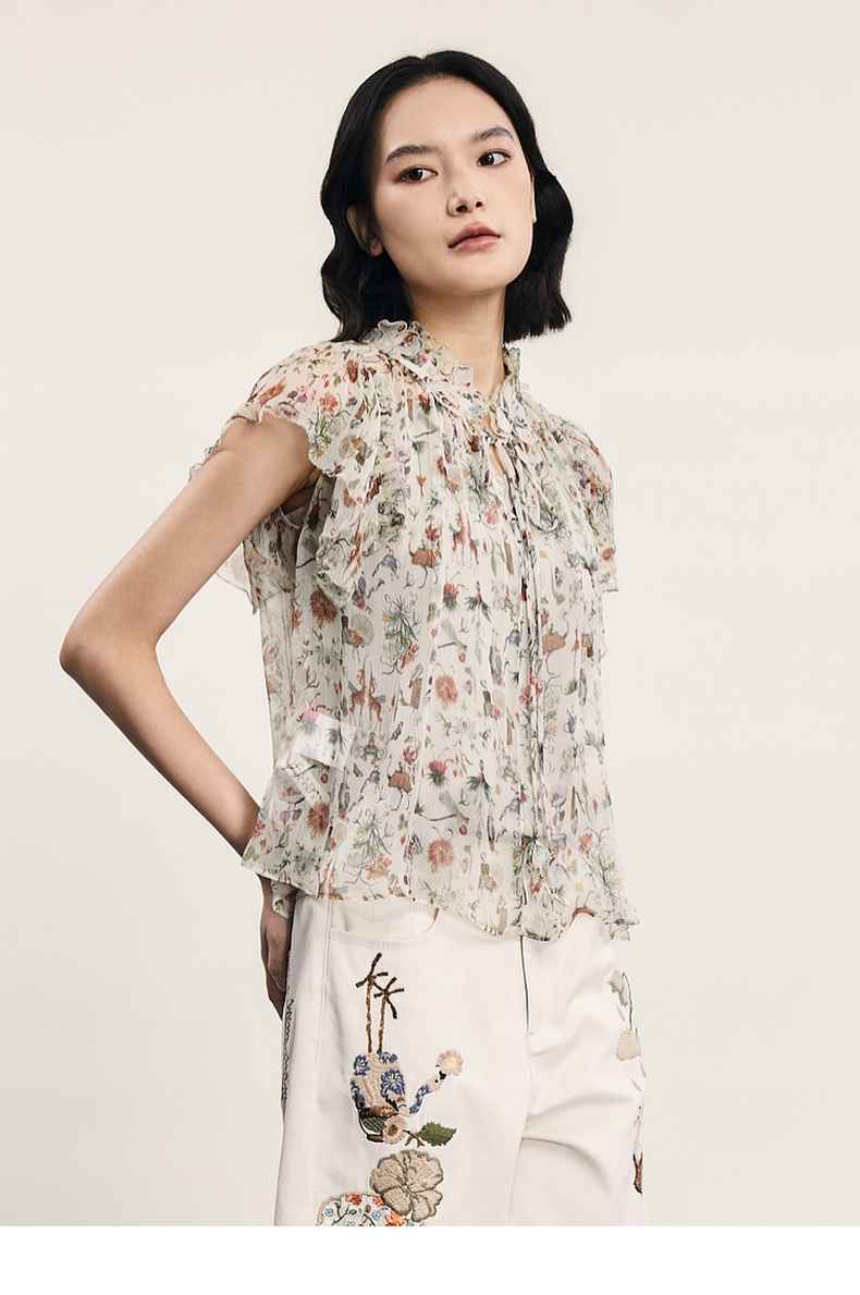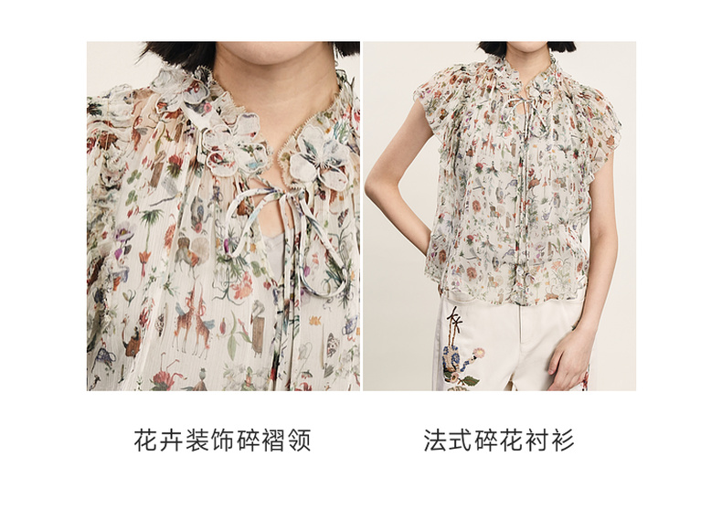 谜底碎花上衣短袖女2024夏季新品复古法式浪漫真丝衬衫242GS0607