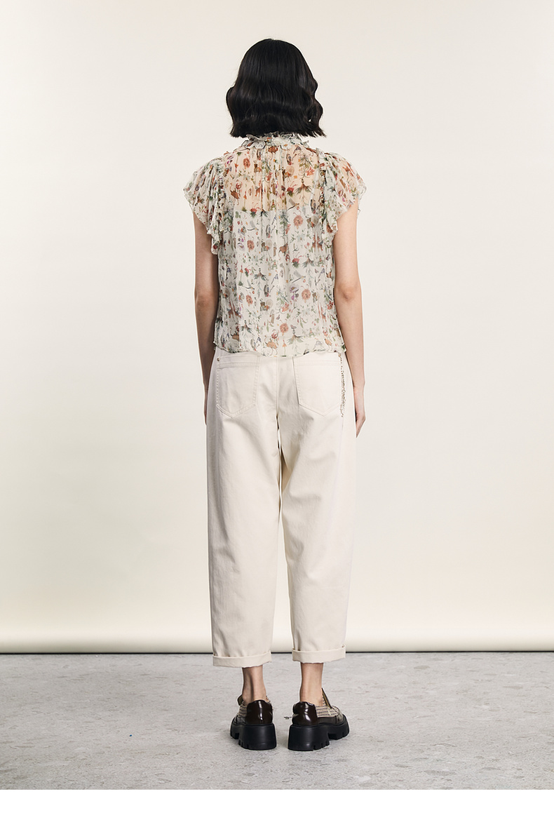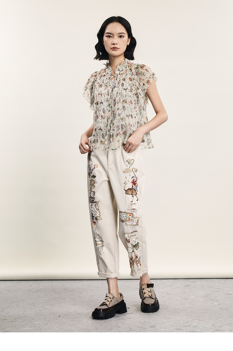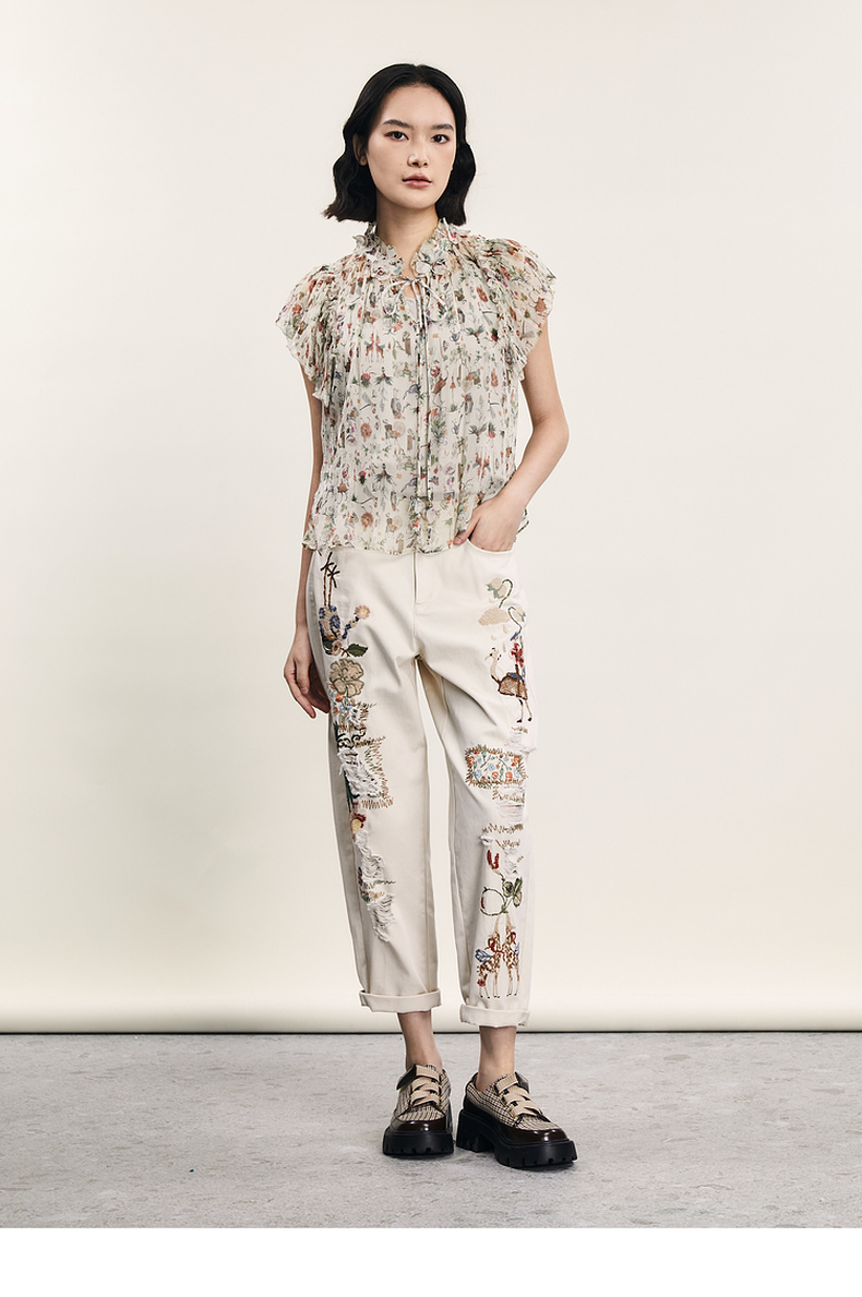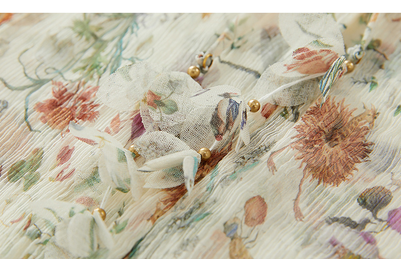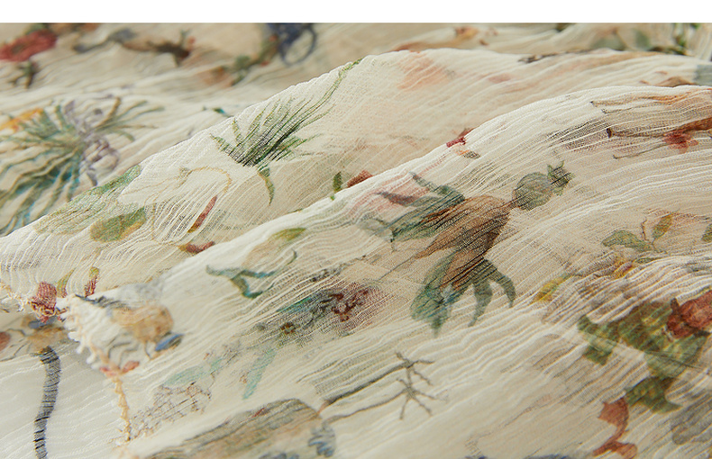 谜底碎花上衣短袖女2024夏季新品复古法式浪漫真丝衬衫242GS0607