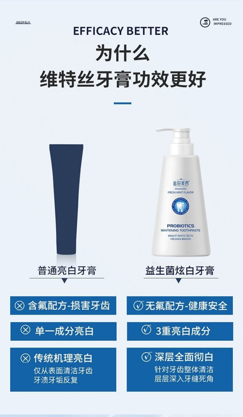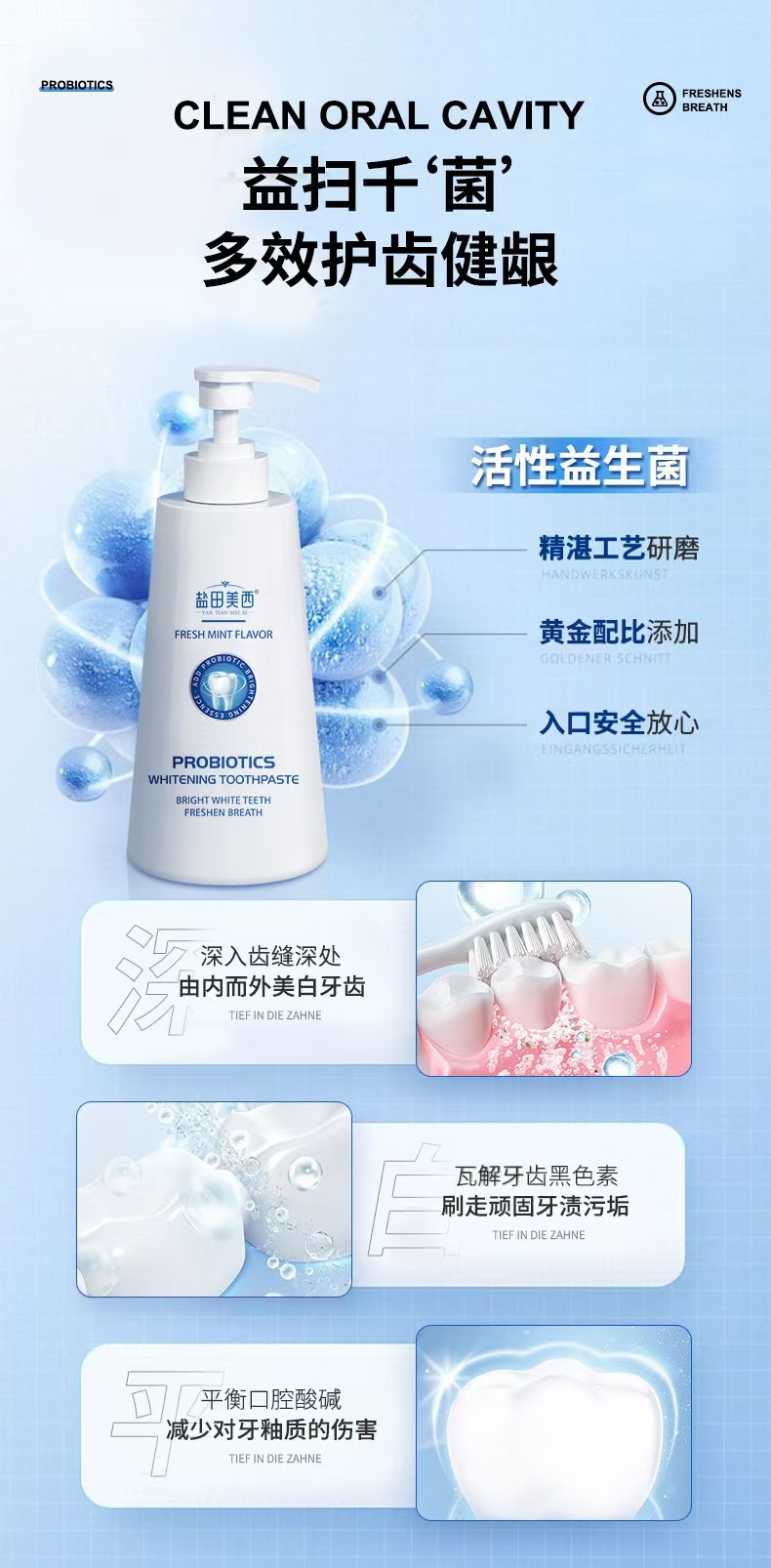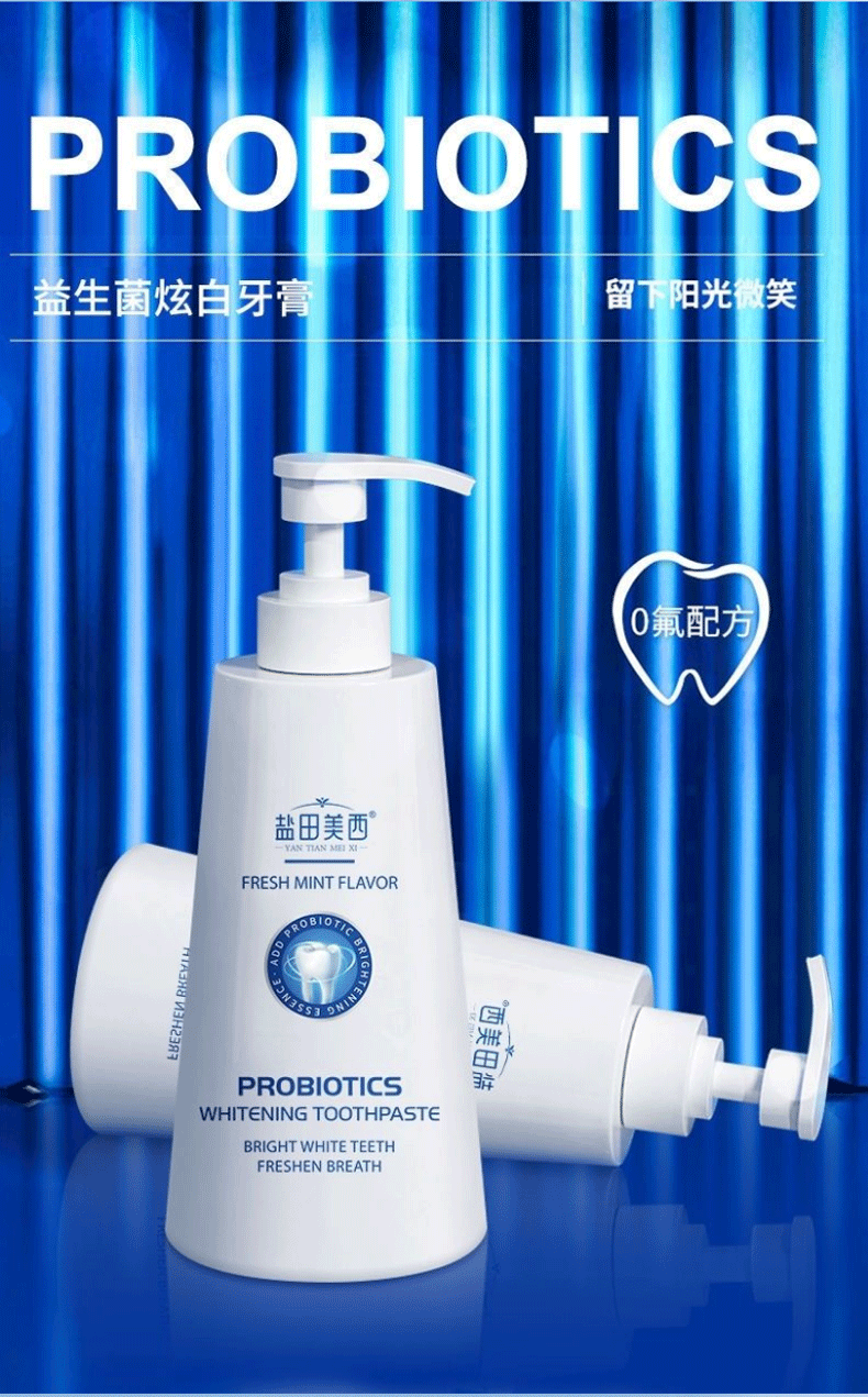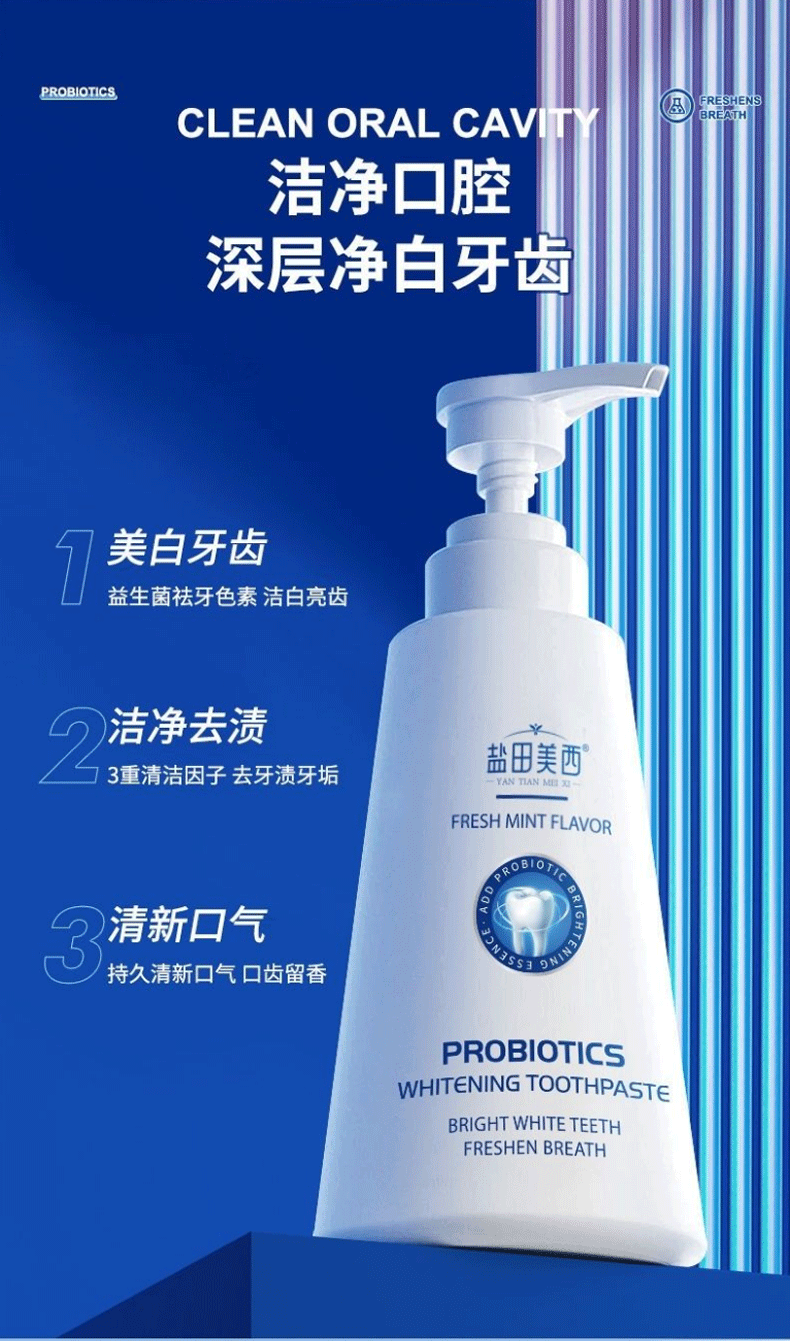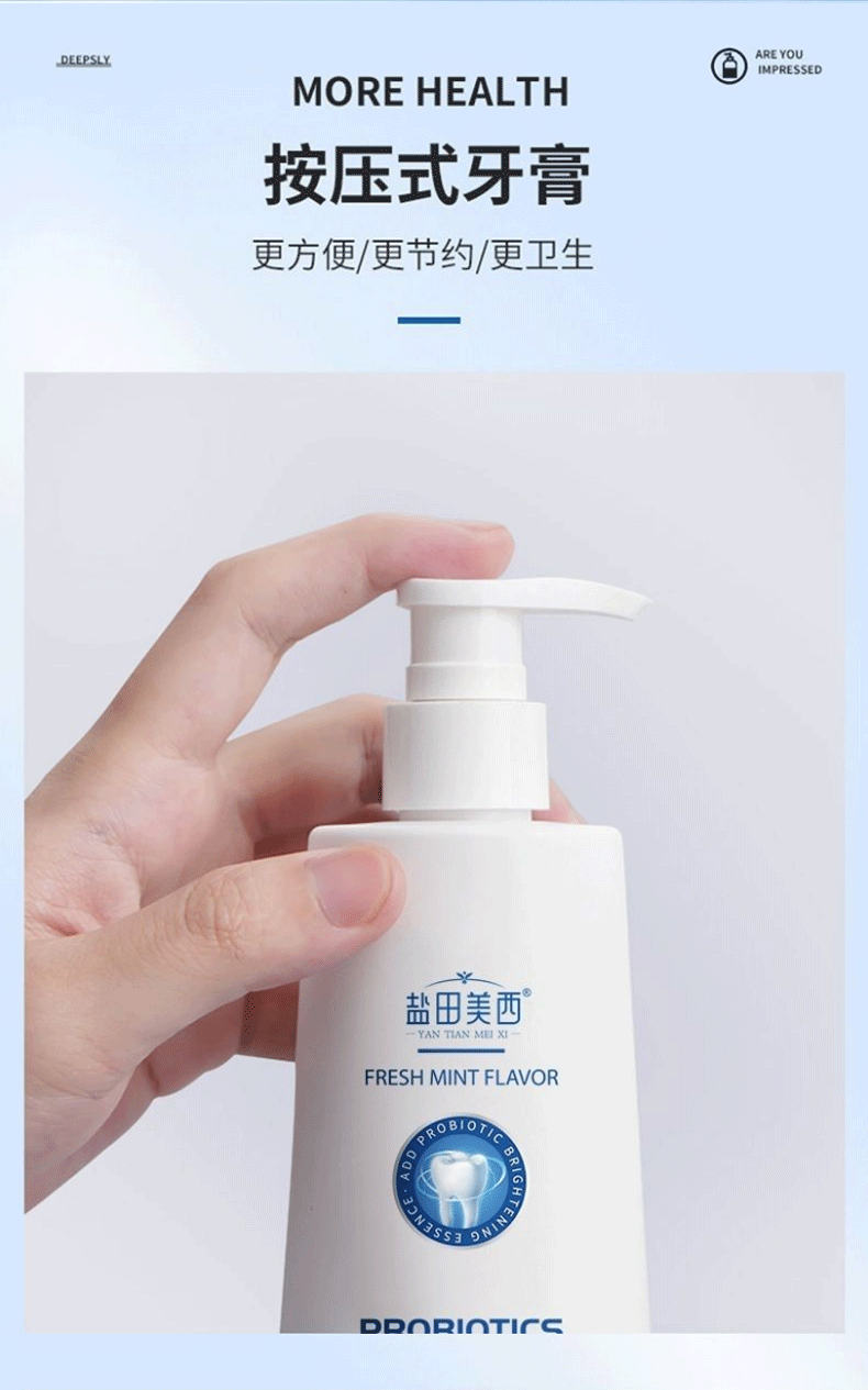 牙膏 益生菌美白去牙渍牙膏清新防臭深层清洁亮白按压式牙膏
