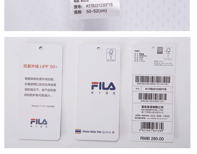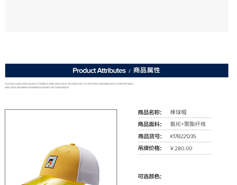 小斐乐儿童遮阳帽2022夏季新款男童女童时尚休闲棒球帽K17B221235F