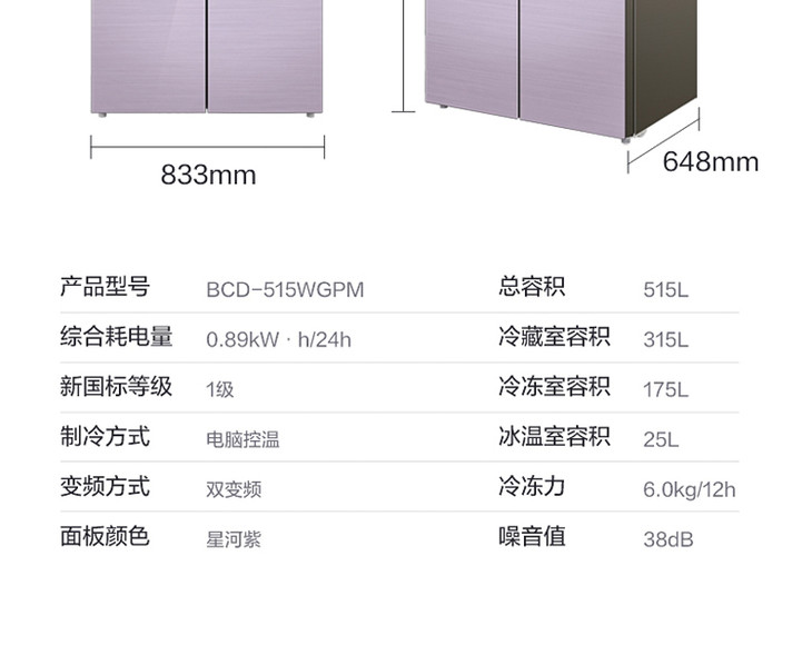 美的(Midea)BCD-515WGPM四门 515立升冰箱