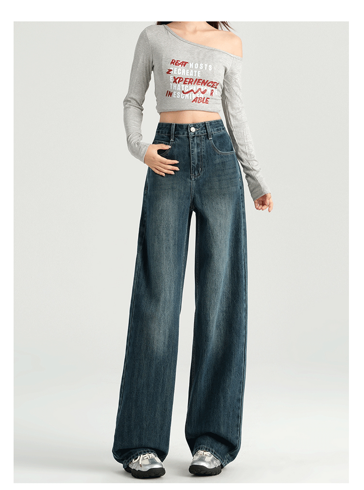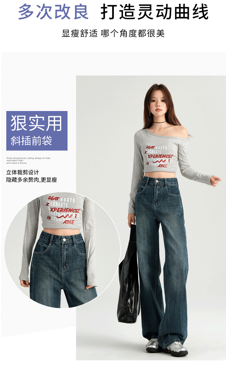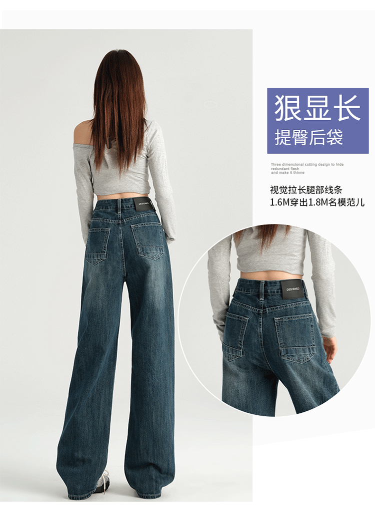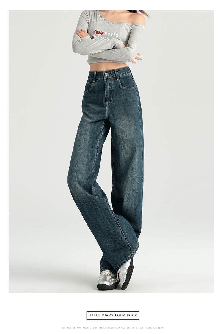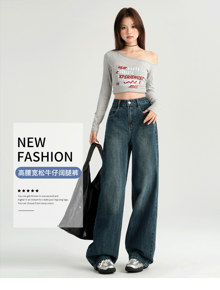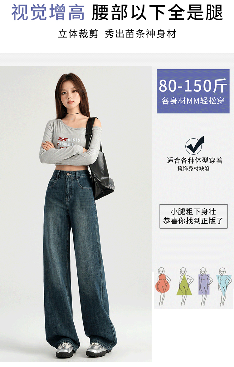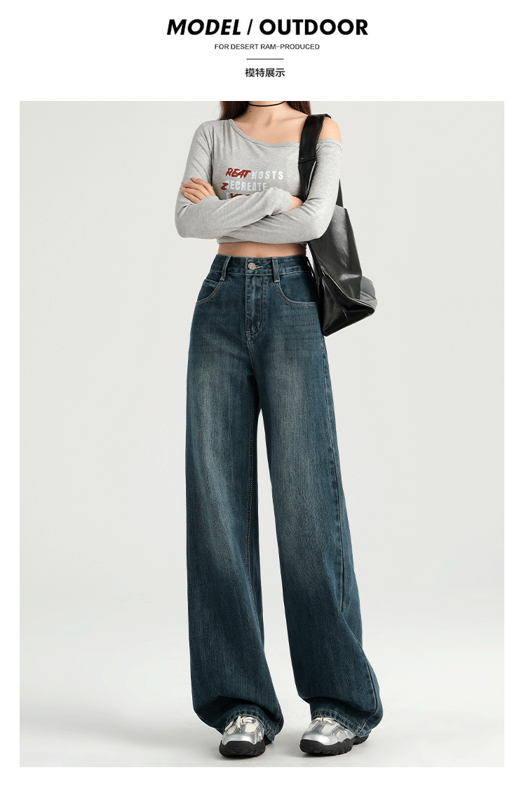 罗蒙四季女士牛仔裤百搭宽松阔腿裤休闲舒适通勤显瘦直筒裤子女