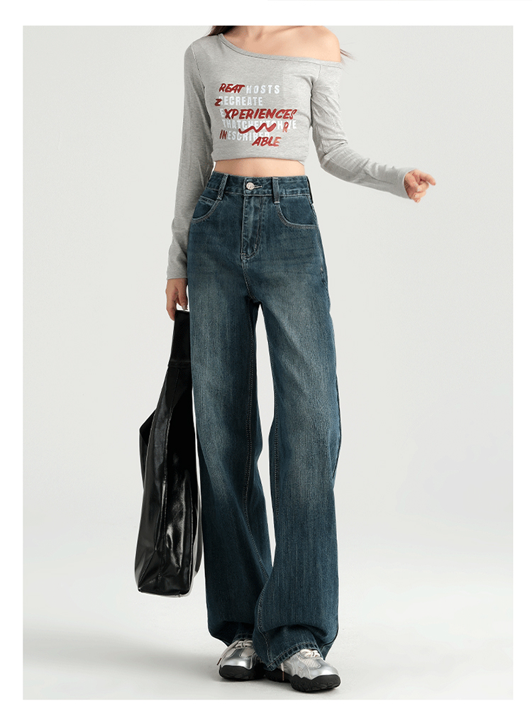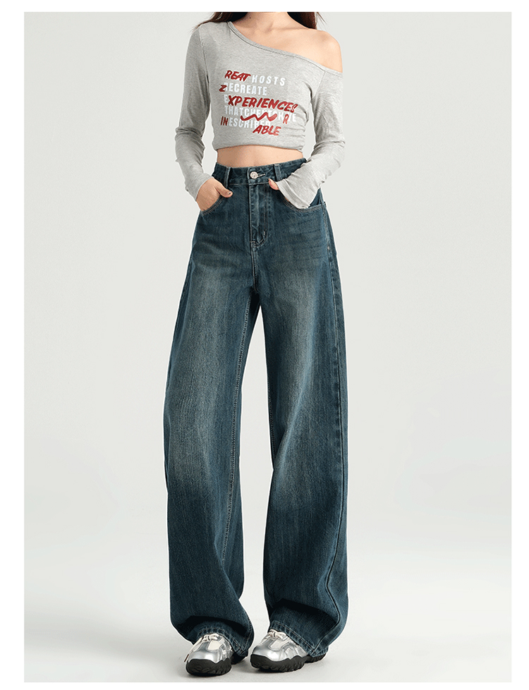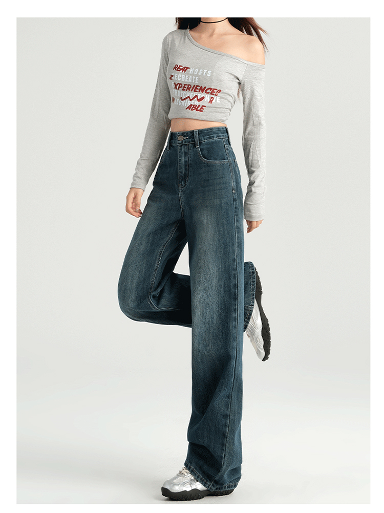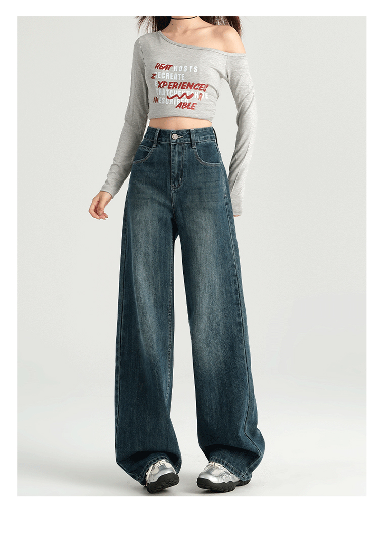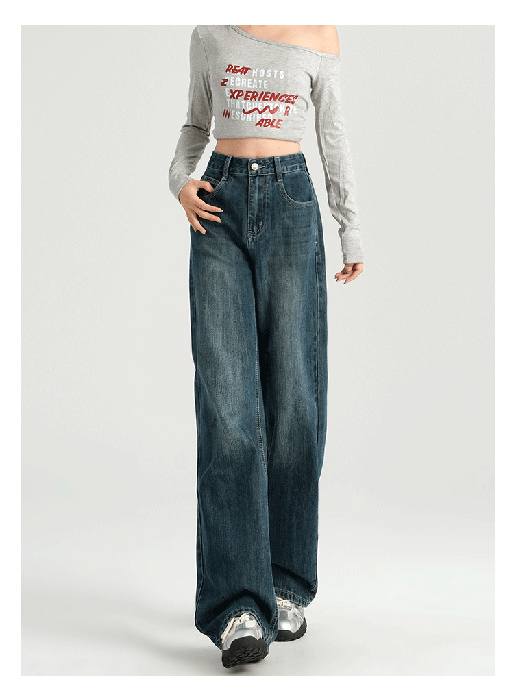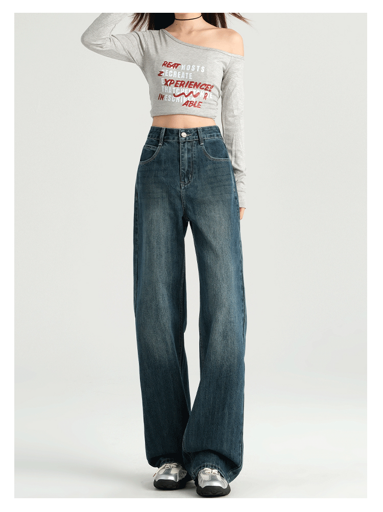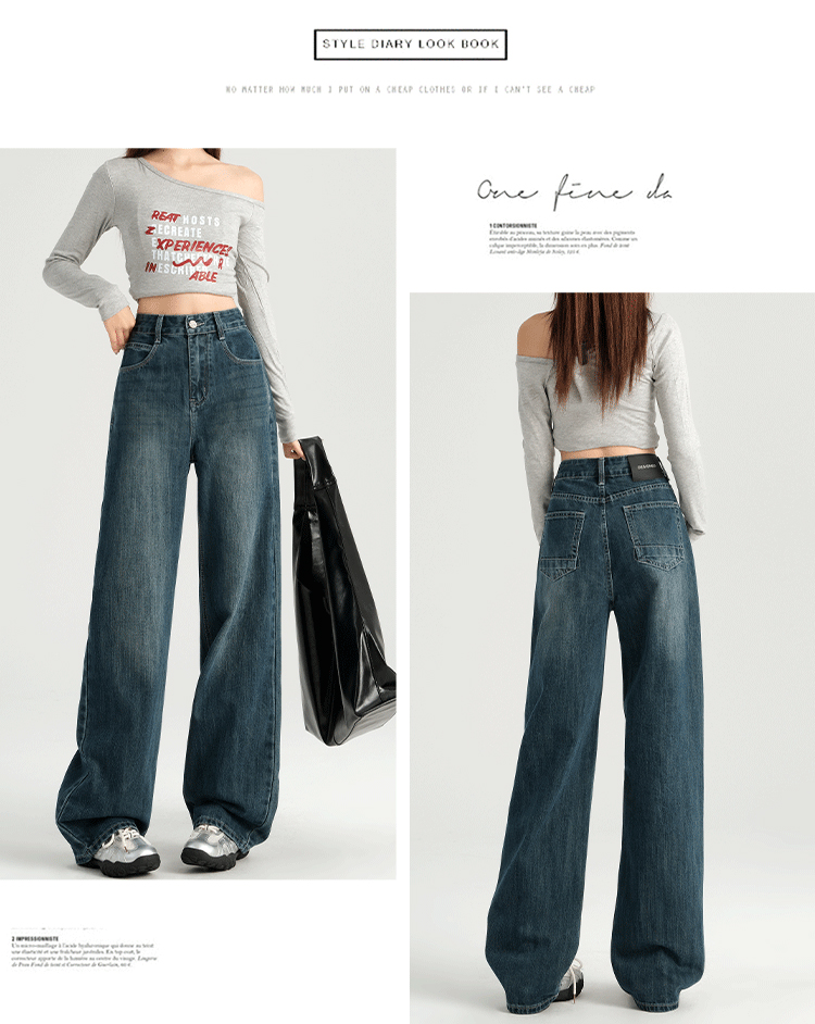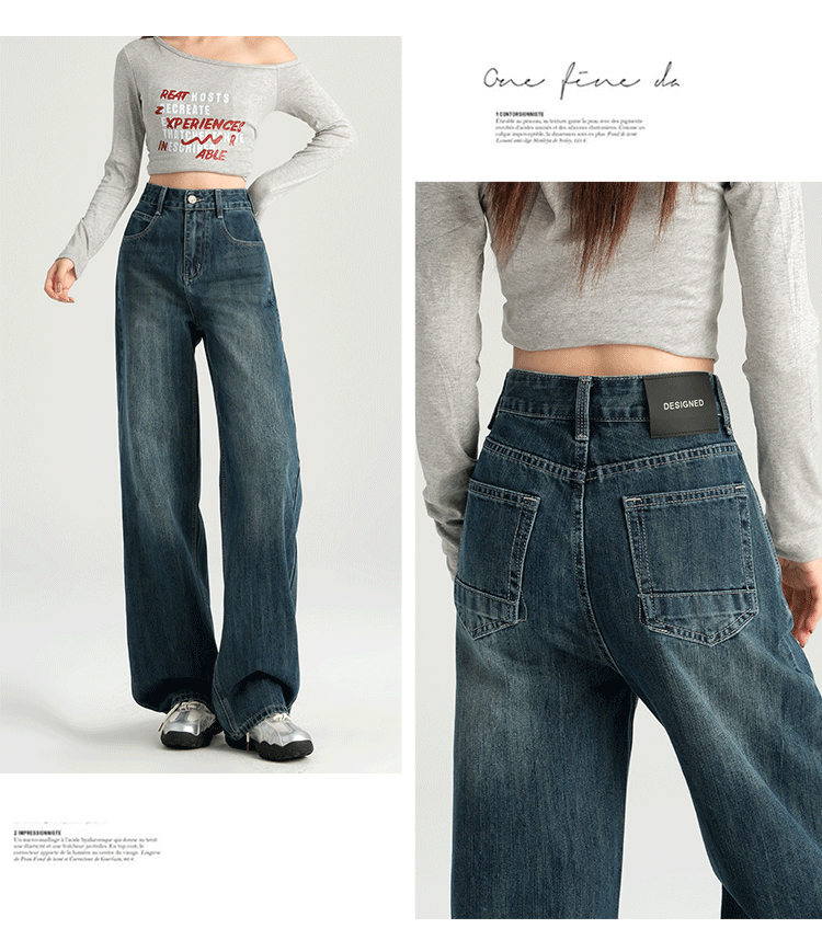 罗蒙四季女士牛仔裤百搭宽松阔腿裤休闲舒适通勤显瘦直筒裤子女