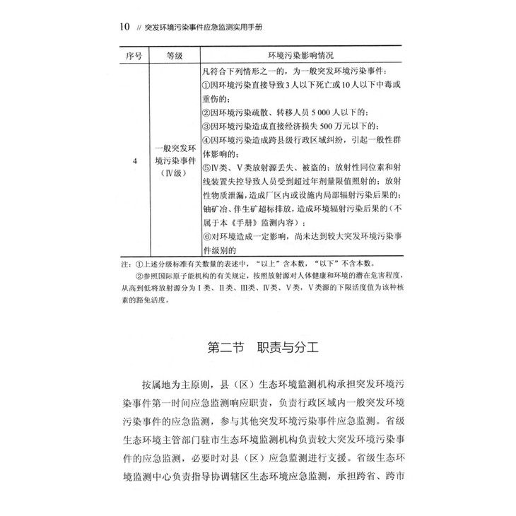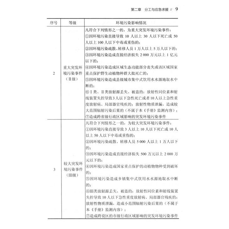《突发环境污染事件应急监测实用手册》正文共分七章。第一章概述了应急监测的含义、作用、工作程序等,通过流程图和文字说明的形式,介绍应急监测的主要程序;第二章介绍了应急监测人员的职责与分工,以及在人员不足的情况下应急支援与求助的一般原则;第三章详细介绍了突发性环境污染事件应急监测方案编制方法,包括监测项目、监测频次、监测方法、监测布点、评价标准及质量保证与质量控制等内容;第四章介绍了样品采集、样品管理及样品分析的相关内容;第五章介绍了应急监测报告的编写内容;第六章简要介绍了应急监测终止条件及程序、应急监测总结报告编写、资料归档等内容;第七章简要介绍了应急监测安全与防护知识。附录部分主要为方案模板与报告格式、典型特征污染物应急处置工艺、典型案例等内容。