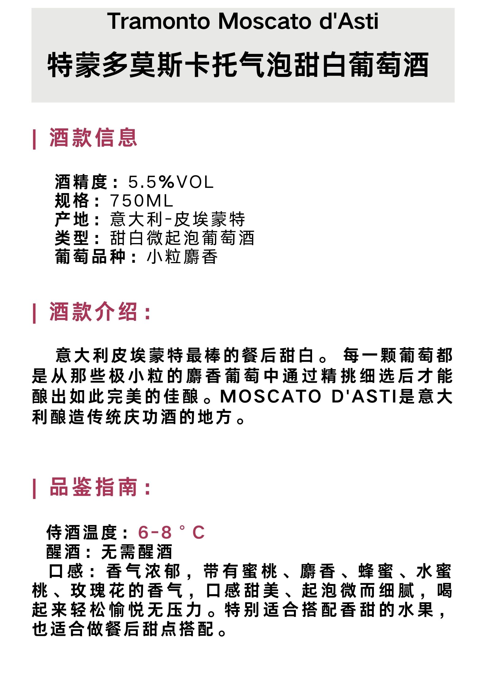 特蒙多莫斯卡托气泡甜白葡萄酒 Tramonto Moscato d'Asti