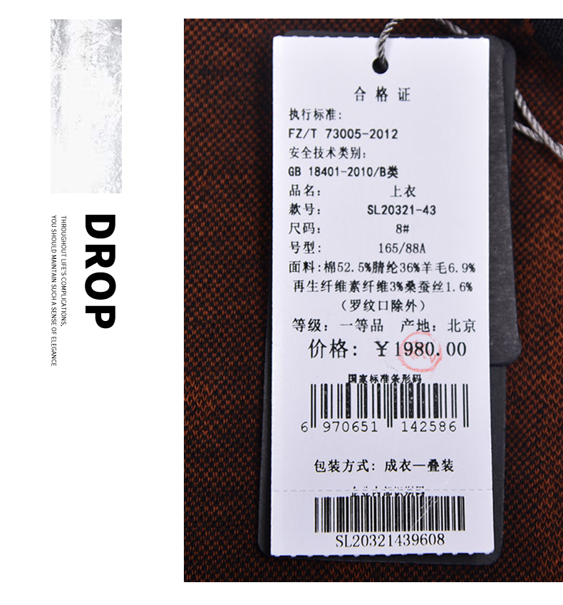 圣三利女装 简约休闲双色提花罗纹领针织套头衫SL2032143