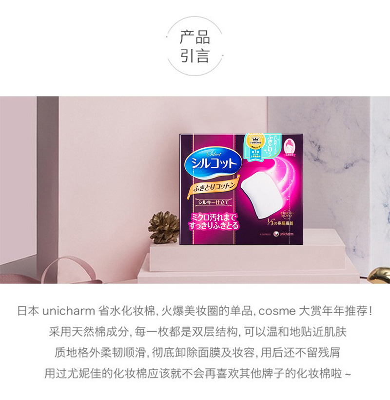 日本尤妮佳超柔软亲肤压边化妆棉82枚