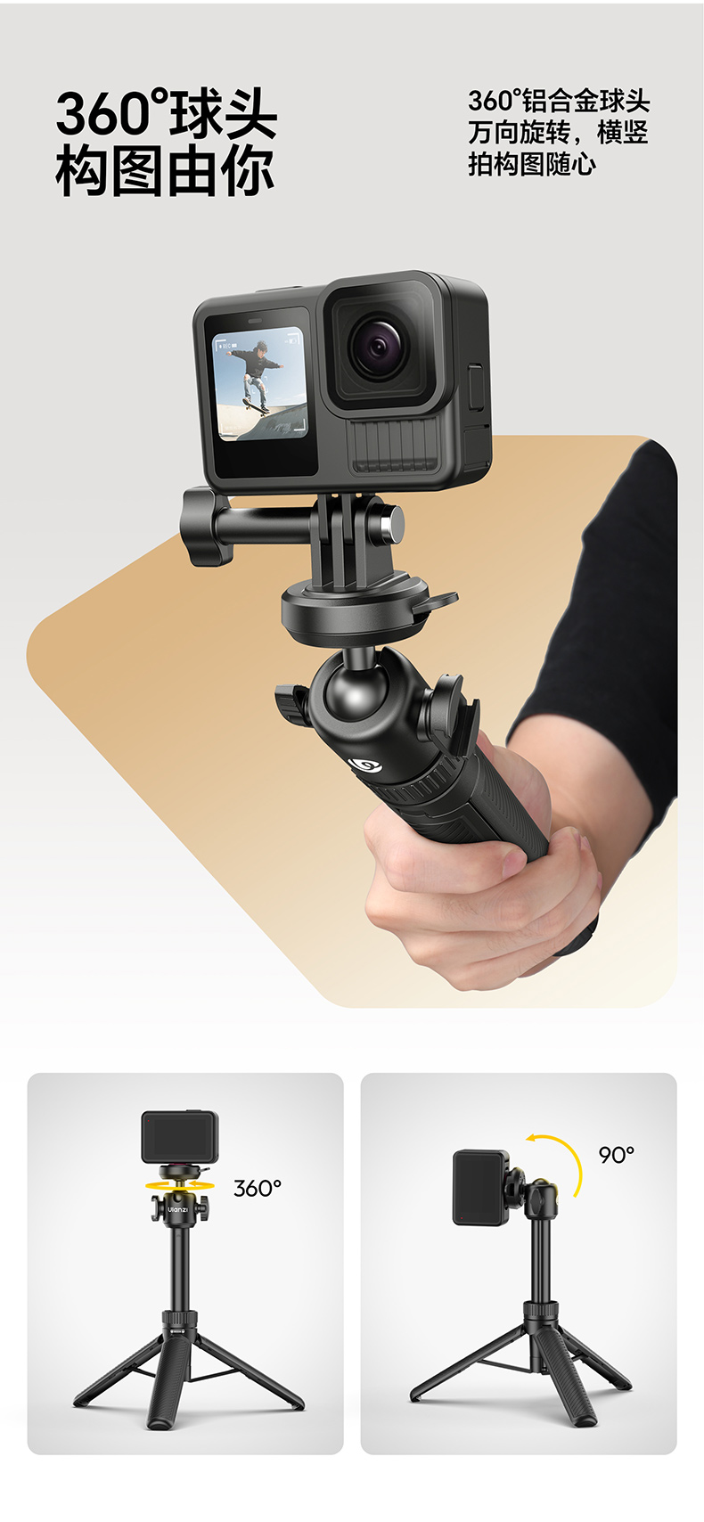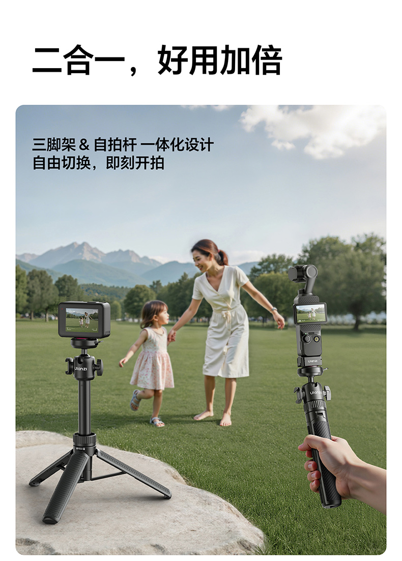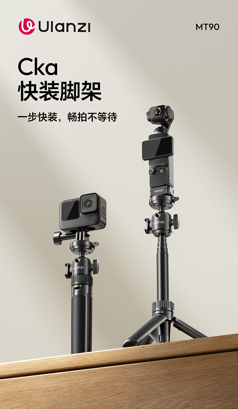 Ulanzi优篮子MT90快装三脚架适用大疆Action5pro/4/3手持延长杆自拍杆Cka生态运动相机手机微单pocket3支架