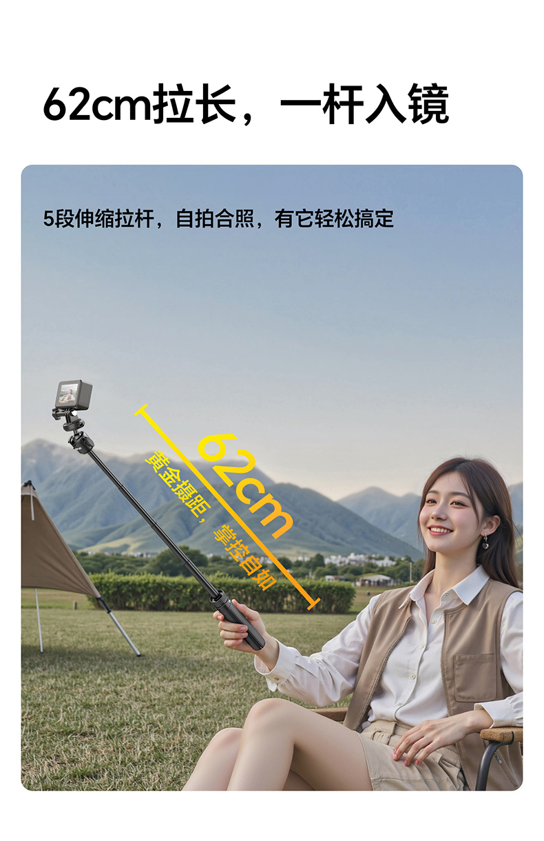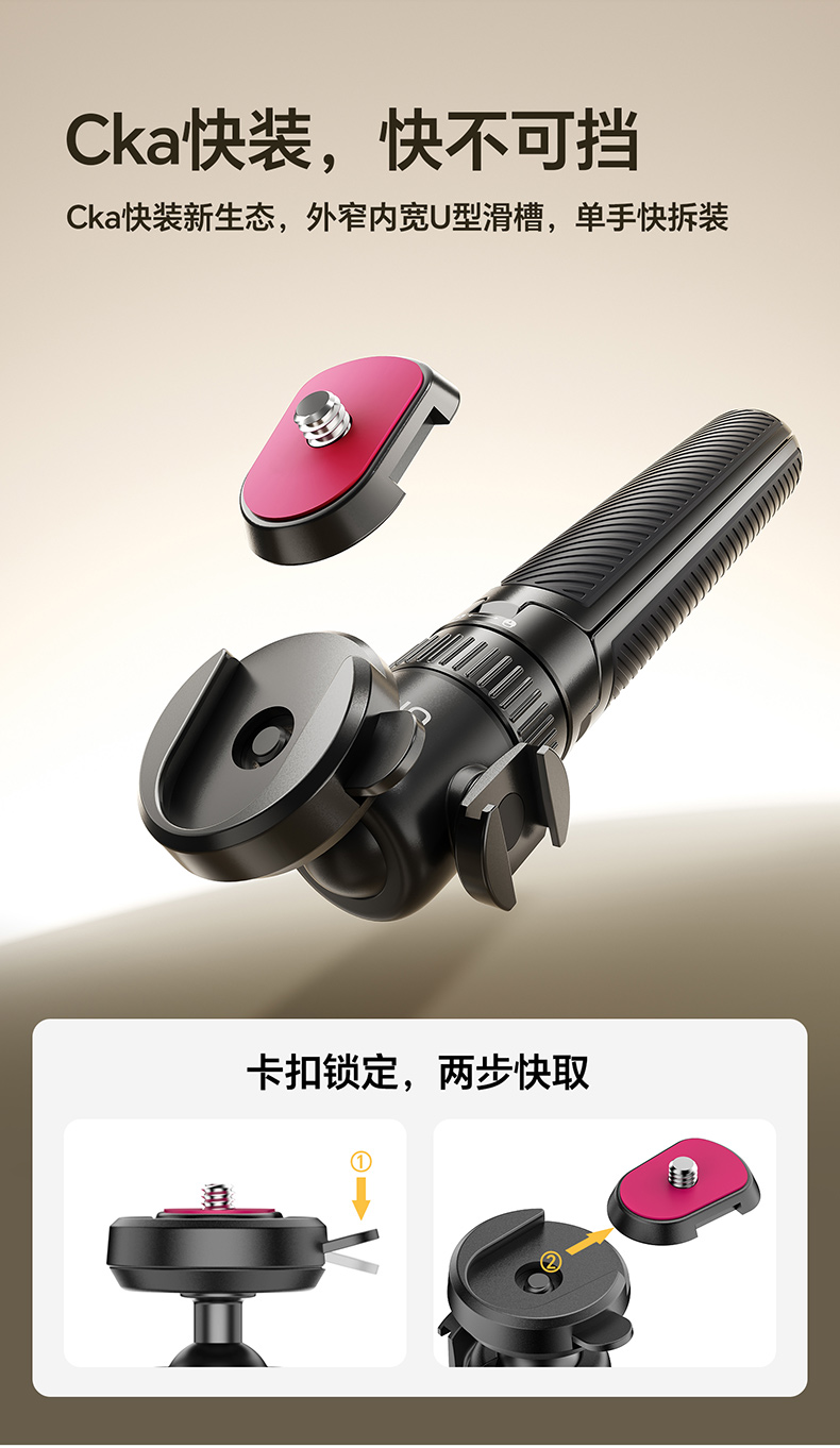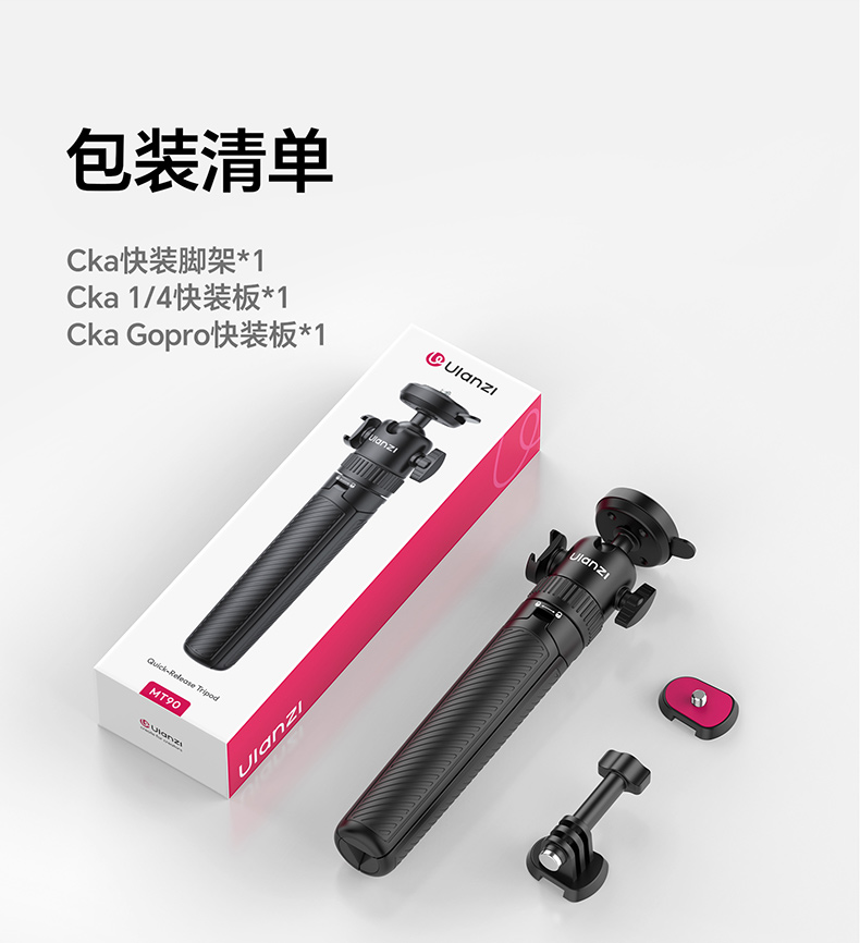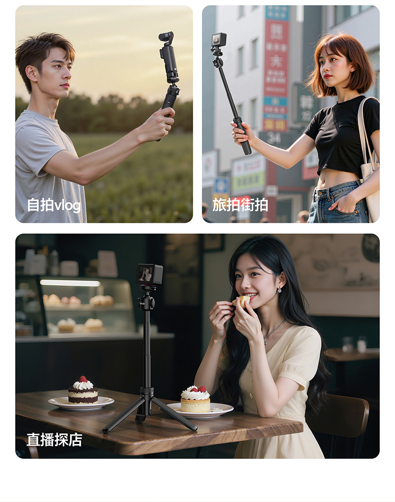 Ulanzi优篮子MT90快装三脚架适用大疆Action5pro/4/3手持延长杆自拍杆Cka生态运动相机手机微单pocket3支架