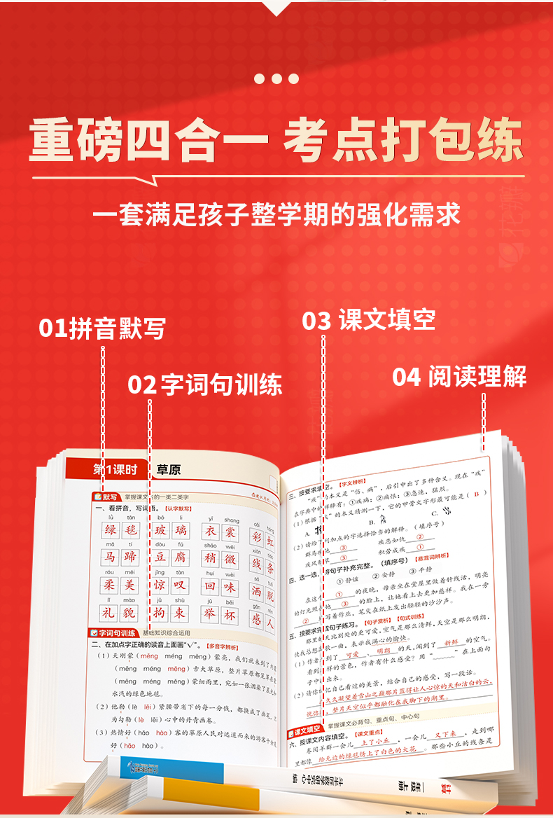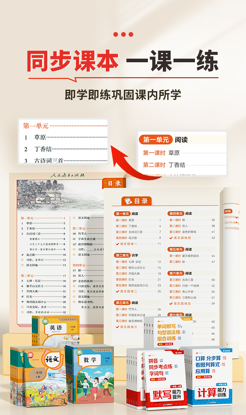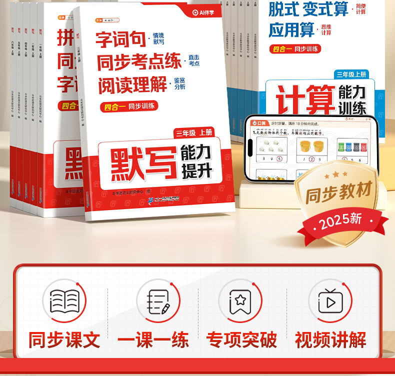 【臻选超值福利】2025新版1-6年级上册语数英计算默写四合一同步训练带视频