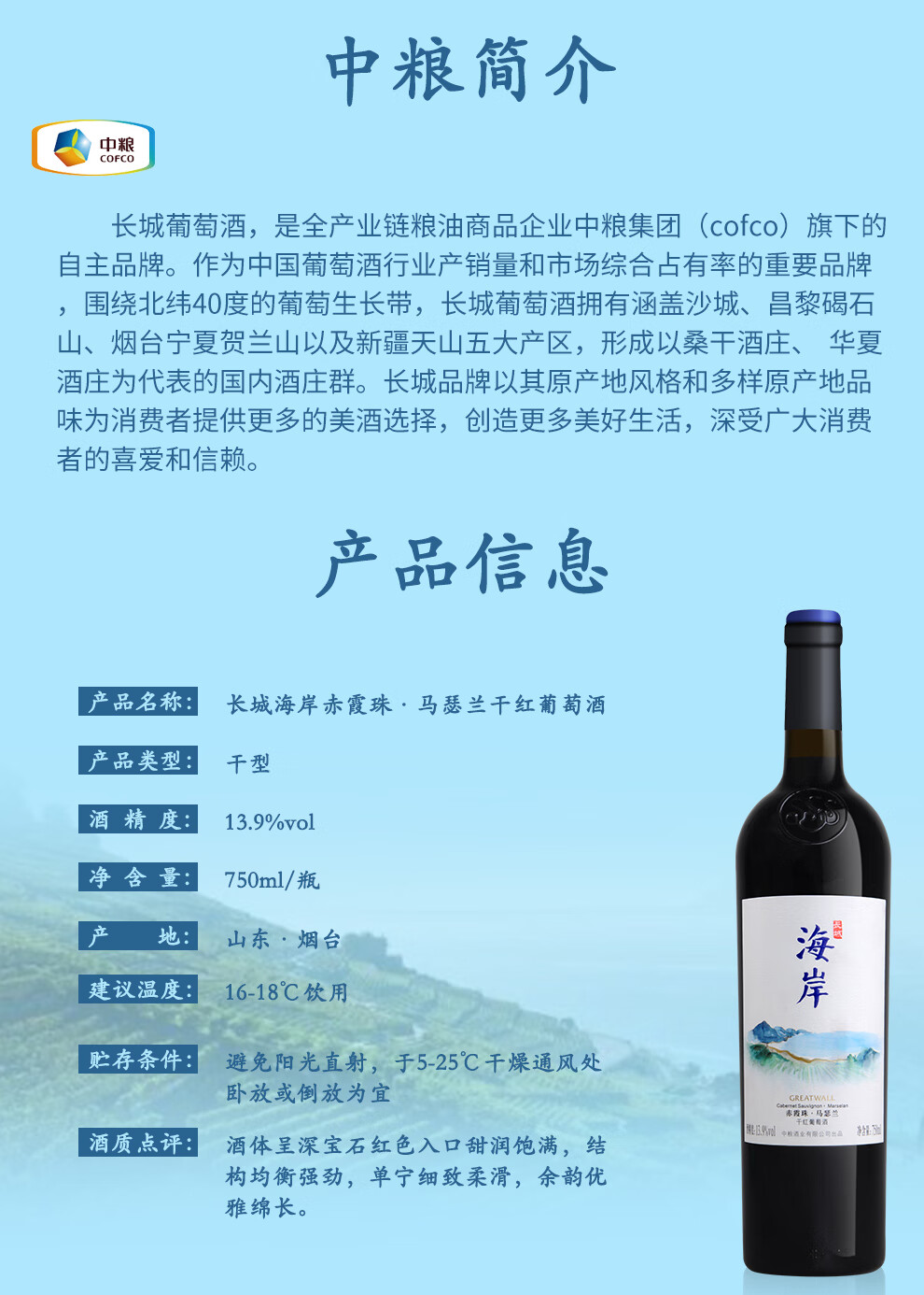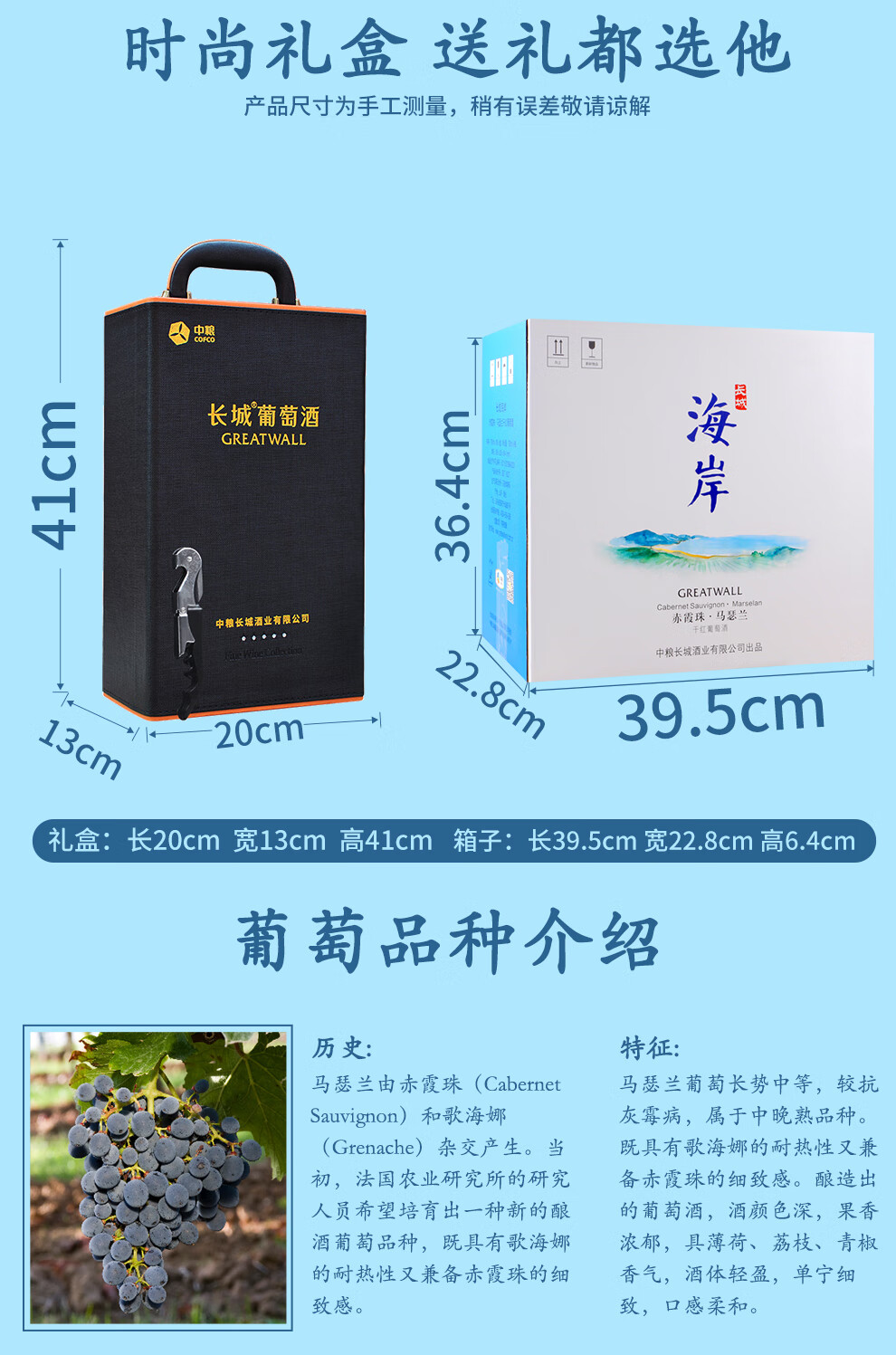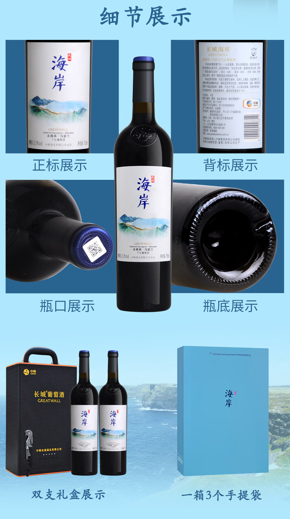 长城海岸赤霞珠马瑟兰干红葡萄酒礼盒装