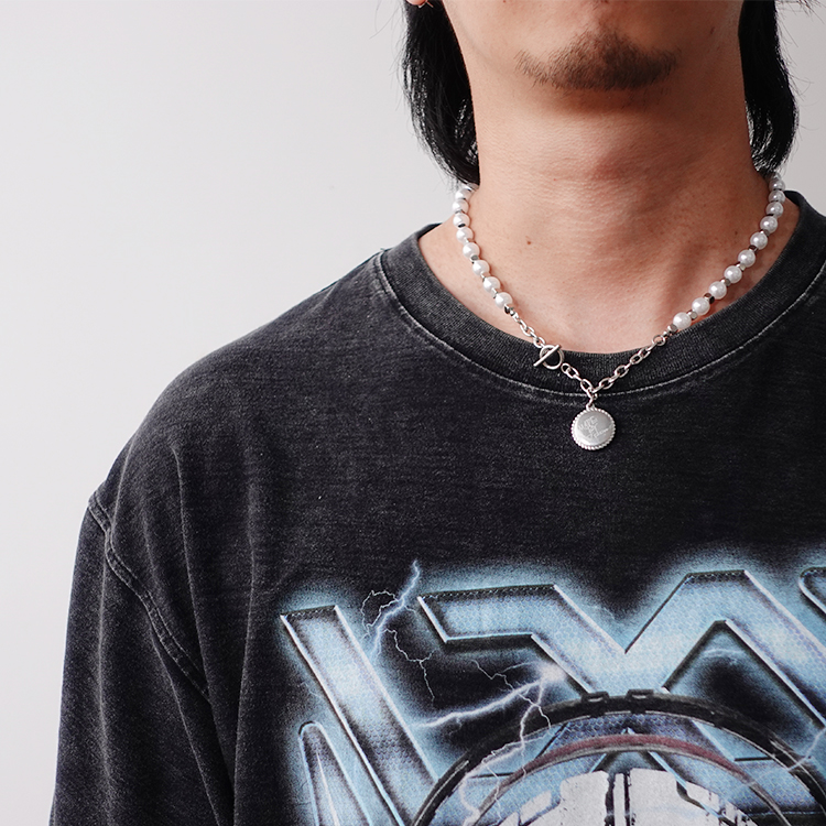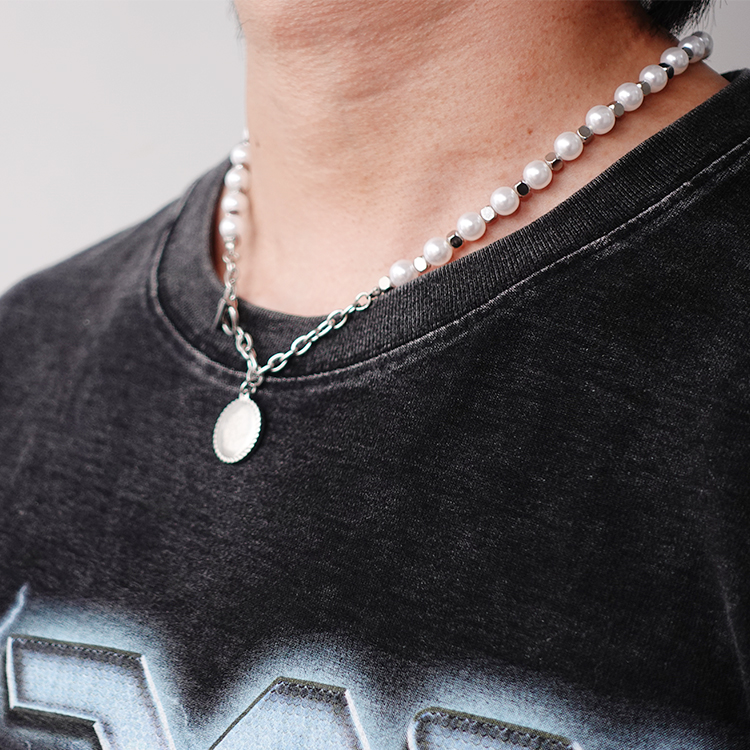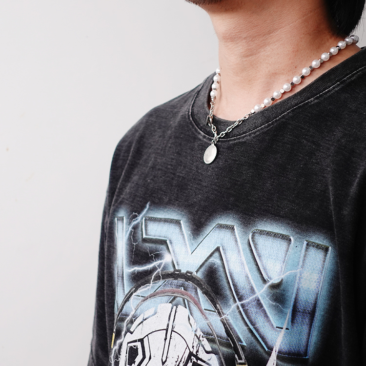 made by dizon 向日葵珍珠项链 潮流叠带搭配衬衣项链 全手术钢