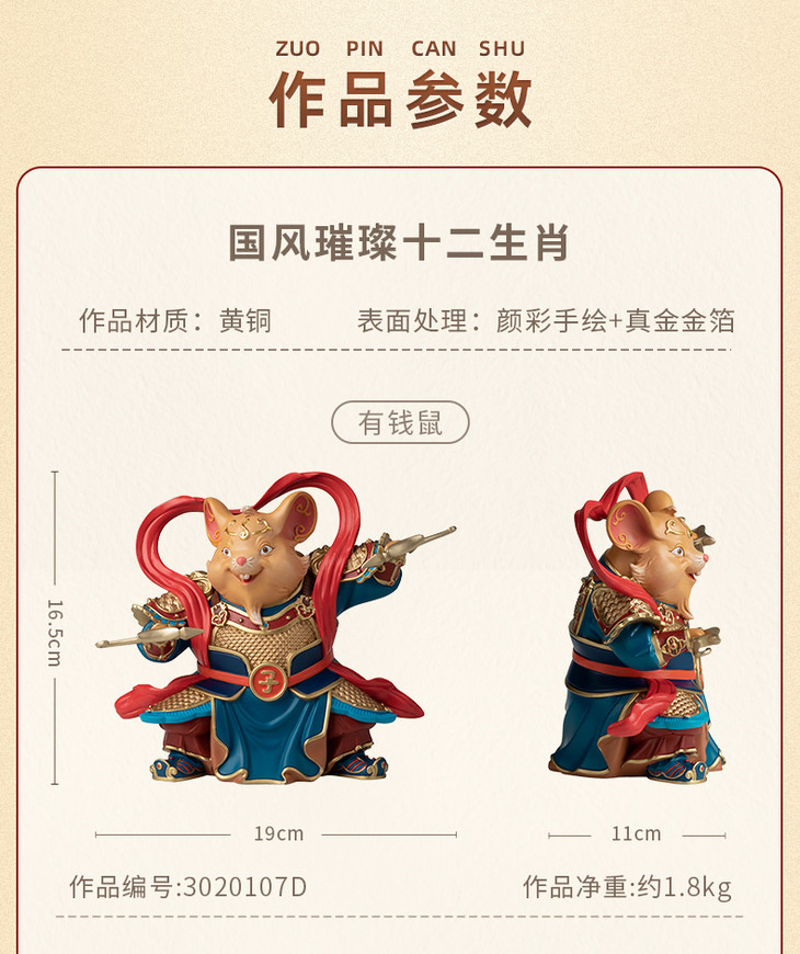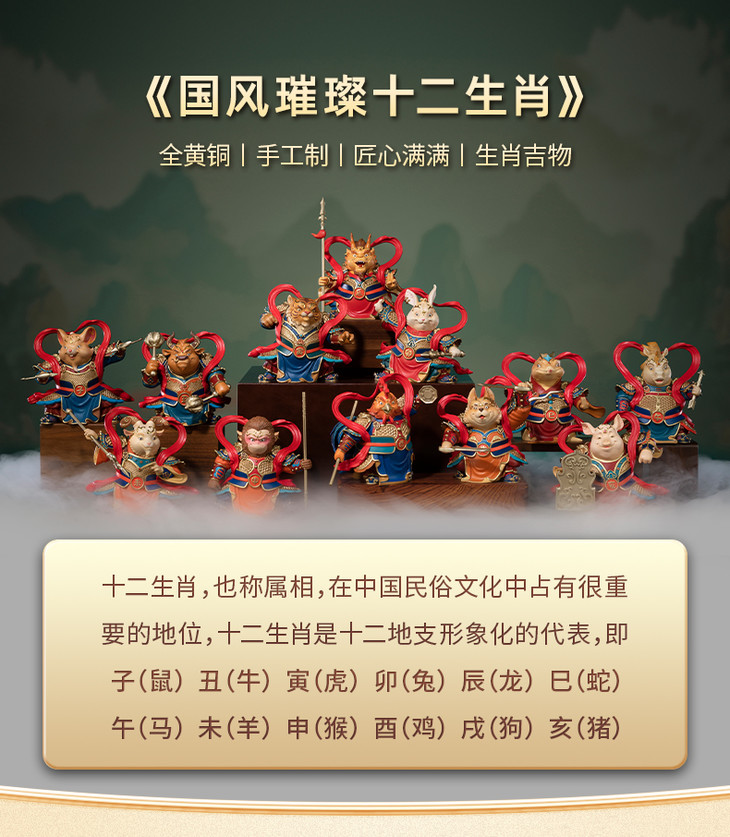 铜师傅 铜摆件《国风璀璨十二生肖》客厅桌面玄关摆件家居装饰品