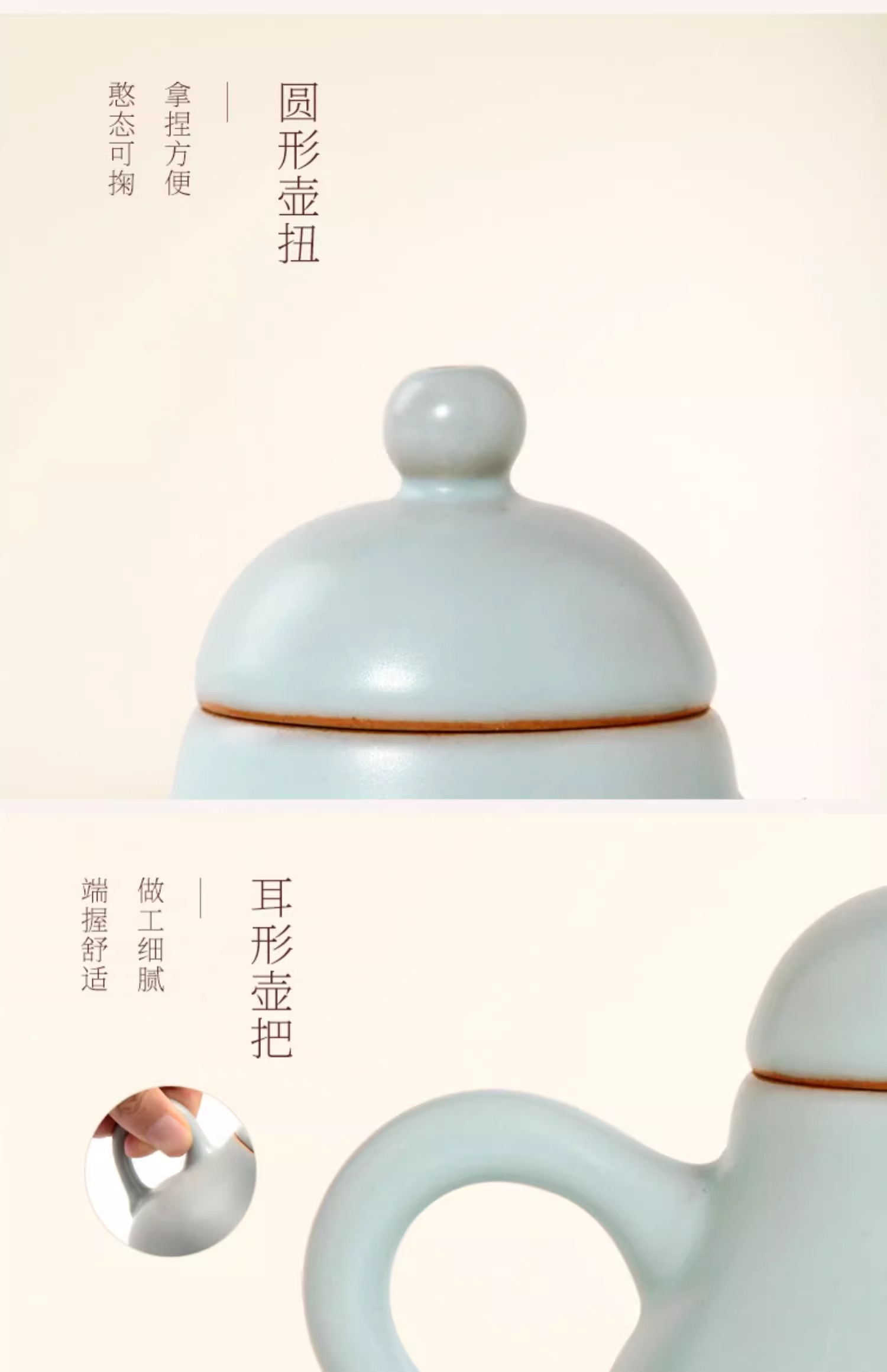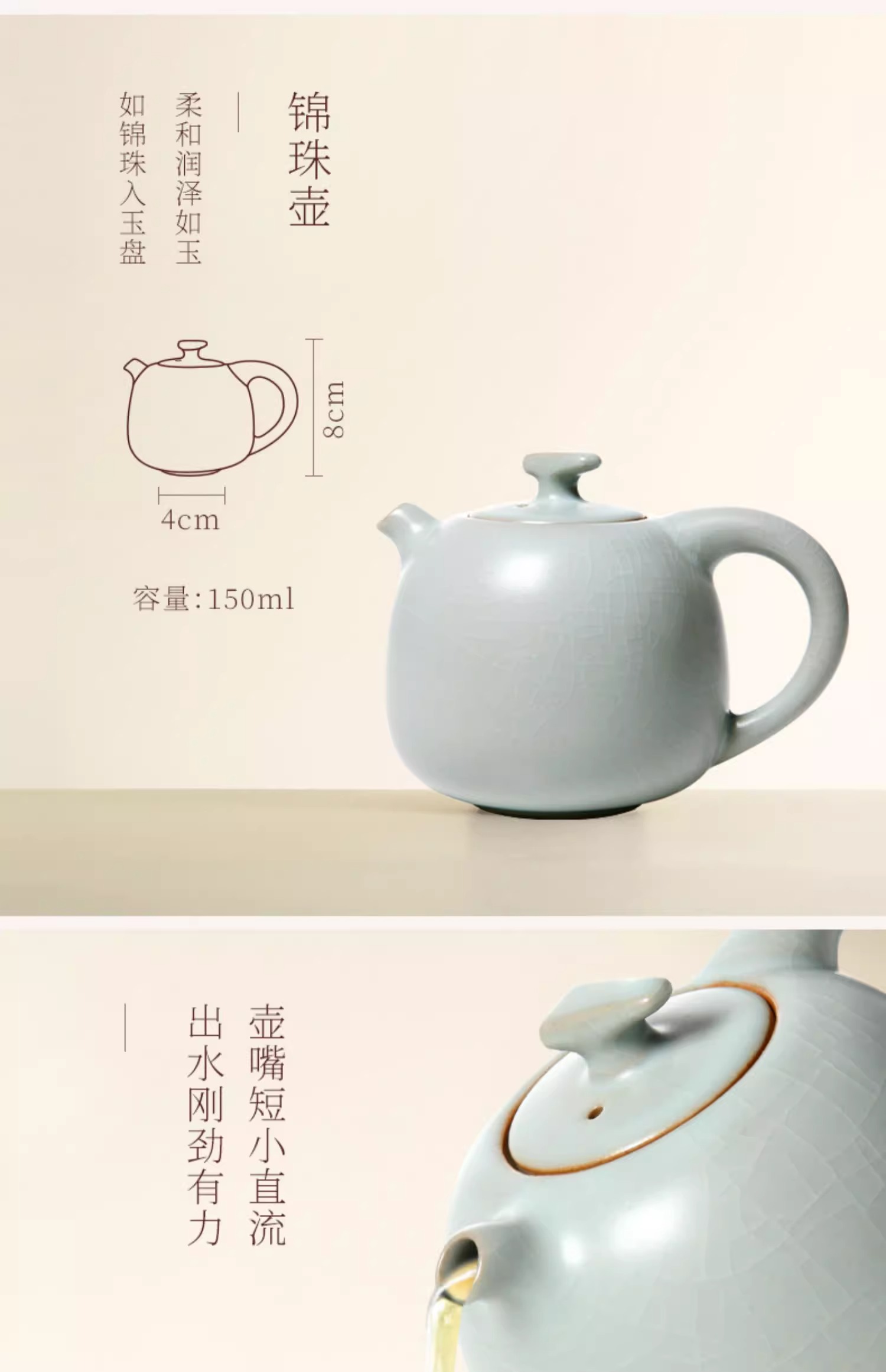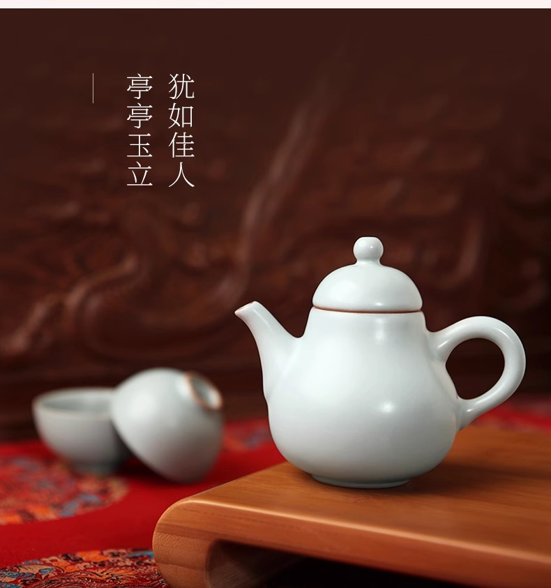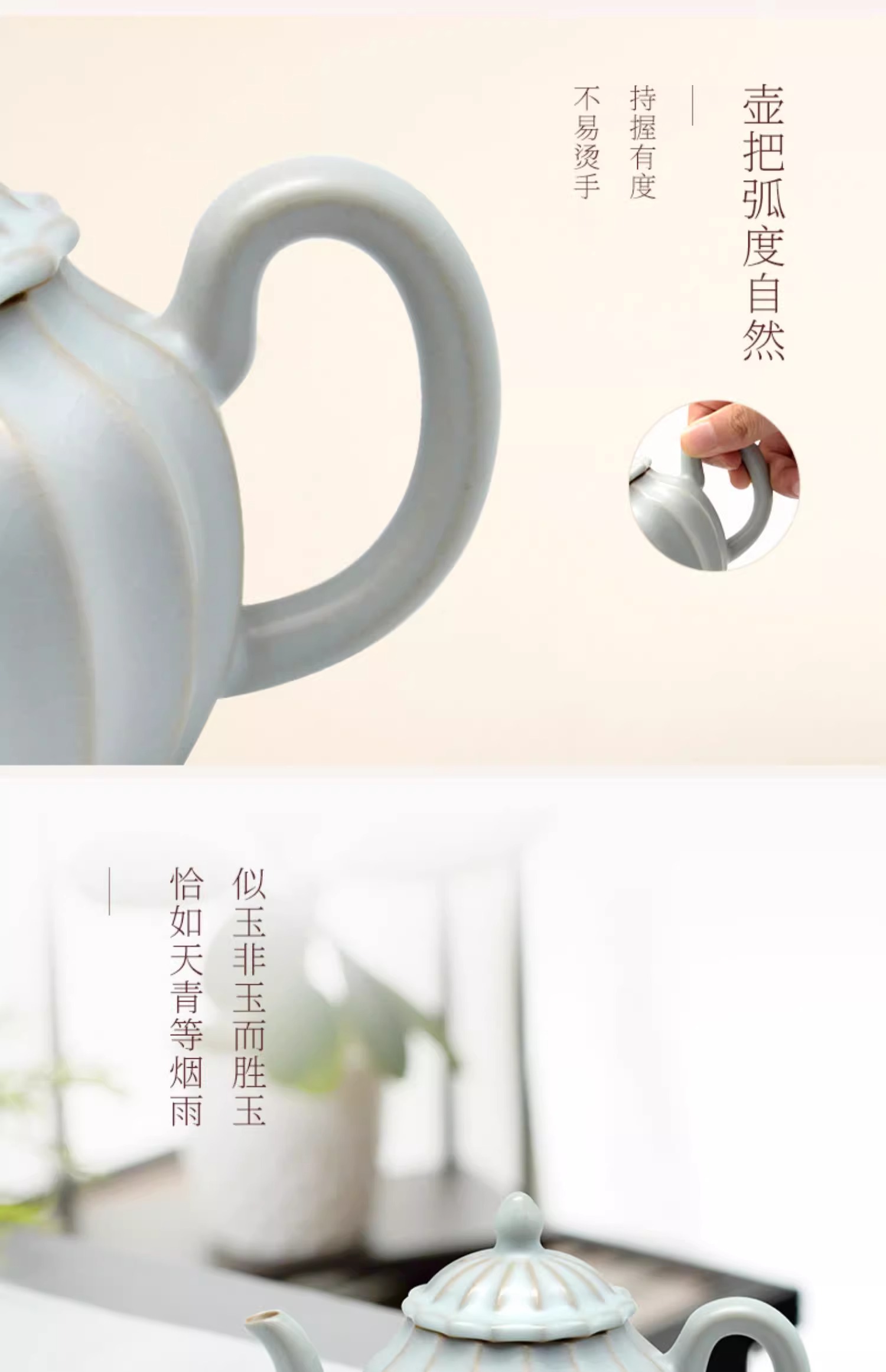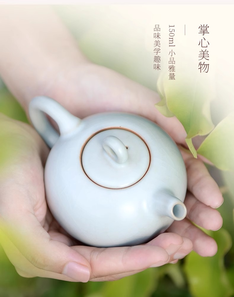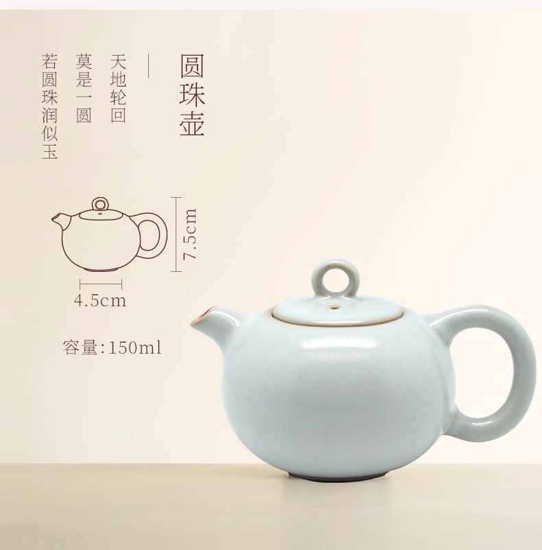 陆宝陶瓷汝窑单壶家用茶壶宋汝窑瓷器天青色汝窑功夫茶具陆宝汝窑圆珠壶天青色