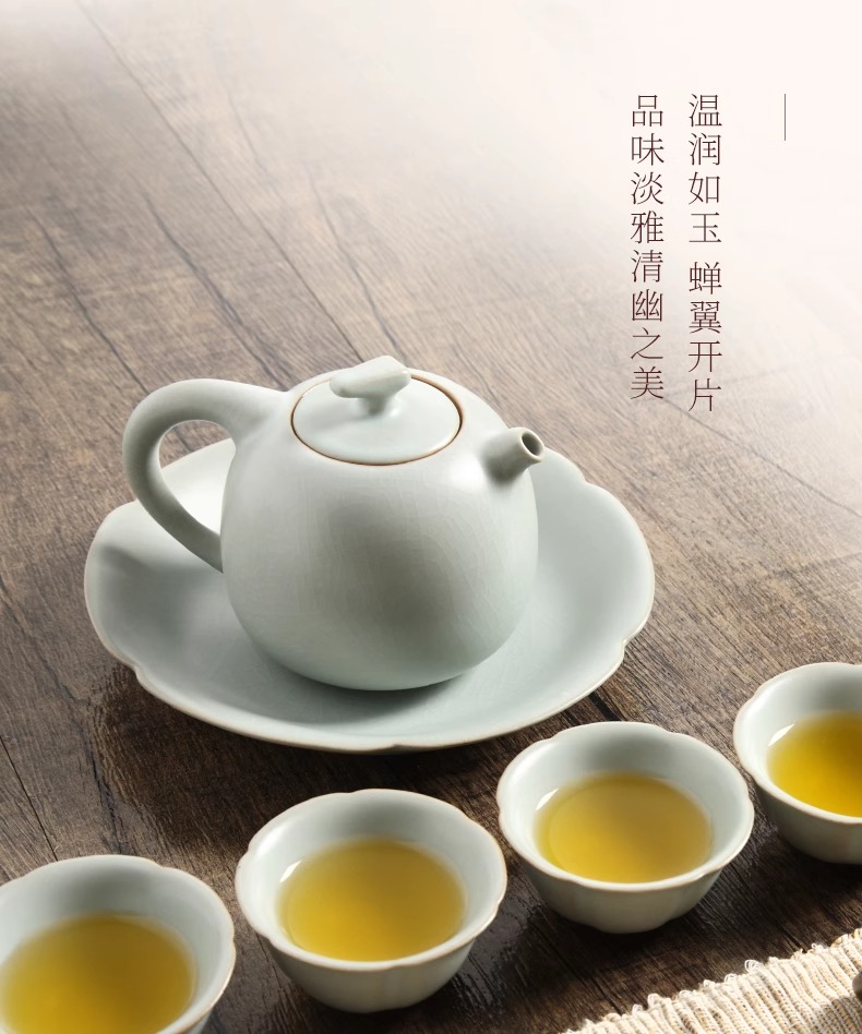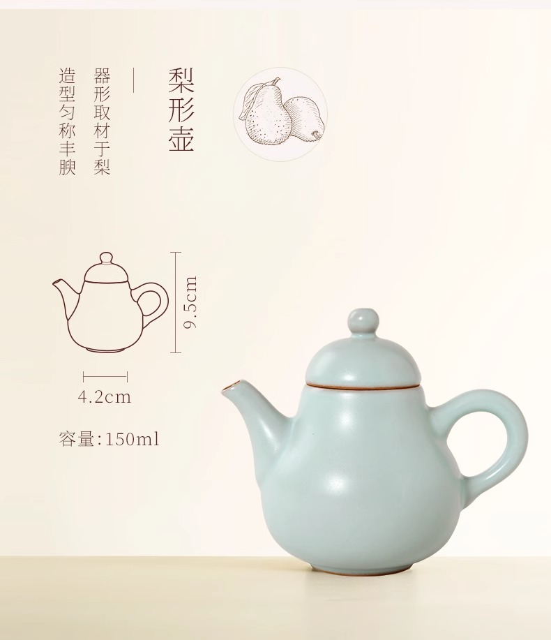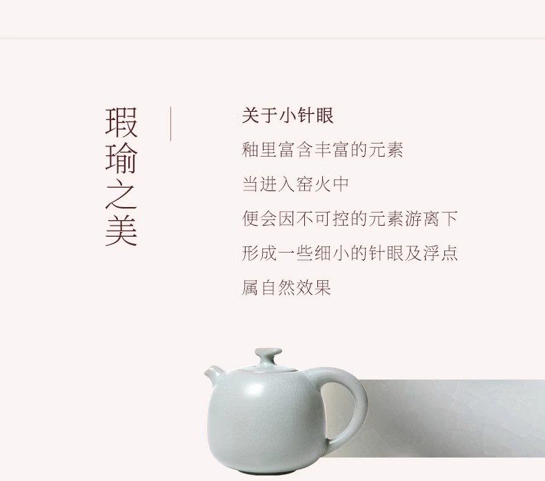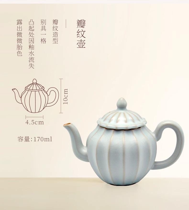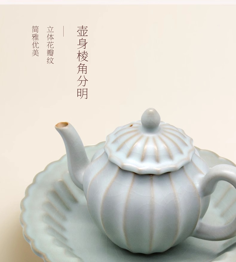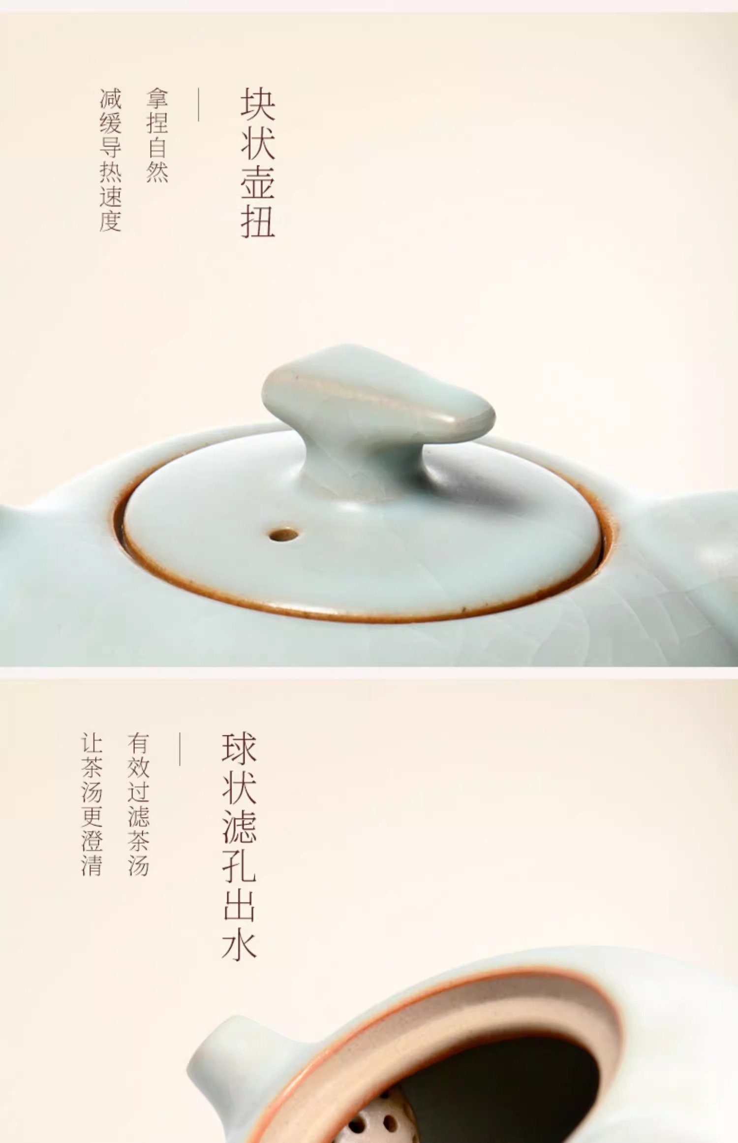 陆宝陶瓷汝窑单壶家用茶壶宋汝窑瓷器天青色汝窑功夫茶具陆宝汝窑圆珠壶天青色