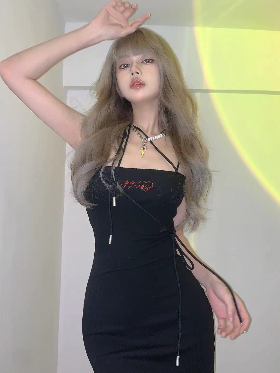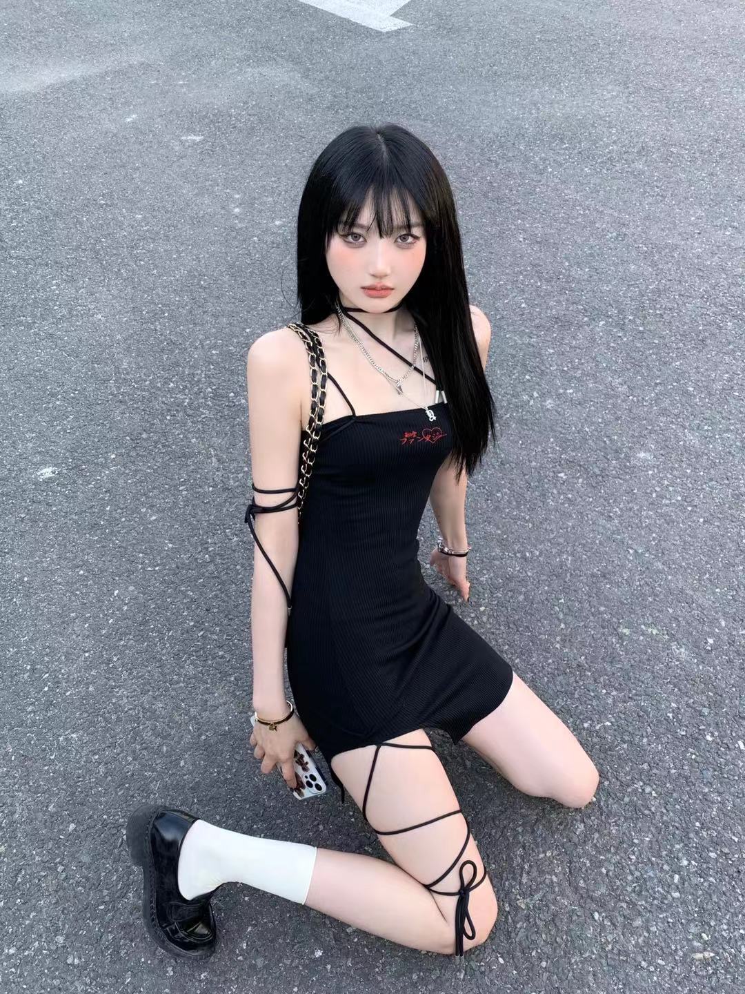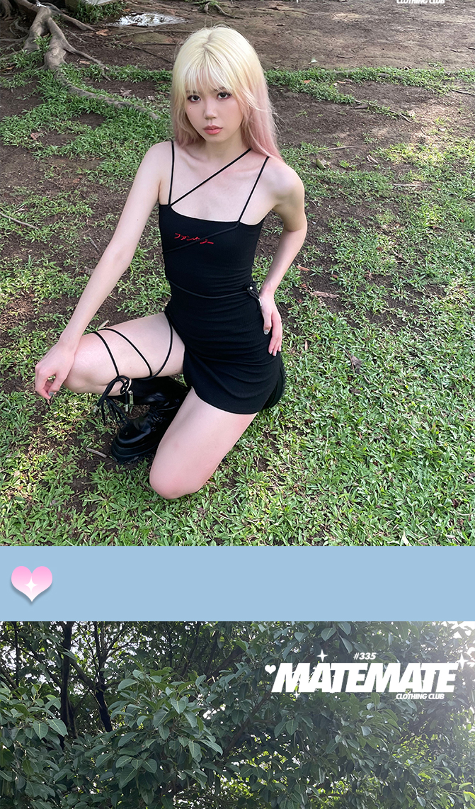 井川里予同款MATEMATE原创美之爱日文刺绣忍者多变绑带纯欲连衣裙