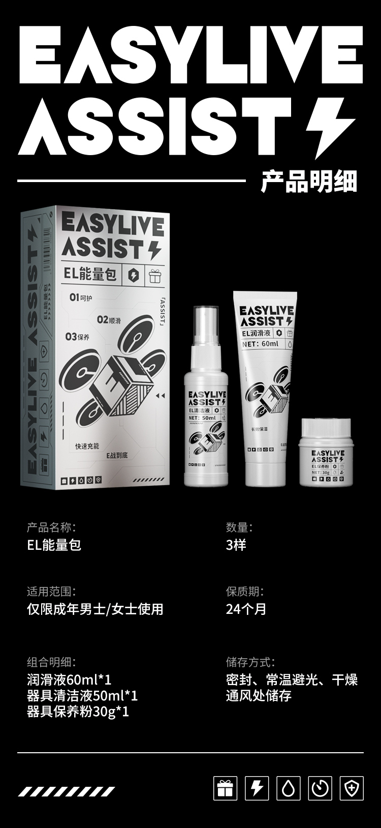 【新品上市-EL能量包】Easylive能量包润滑油+消毒液+保护粉·私密发货